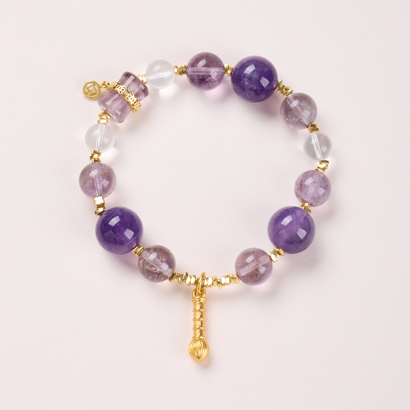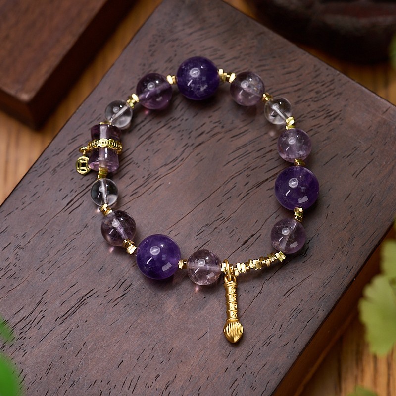 材质:12MM紫水晶 紫玉 铜镀金文昌笔