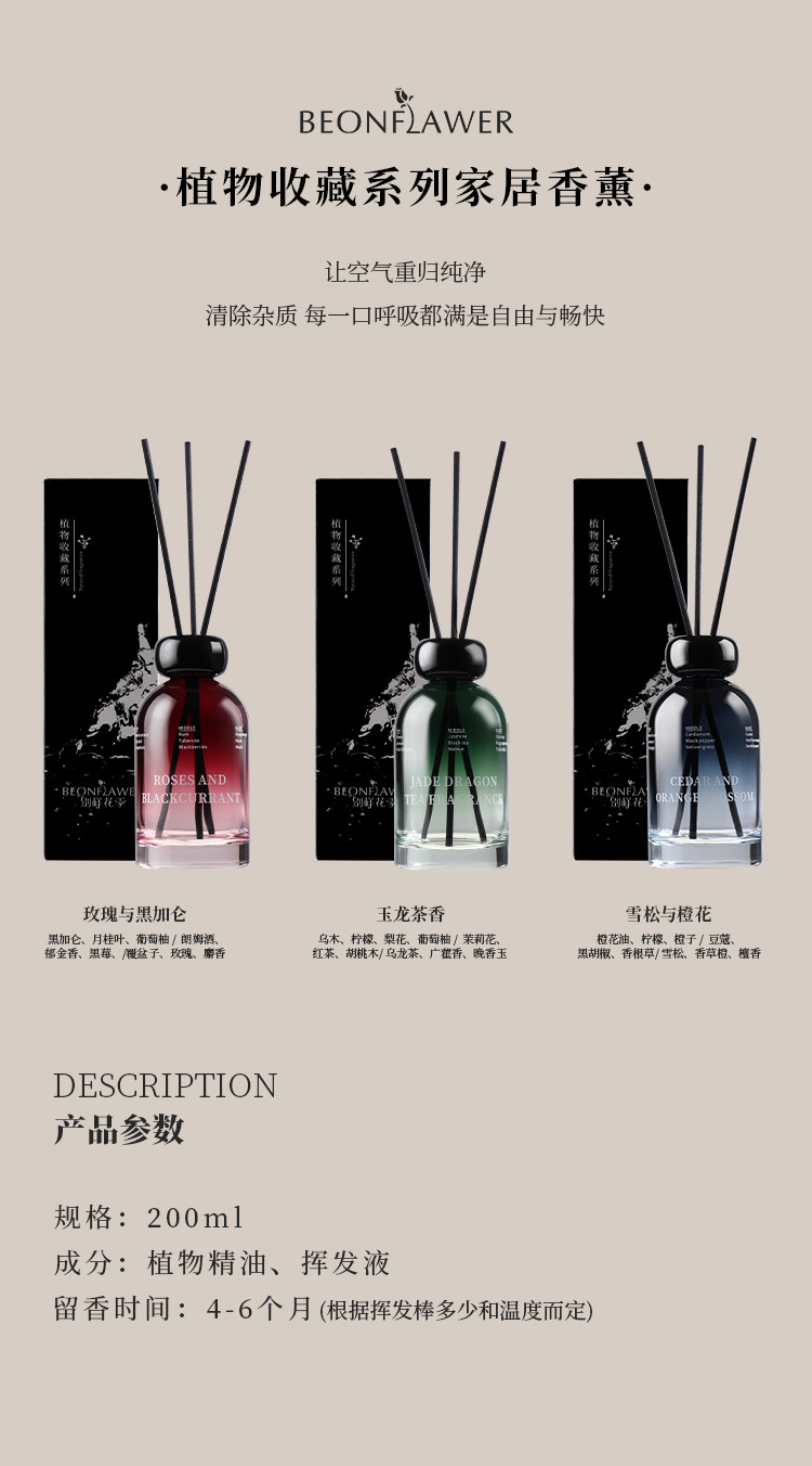 200ml无火香薰精油 持久留香室内香氛卫生间除臭除异味藤条摆件