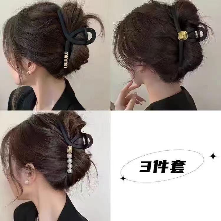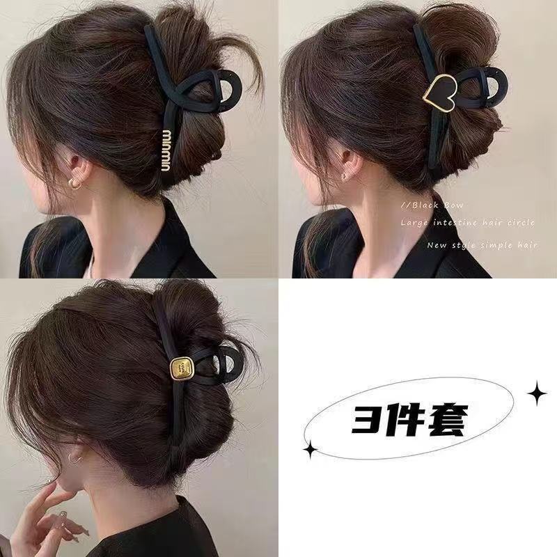 高级感13cm黑色亮面盘发抓夹大号简约爱心发夹女后脑盘发鲨鱼夹子