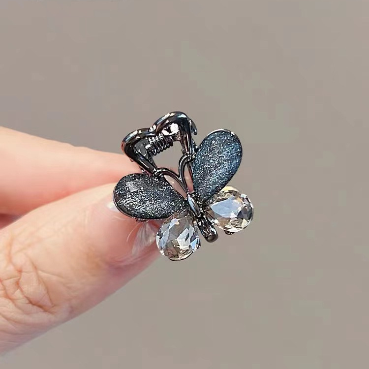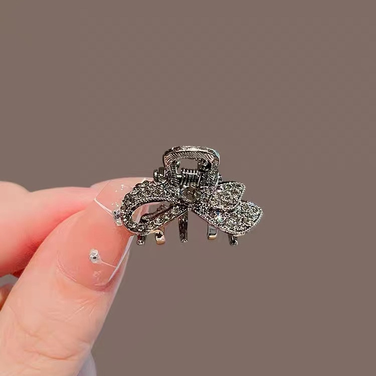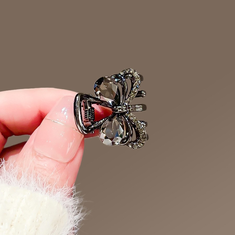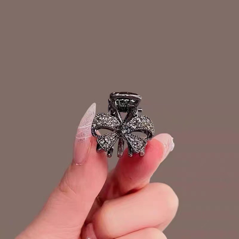 韩国精致黑水晶蝴蝶结小抓夹女合金可爱碎发夹侧边发夹发卡头饰