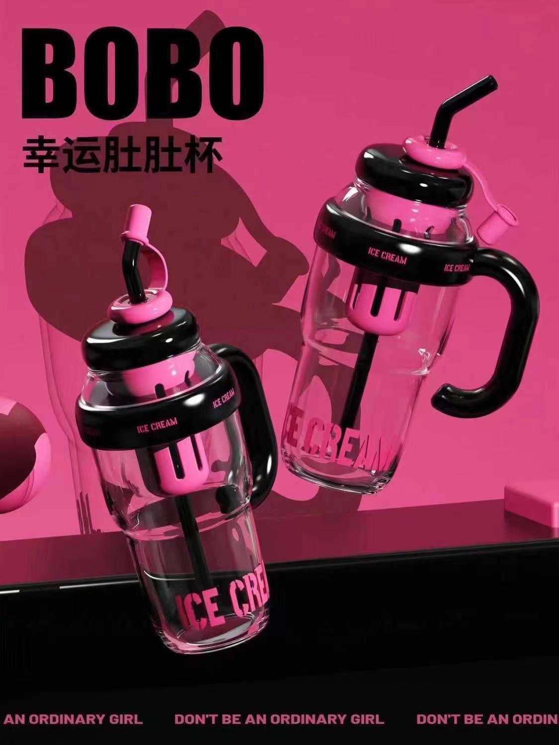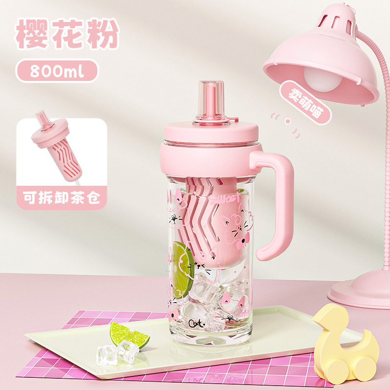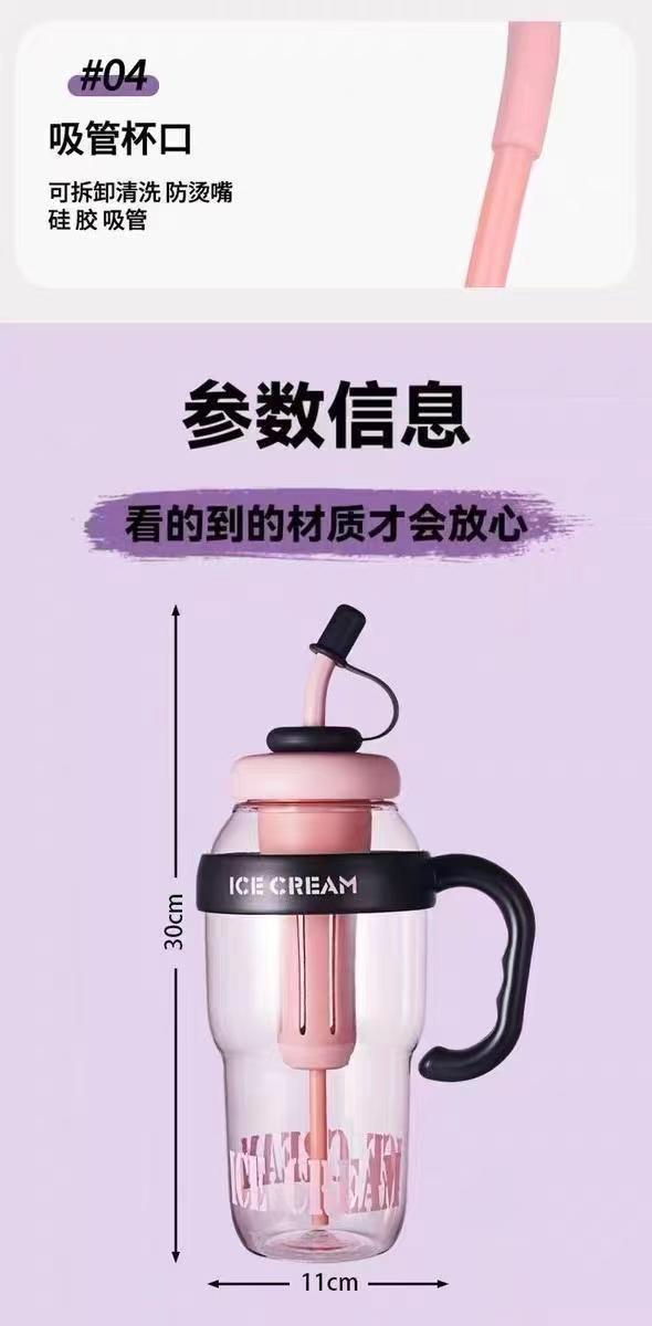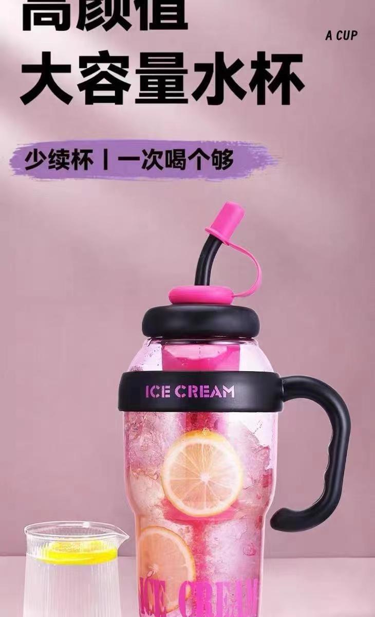 夏季新款大容量水杯女生高颜值冰霸吸管杯子耐高温茶水分离塑料杯