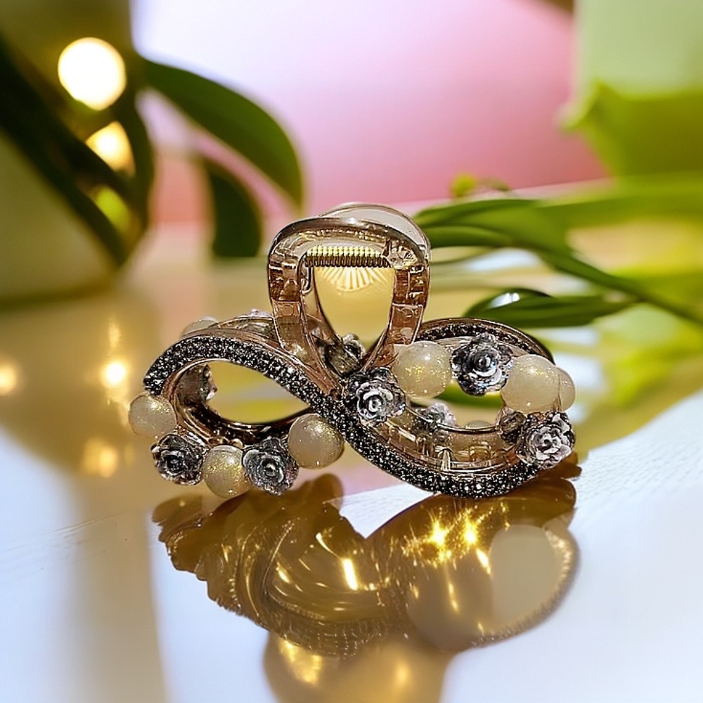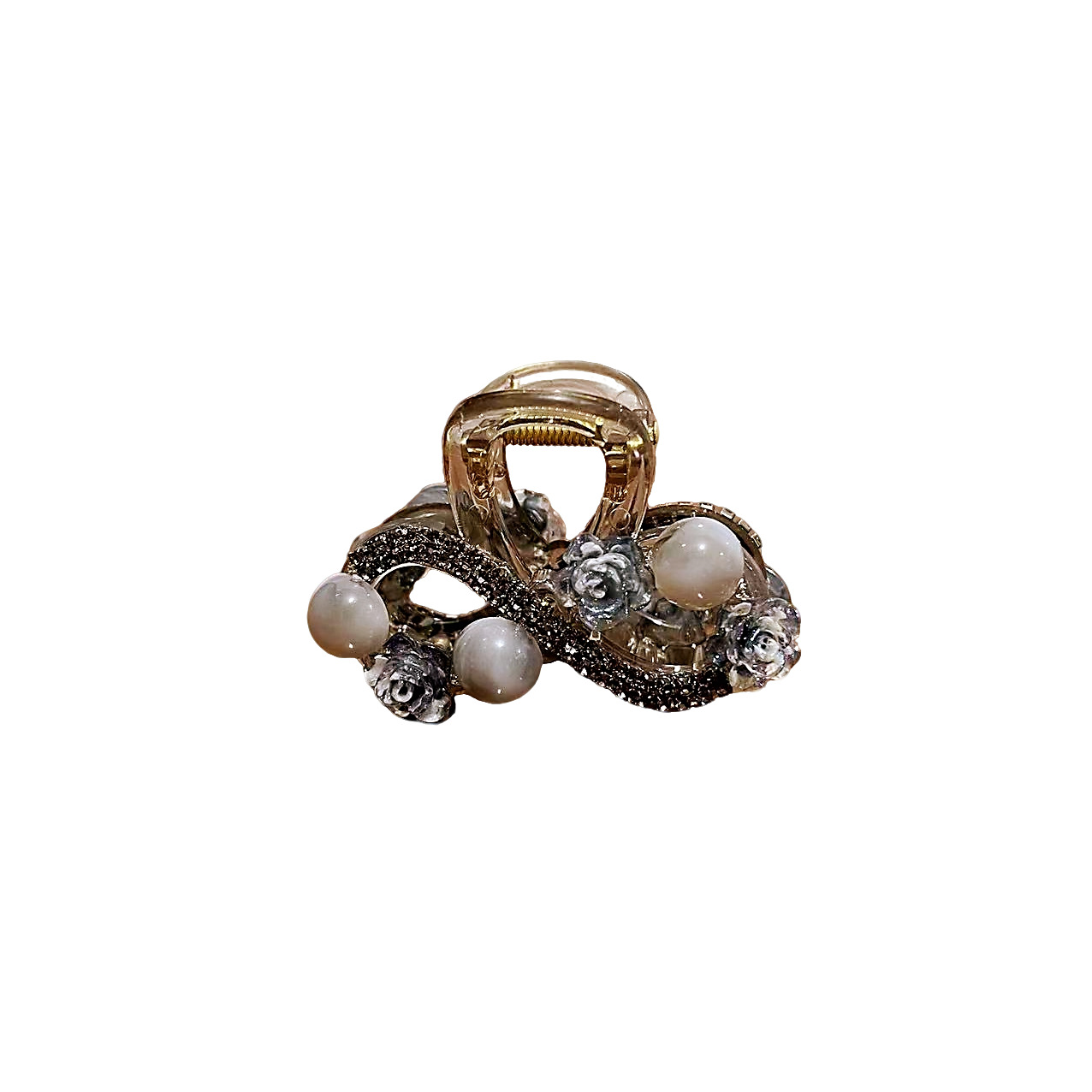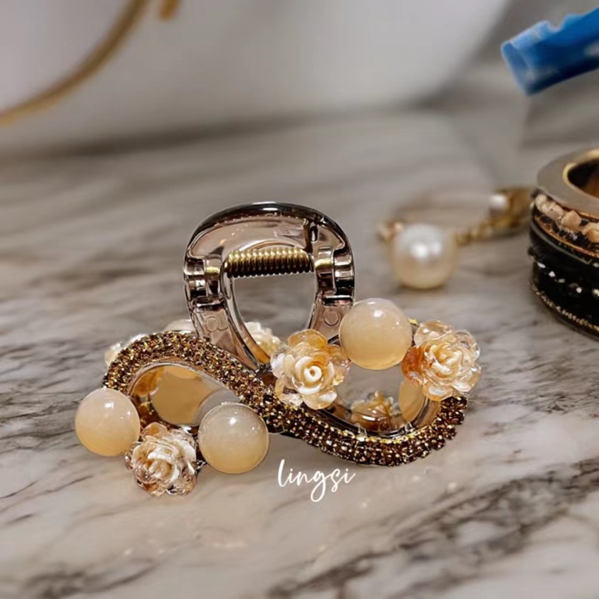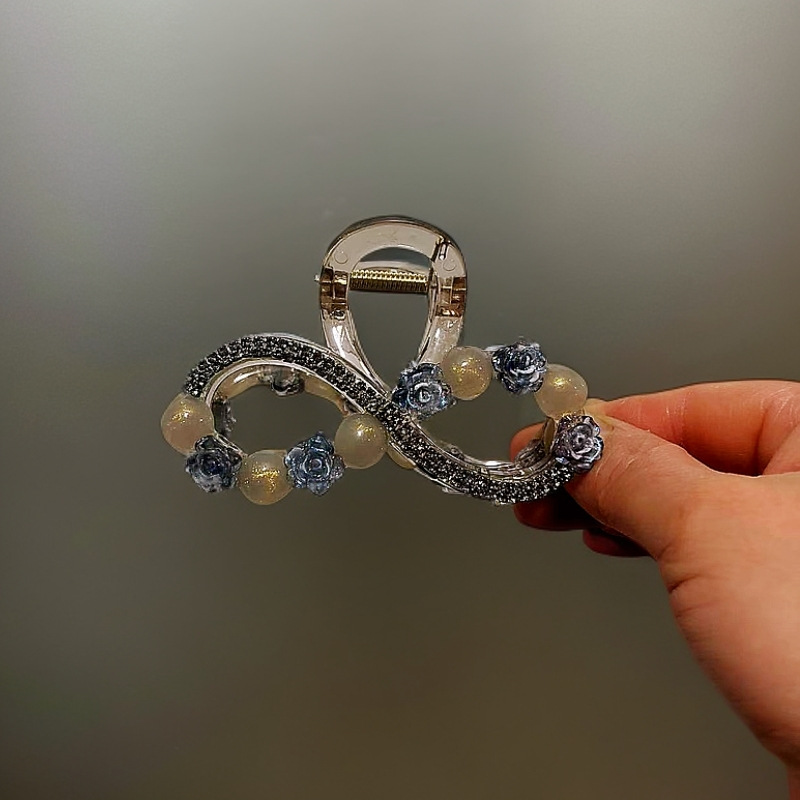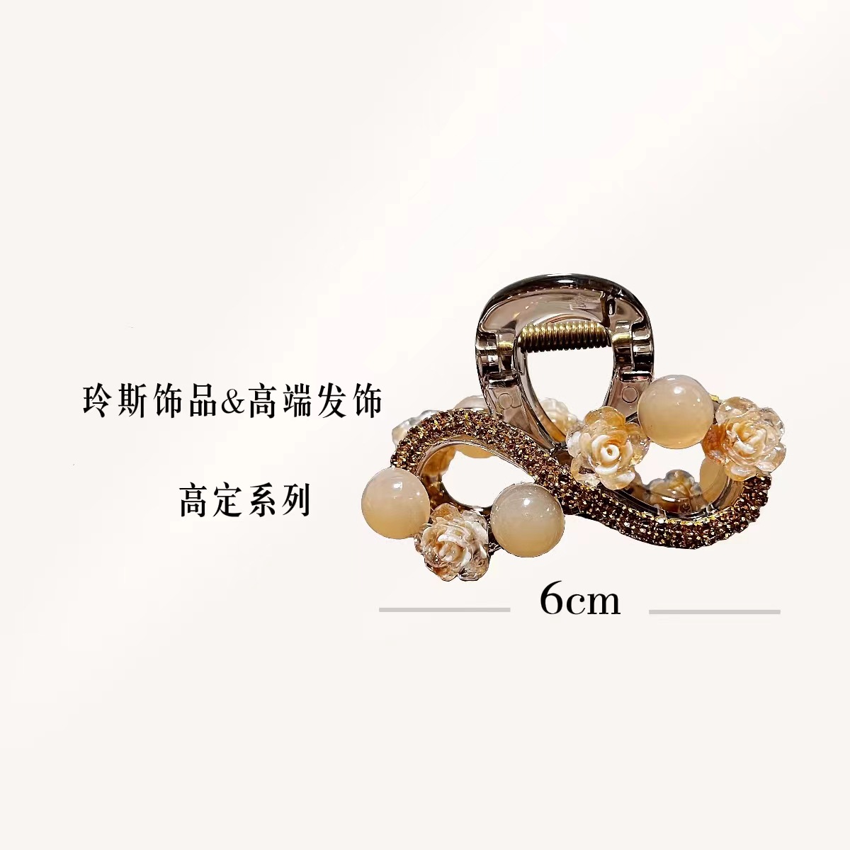 L1017高级感水钻花朵发夹后脑勺盘发抓夹夏季中号半扎鲨鱼夹头饰