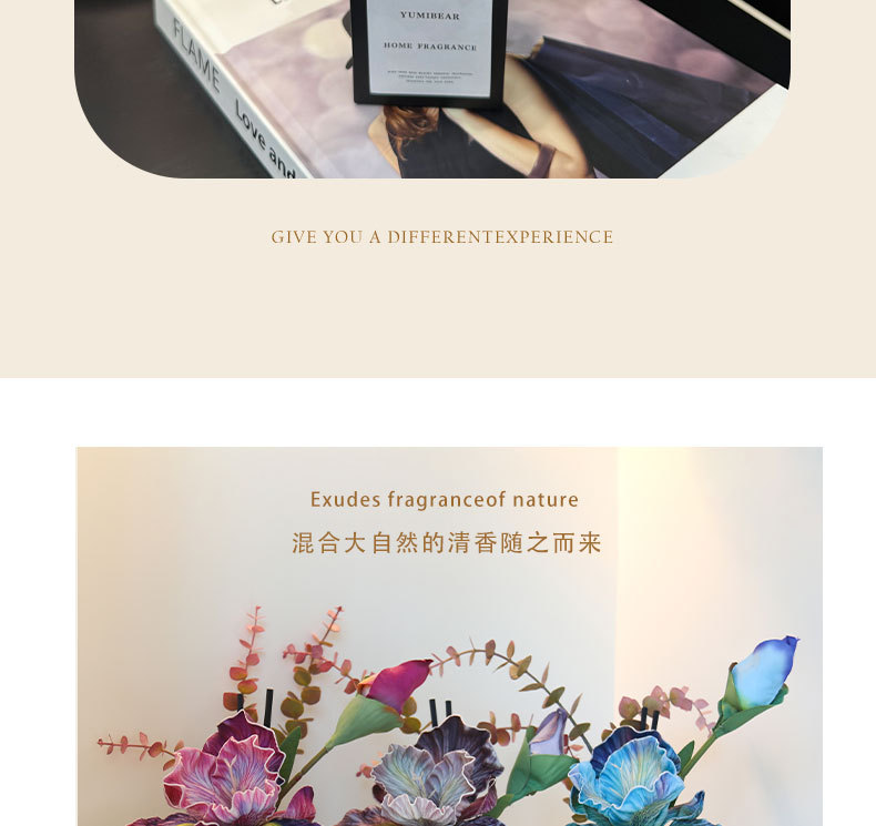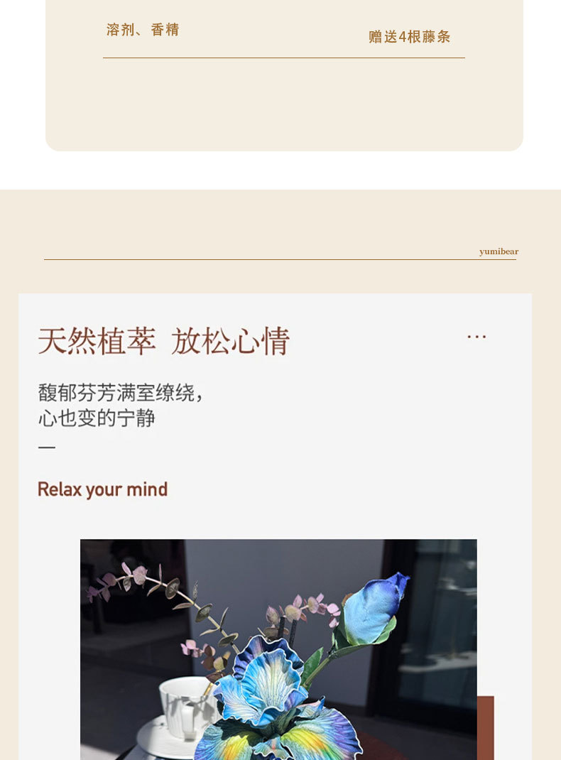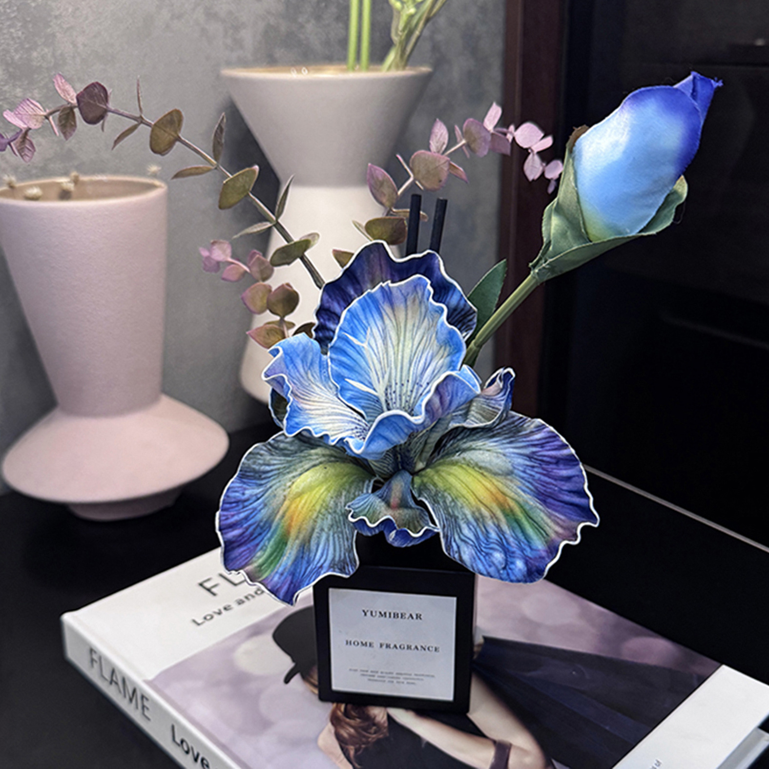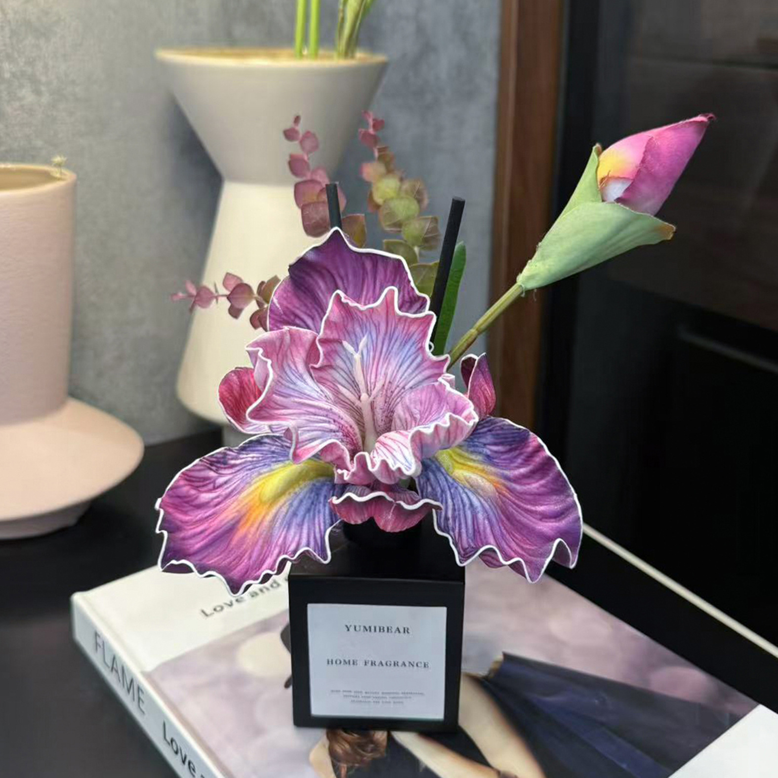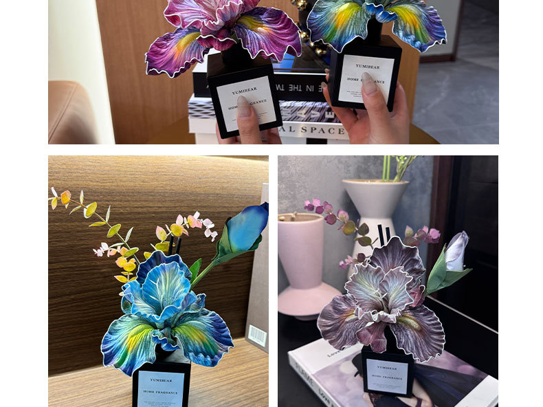 仿真鸢尾花花艺香薰摆件餐桌摆设客厅桌面无火香薰花束精油香薰