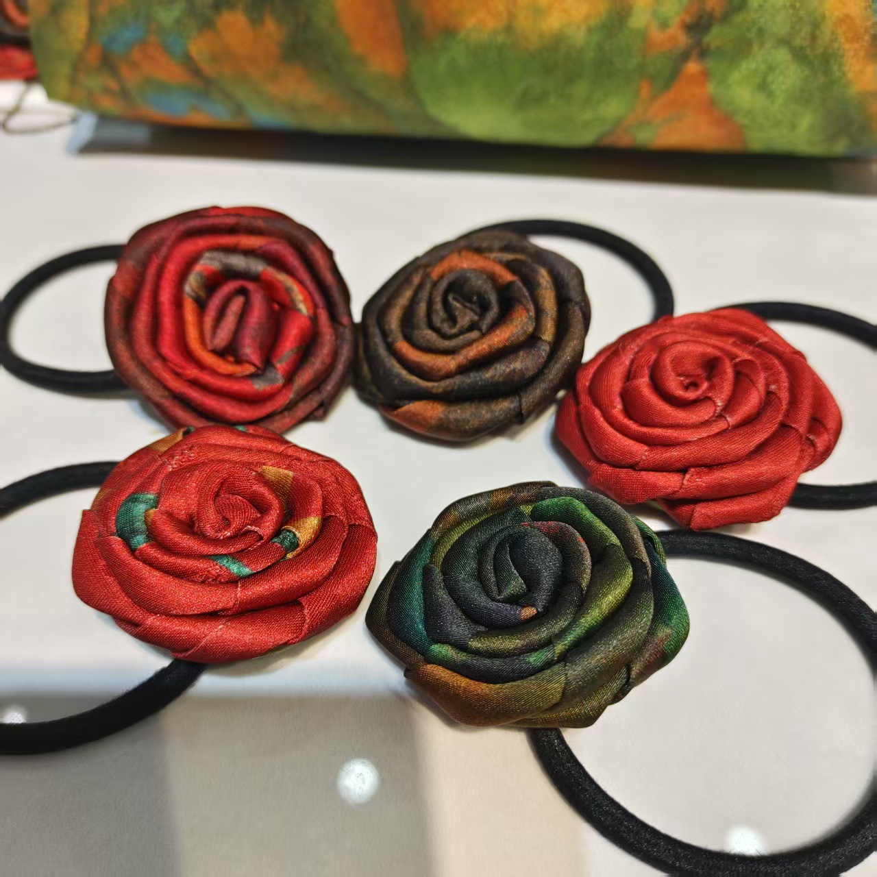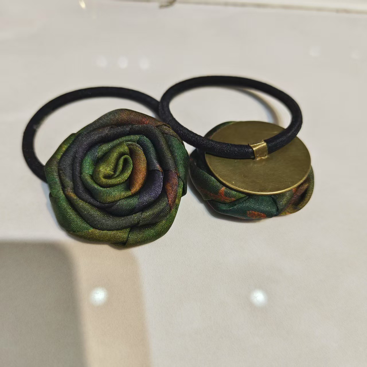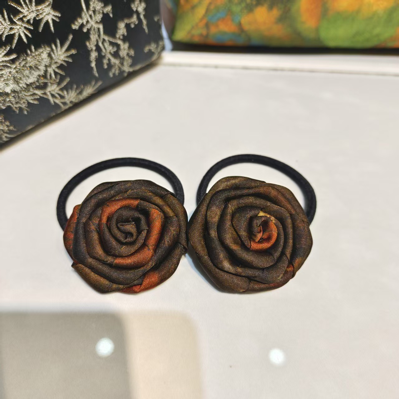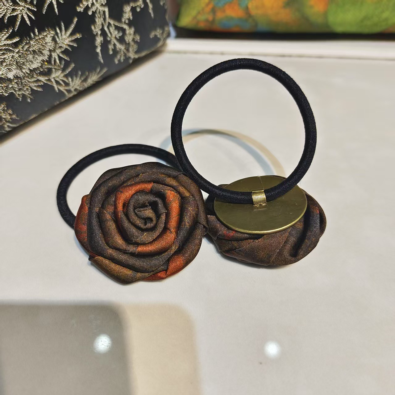 新款香云纱玫瑰花发圈手工高弹力质感发绳头饰时尚轻奢高级感发饰