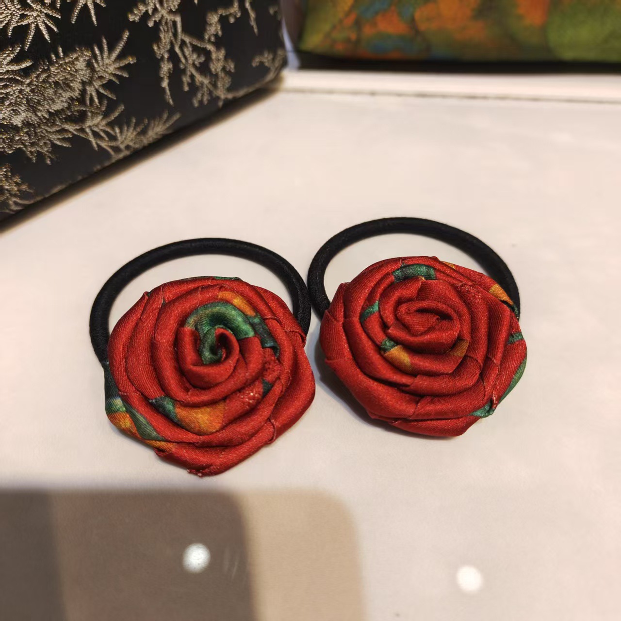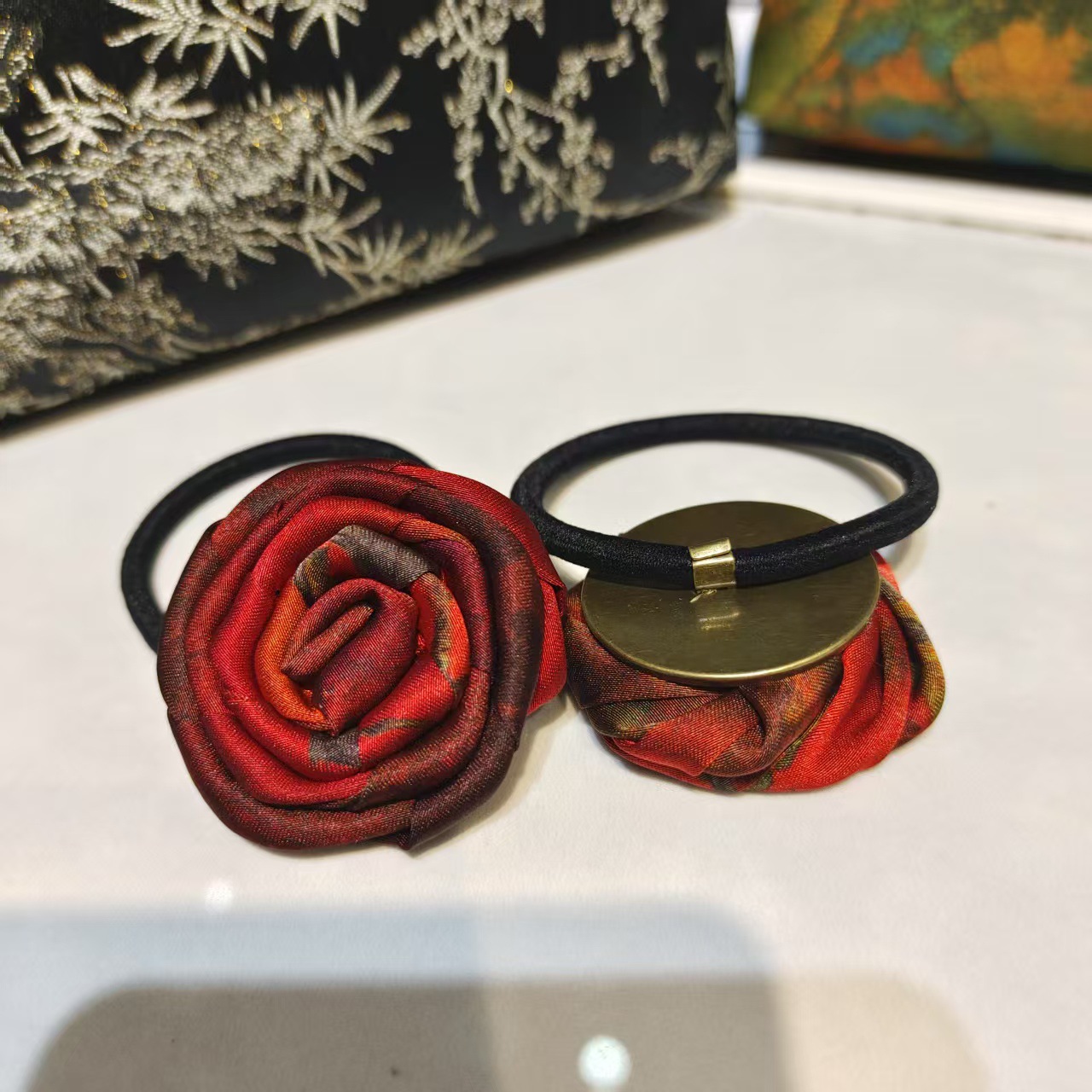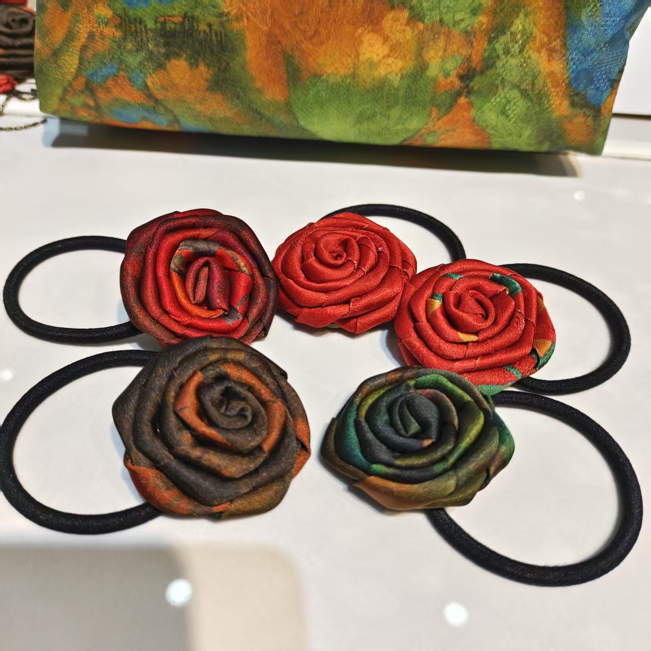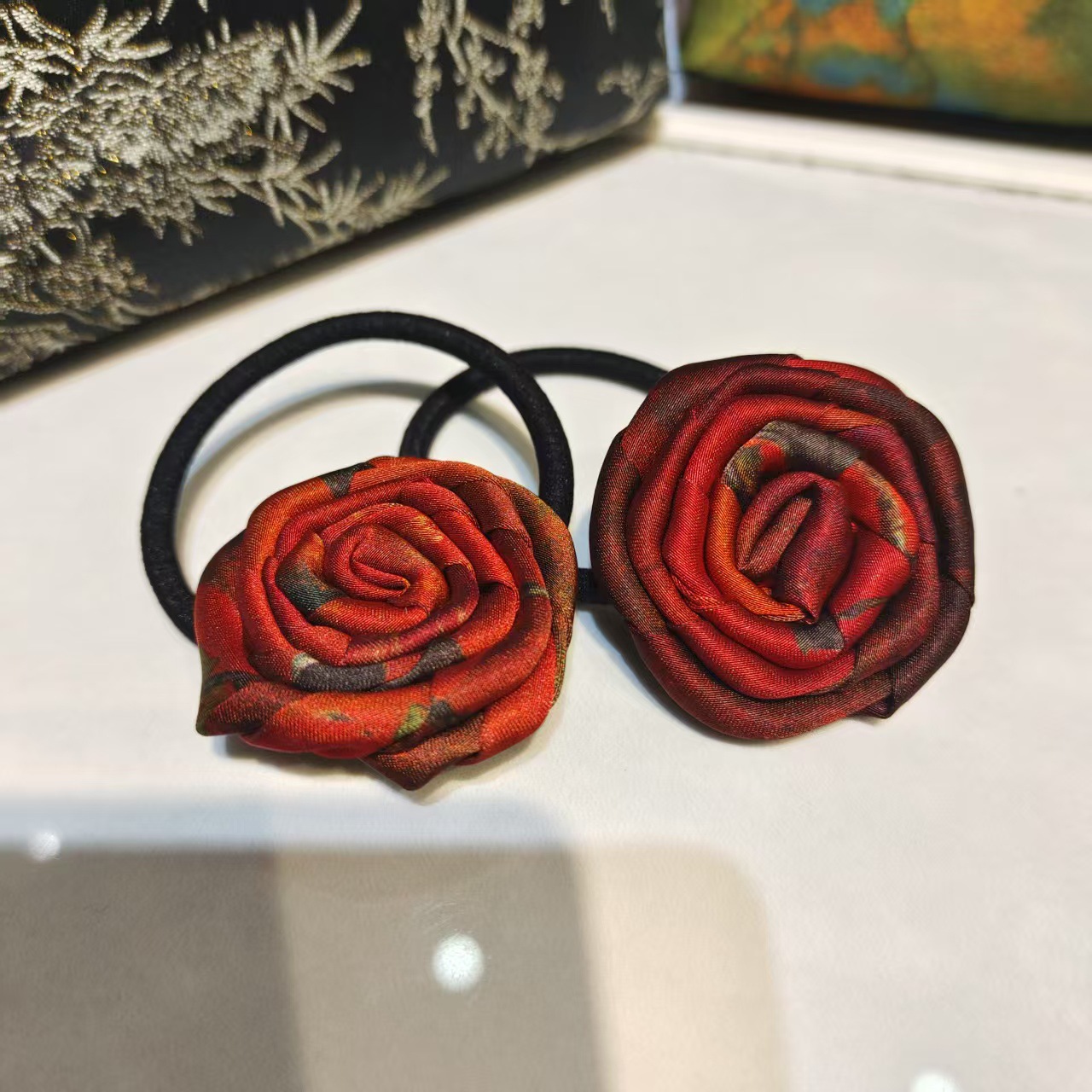 新款香云纱玫瑰花发圈手工高弹力质感发绳头饰时尚轻奢高级感发饰