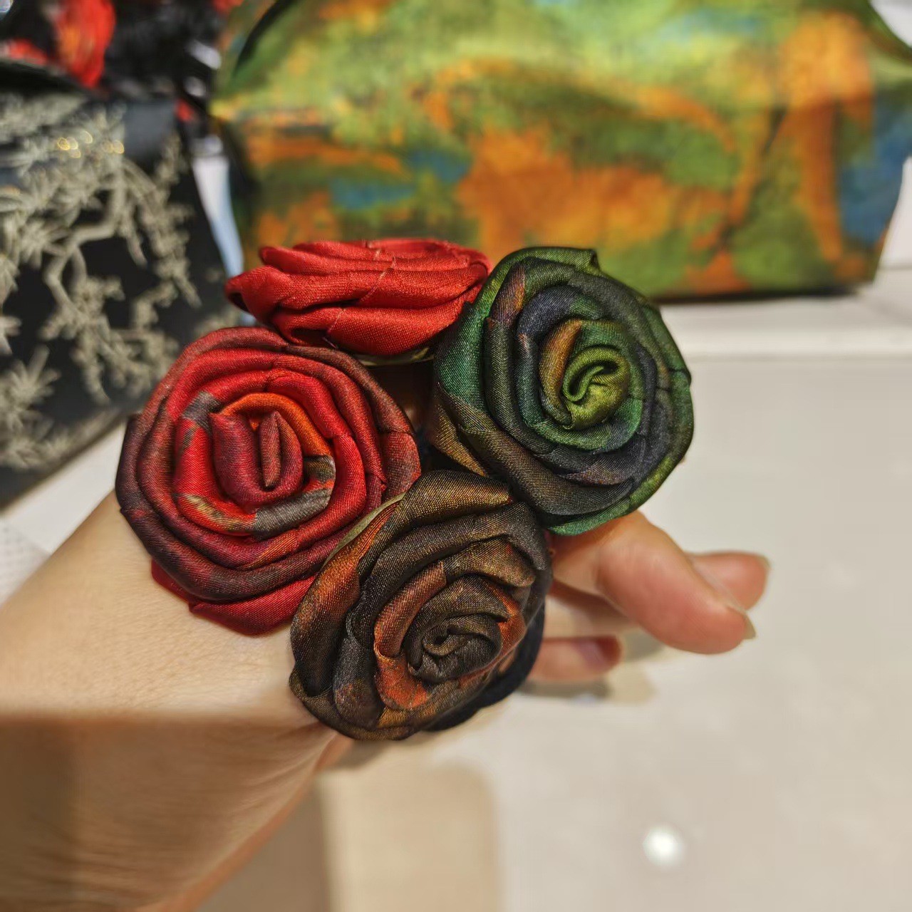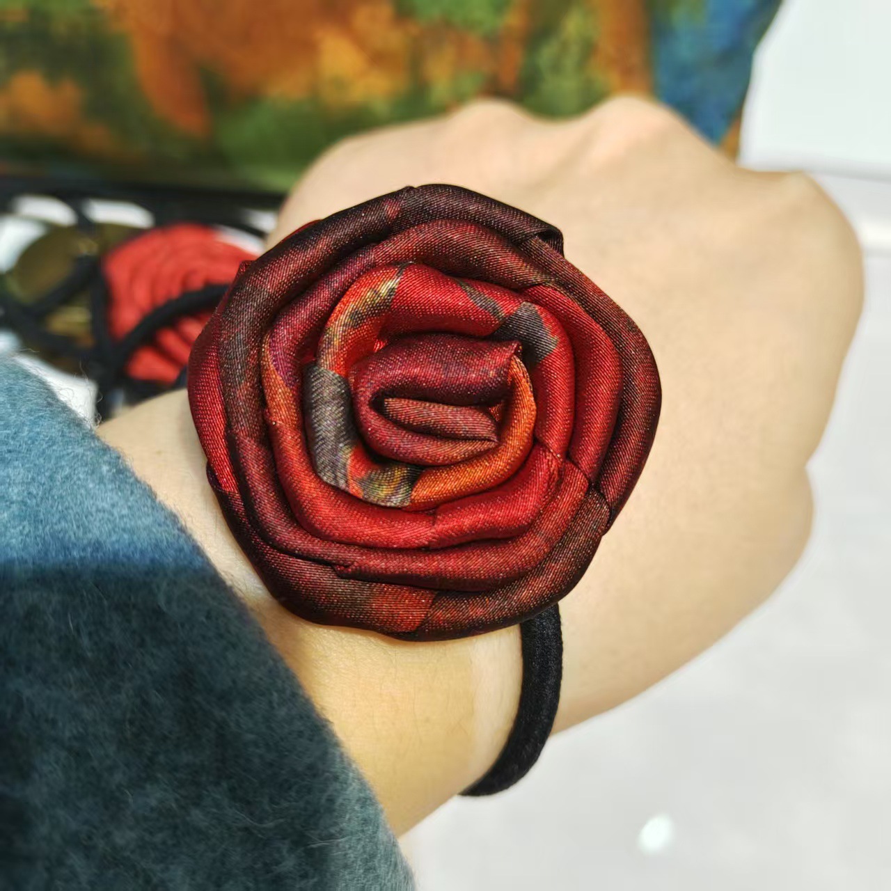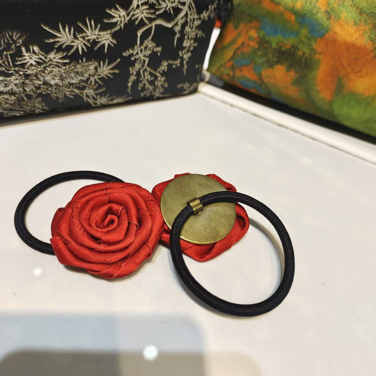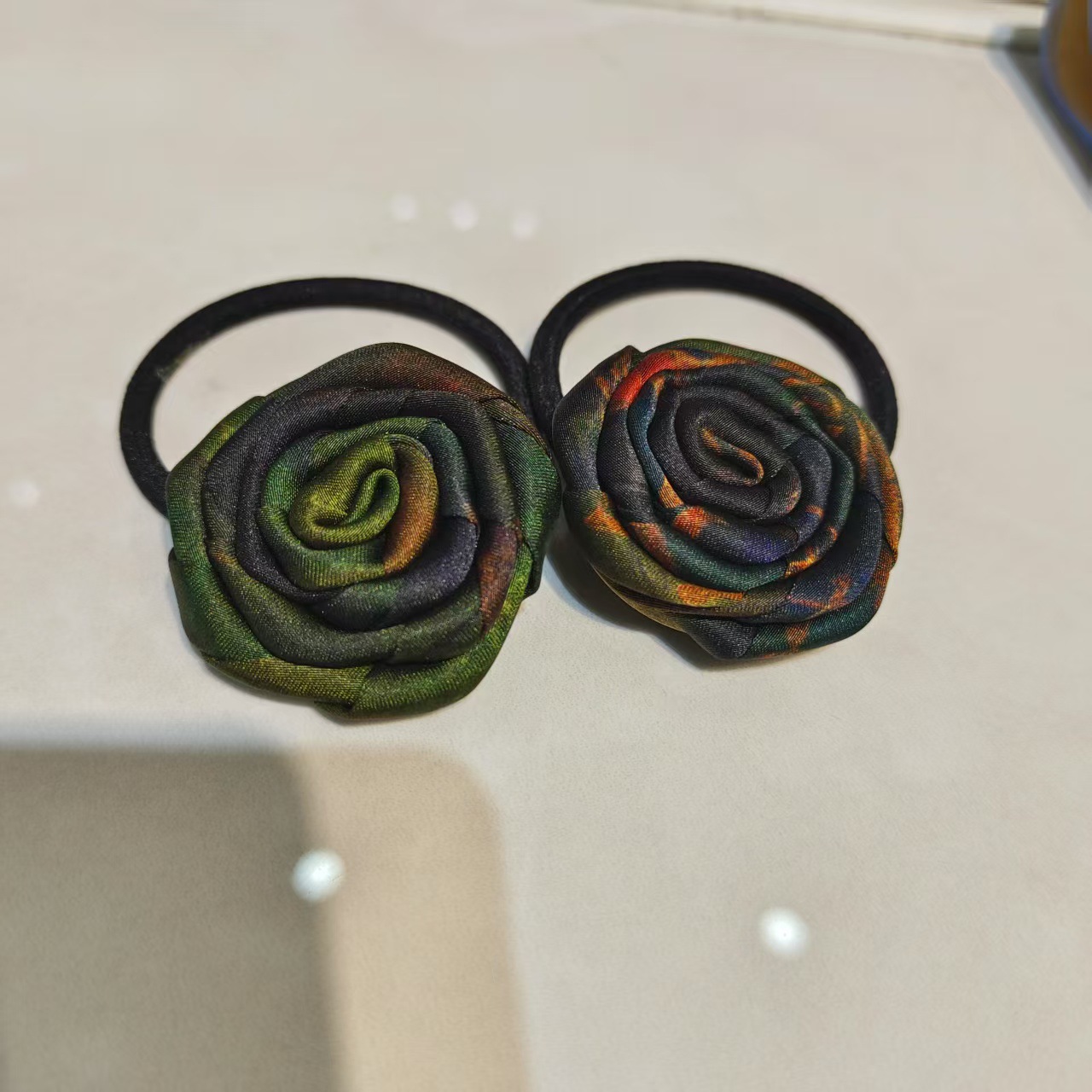 新款香云纱玫瑰花发圈手工高弹力质感发绳头饰时尚轻奢高级感发饰