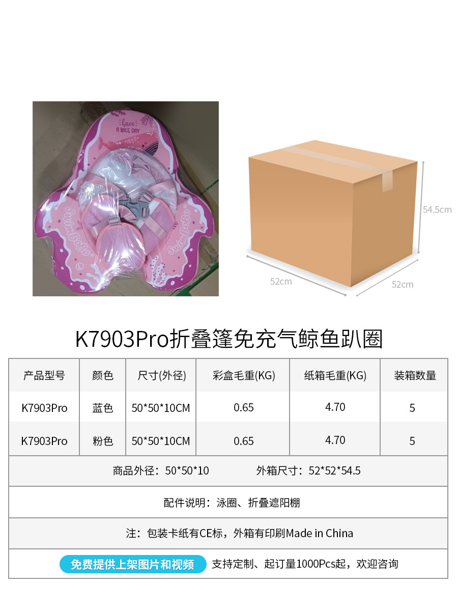 swimbobo婴幼儿免充气趴圈带遮阳蓬游泳圈游泳馆浮圈厂家跨境批发