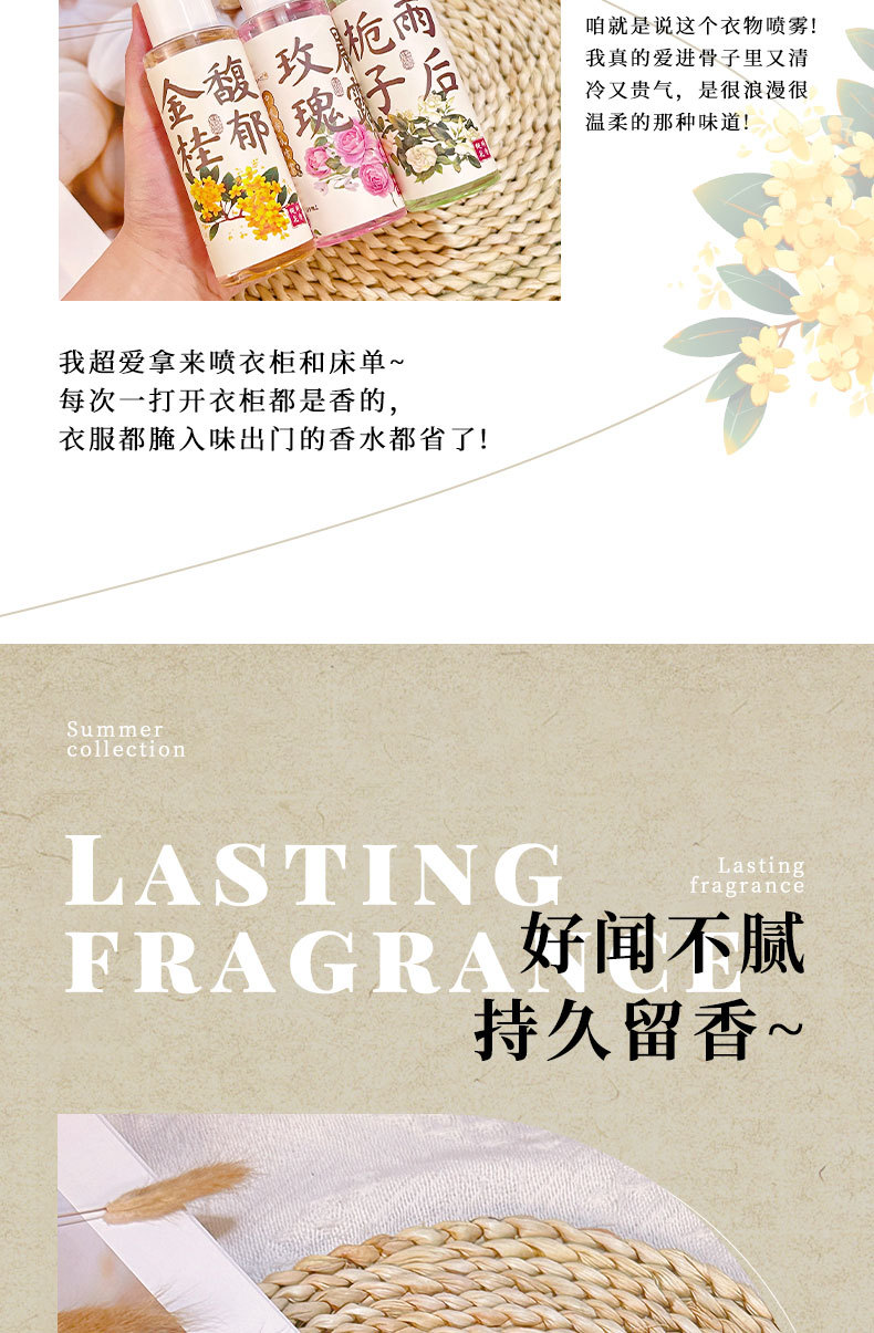 栀子花香氛衣物喷雾无火香薰大瓶持久留香自然除味去异味香薰喷雾