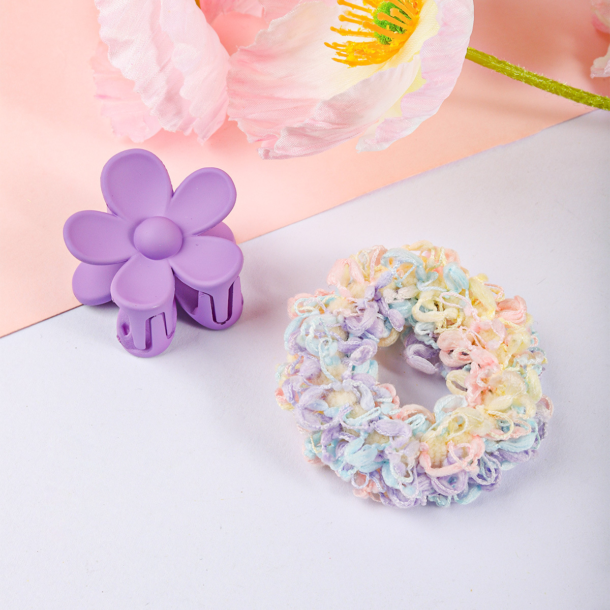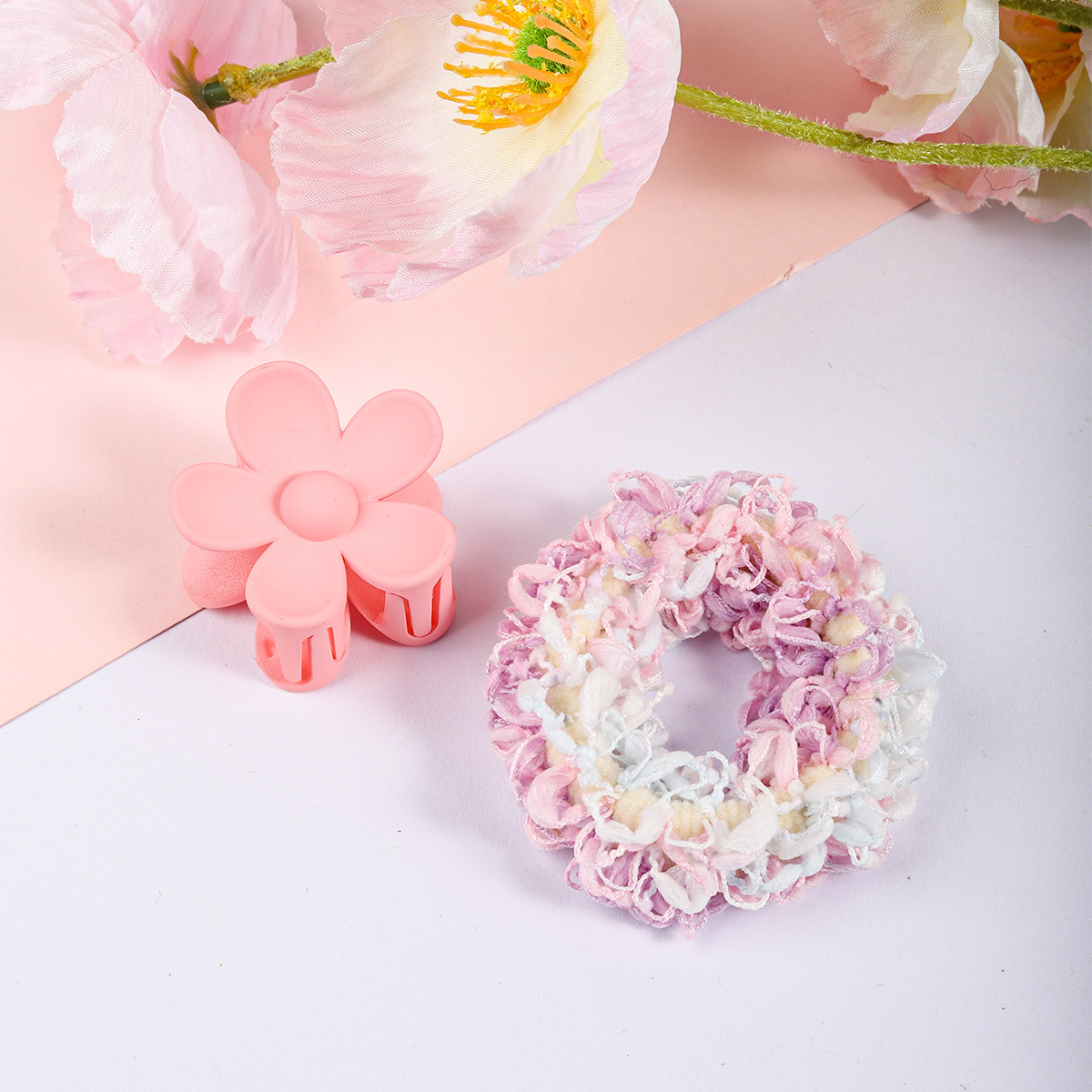 风品森系超仙毛线发圈甜美高级感可爱清新小号花朵抓夹高弹力皮筋