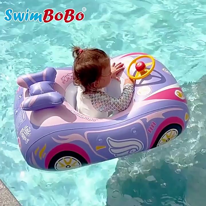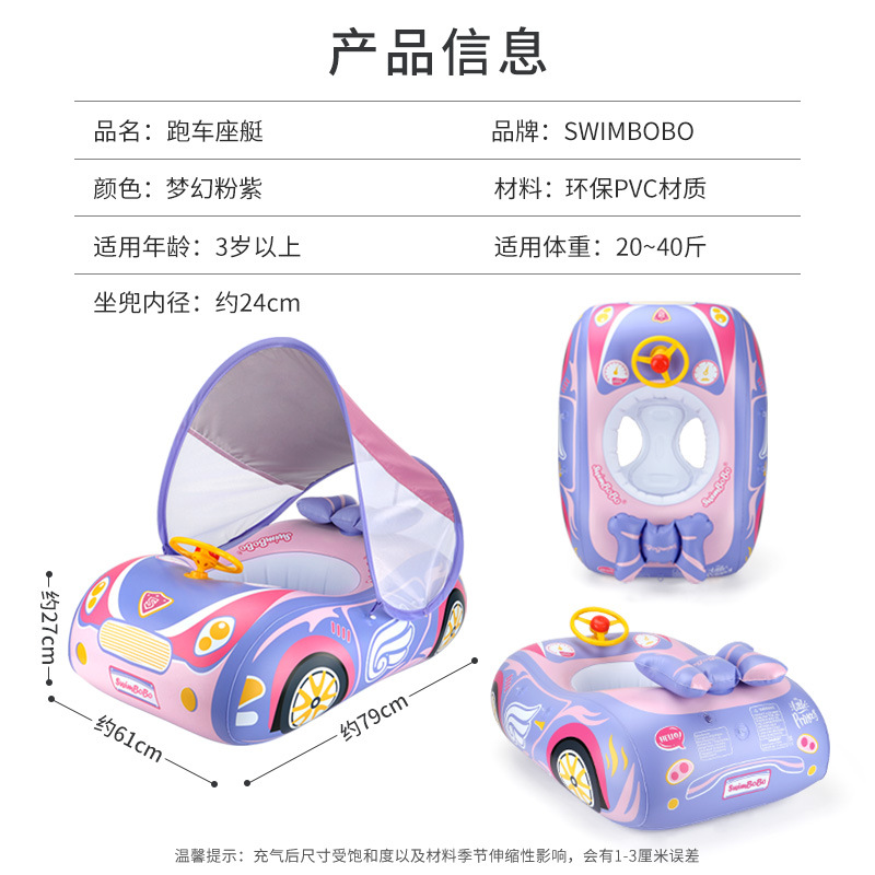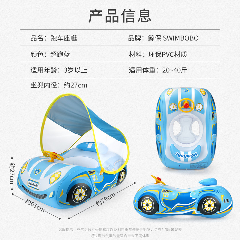swimbobo新款充气车子座圈儿童跑车型游泳圈带防晒遮阳棚喇叭坐圈