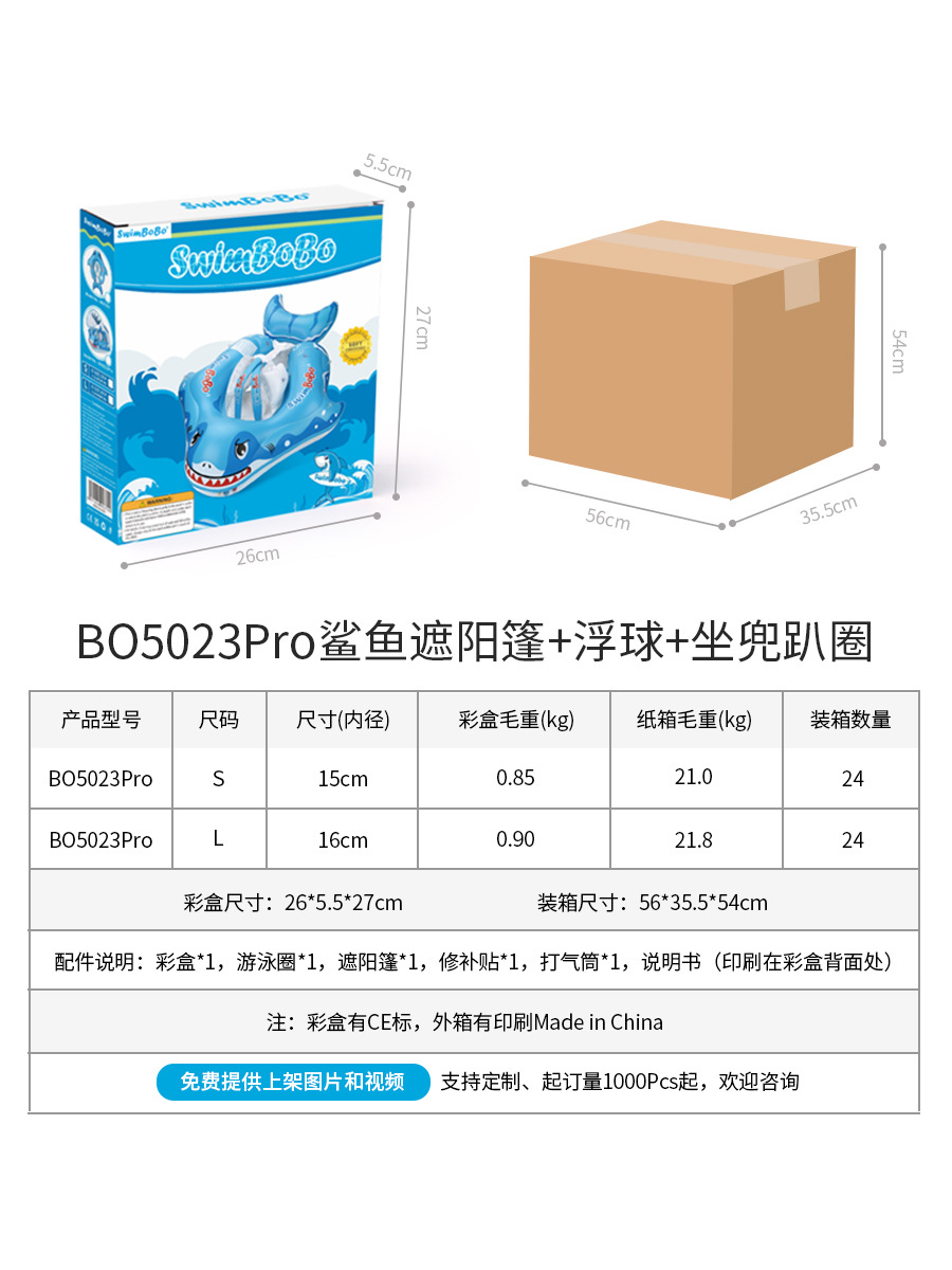 蓝色、白色、透明,产品英文印刷为Swimbobo