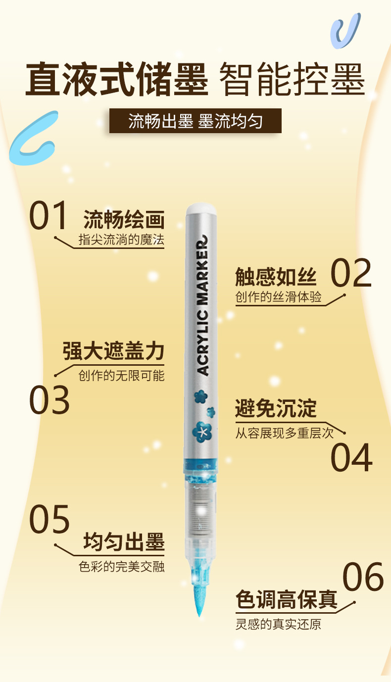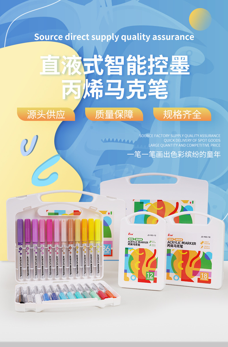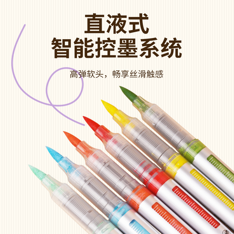初晨多色直液式智能控墨丙烯马克笔学生涂鸦绘画彩色尖头马克笔