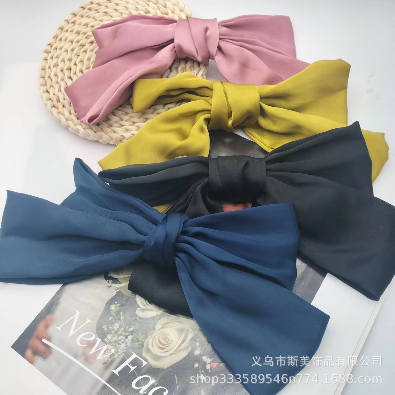 跨境新款雪纺蝴蝶结弹簧夹发饰 网红气质韩版马尾布艺女发夹 批发