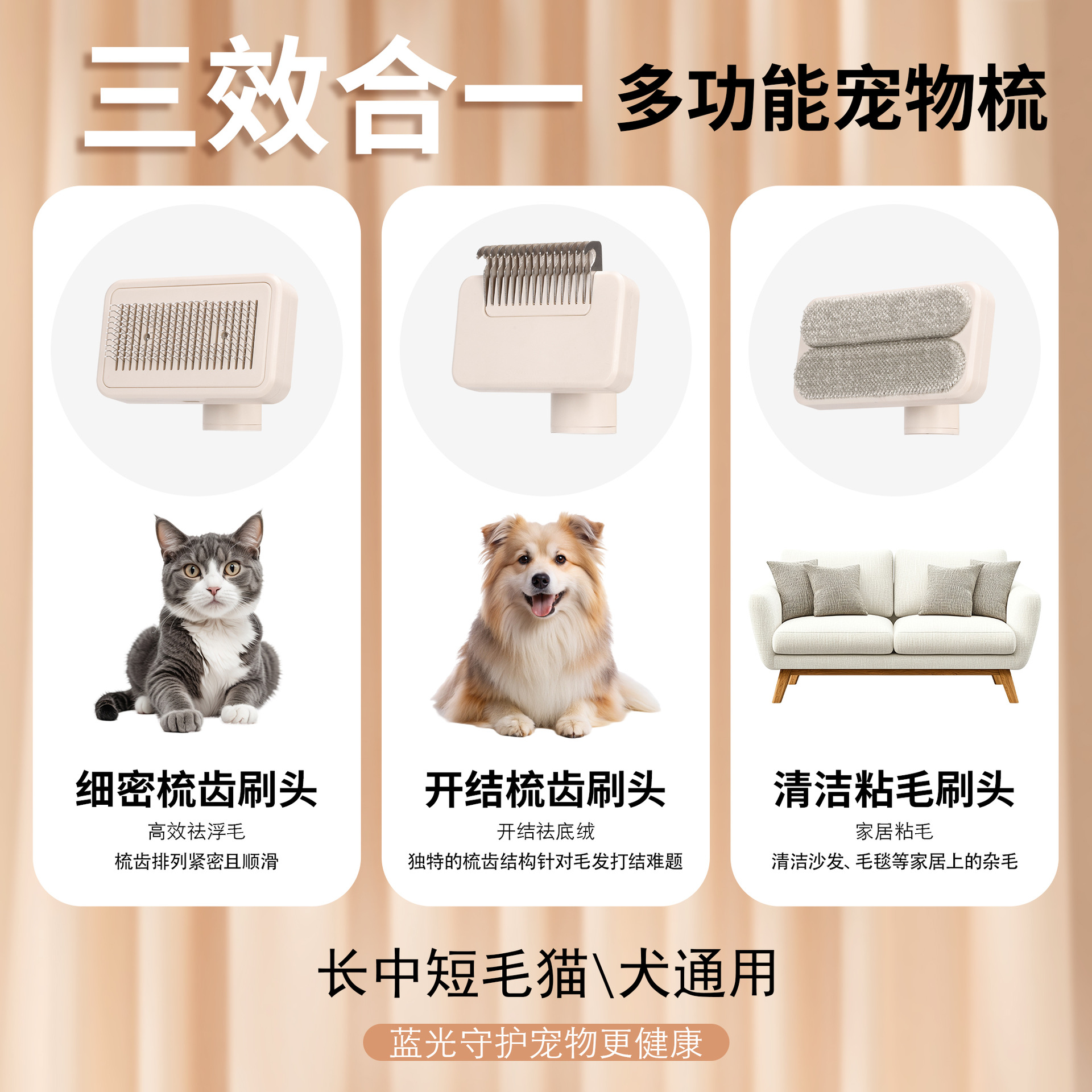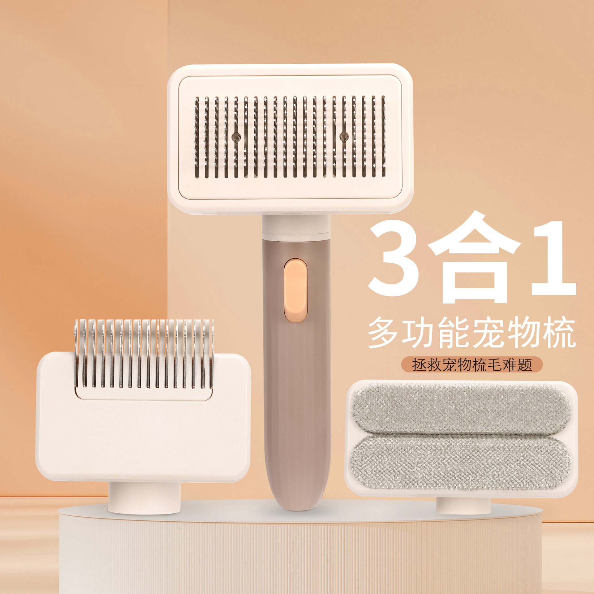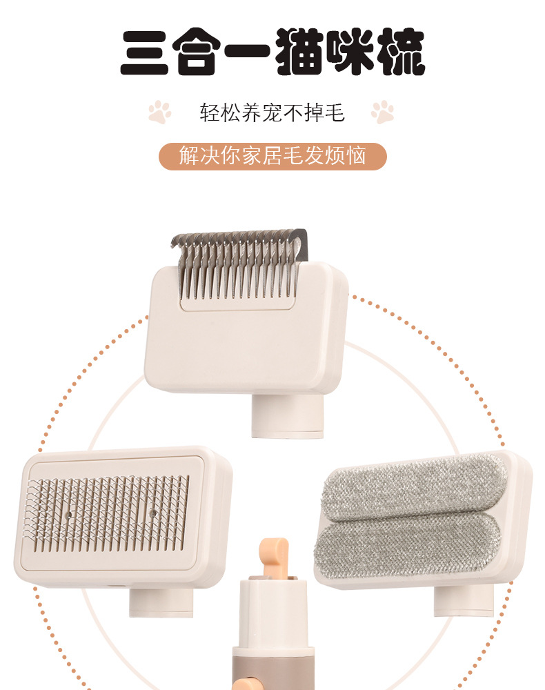 三合一宠物猫狗毛梳子深层祛浮毛神器狗猫刷长毛刷猫毛清理器跨境