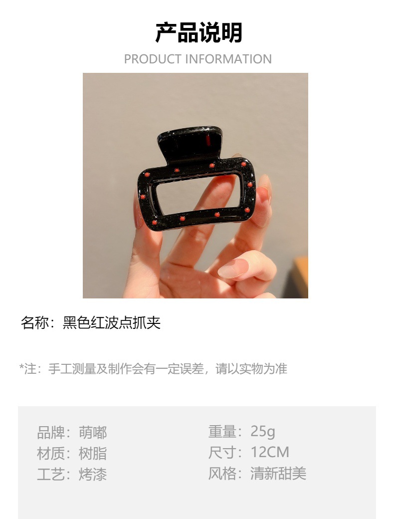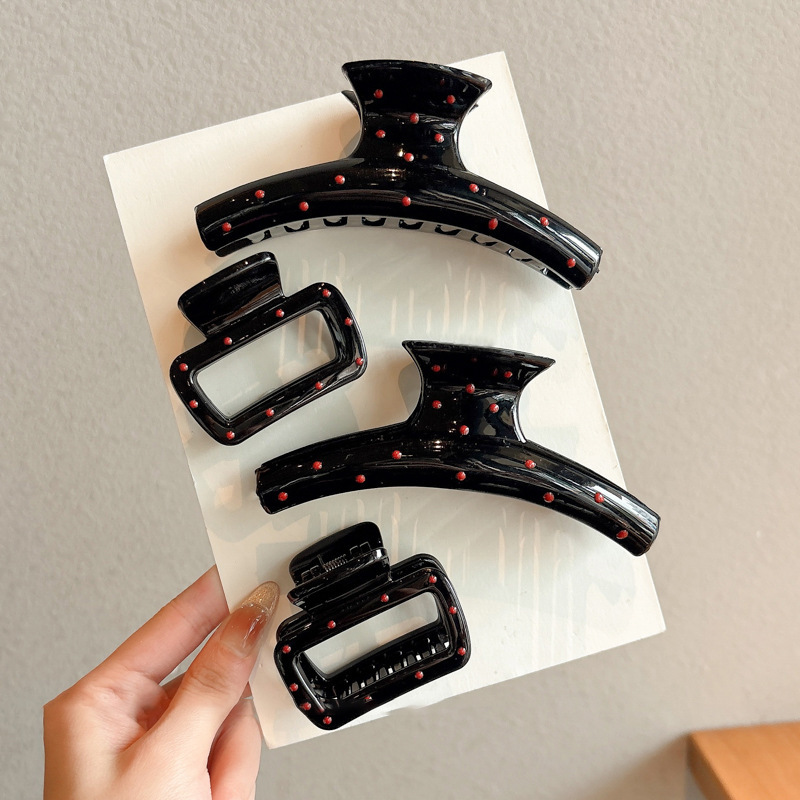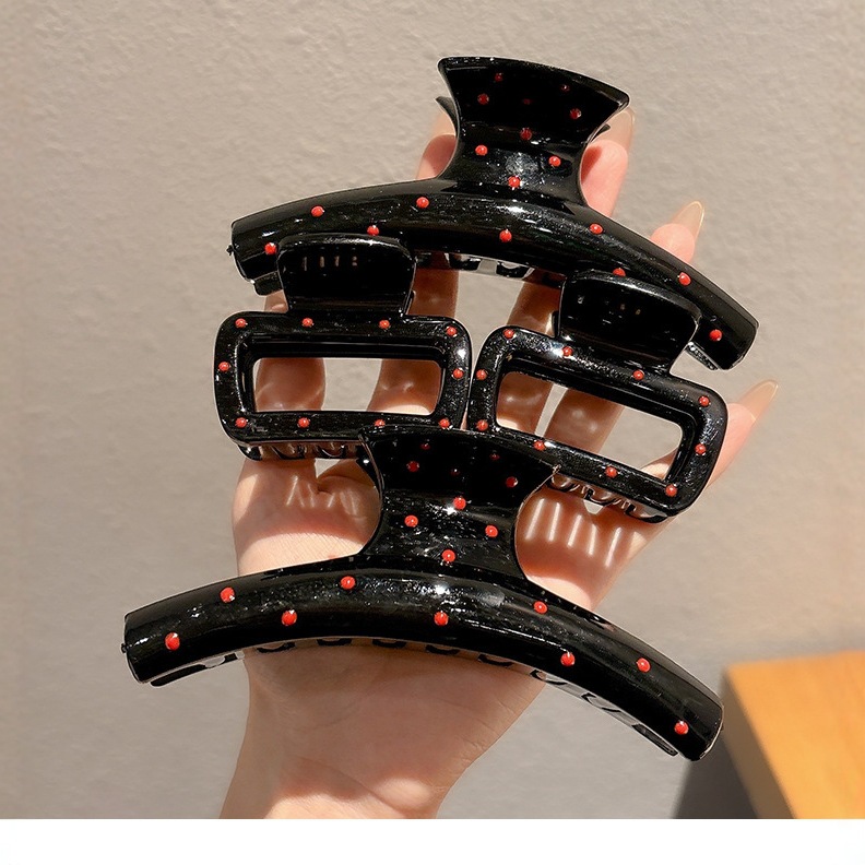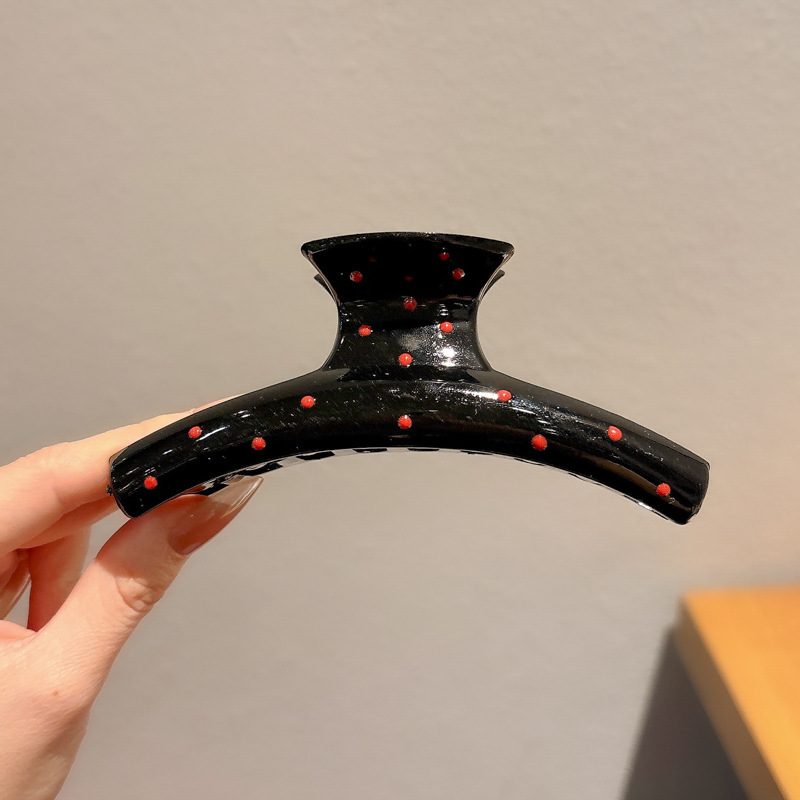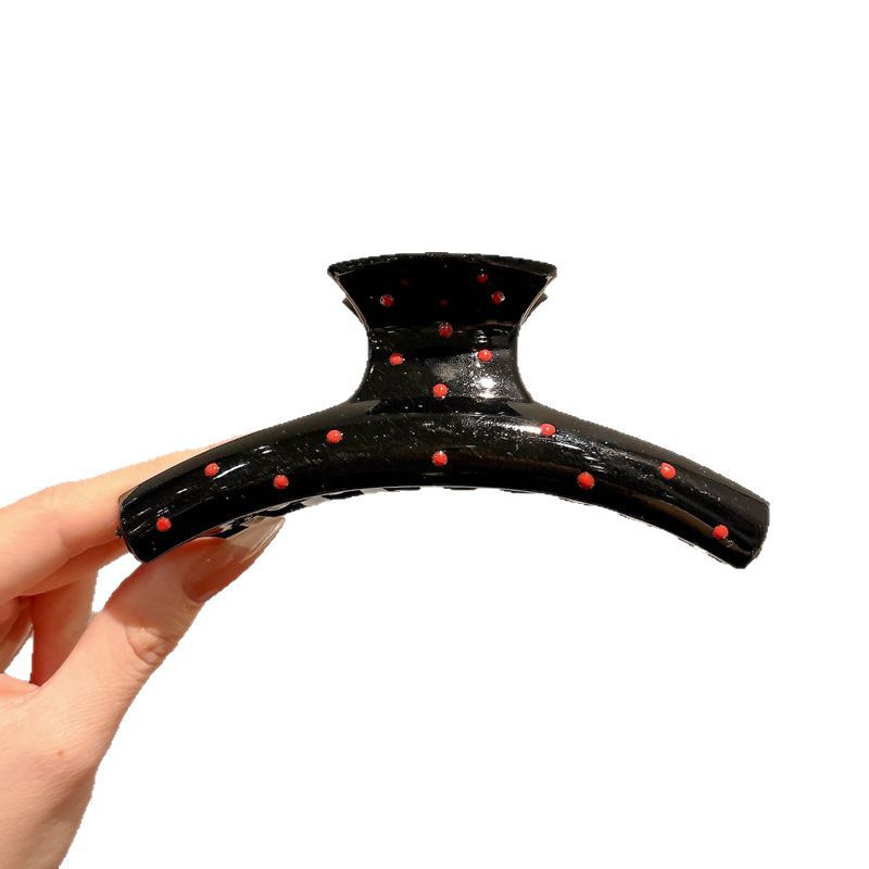 黑色波点抓夹女高级感2025新款后脑勺鲨鱼夹发夹头饰高端发卡发饰