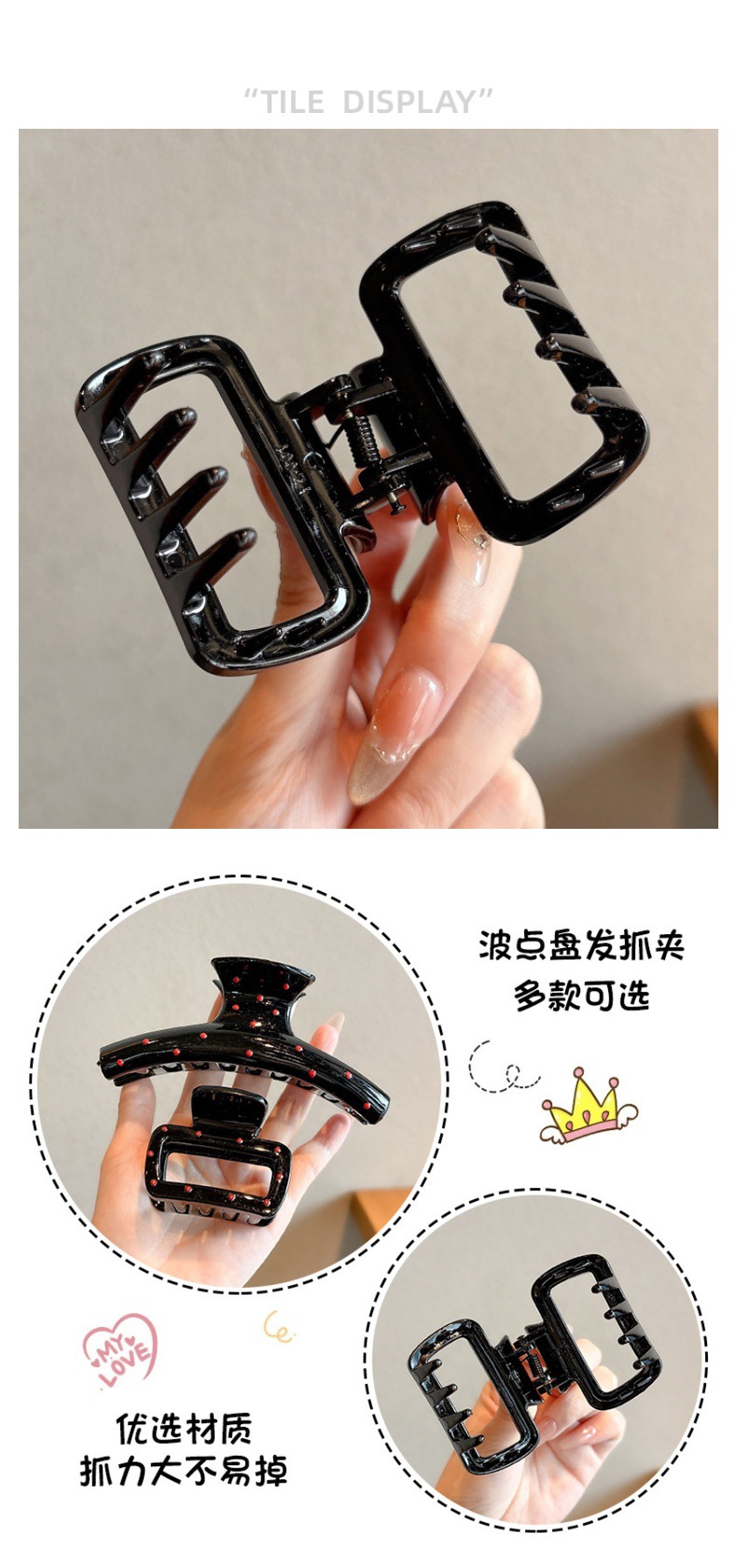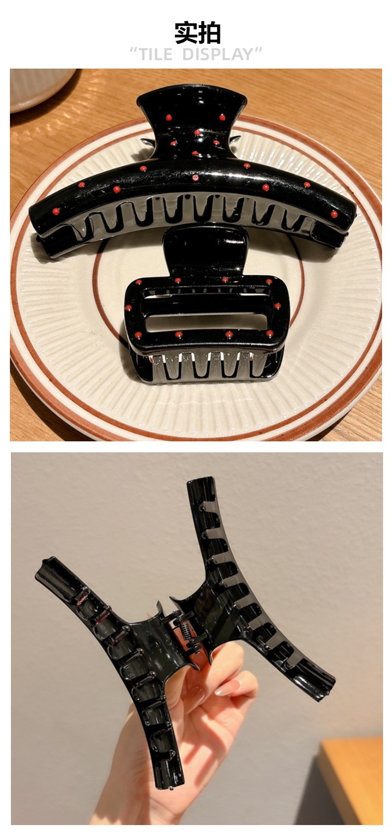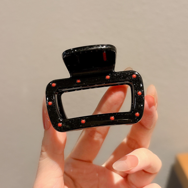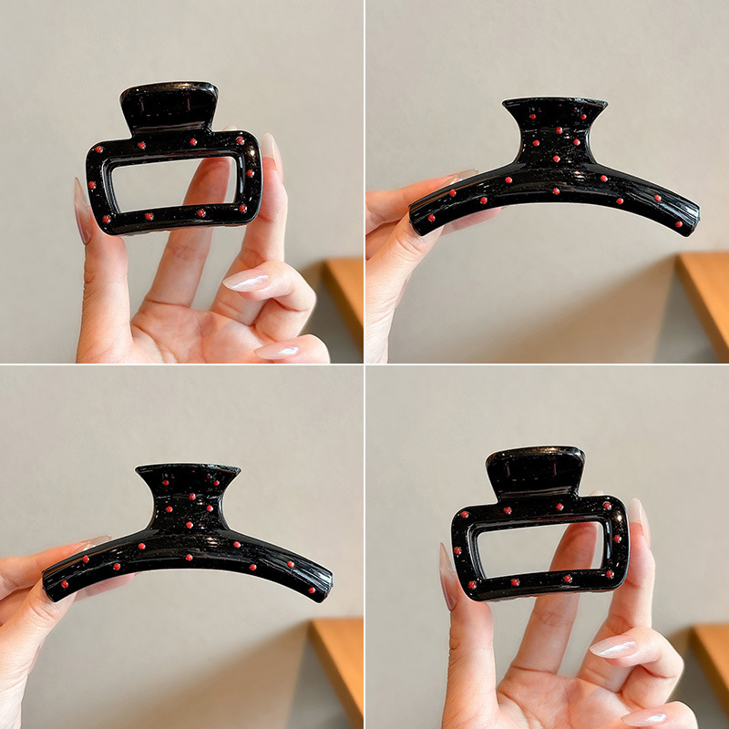 黑色波点抓夹女高级感2025新款后脑勺鲨鱼夹发夹头饰高端发卡发饰
