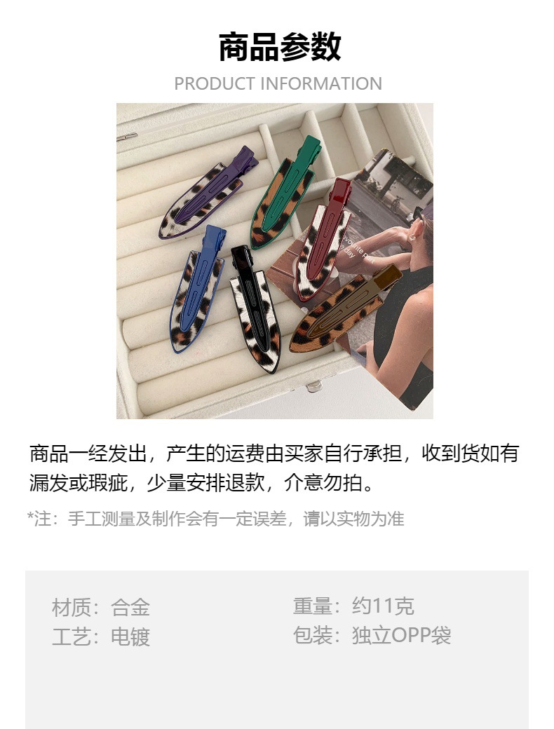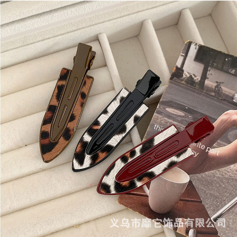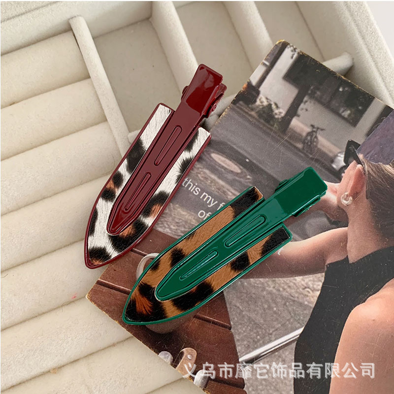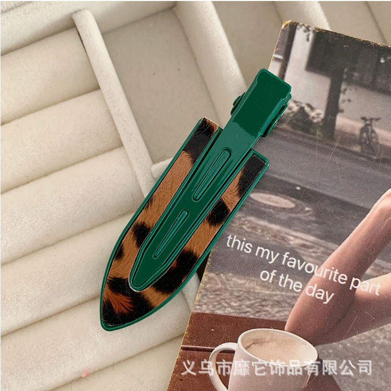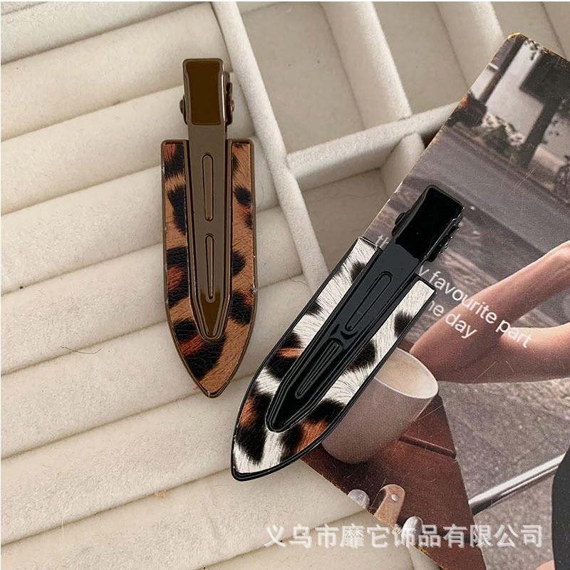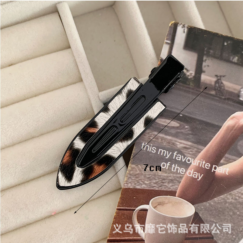 新款合金豹纹无痕夹女侧边前额碎发刘海夹简约高级感拼接鸭嘴夹女