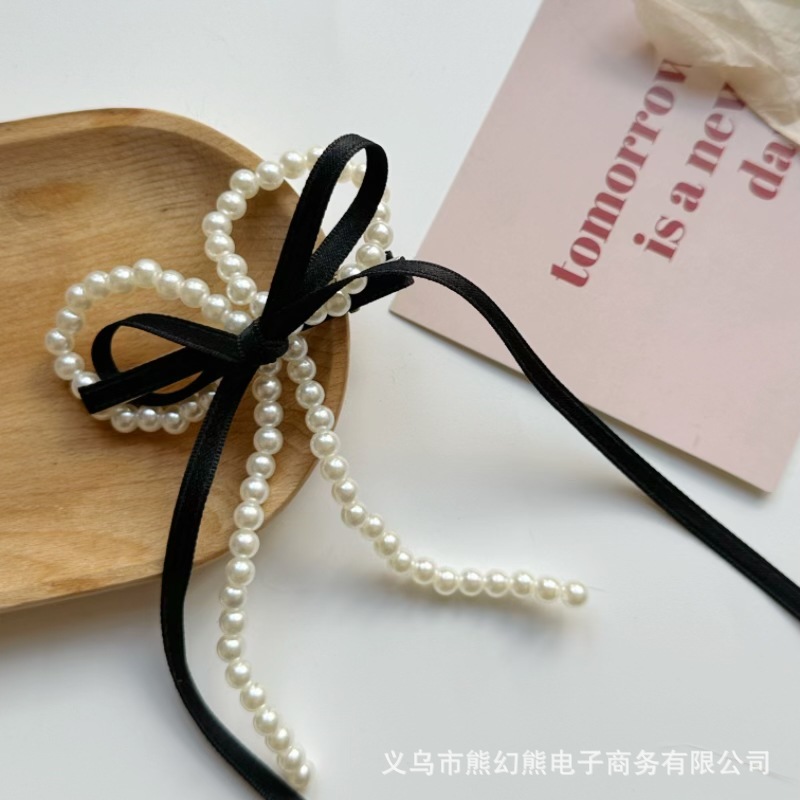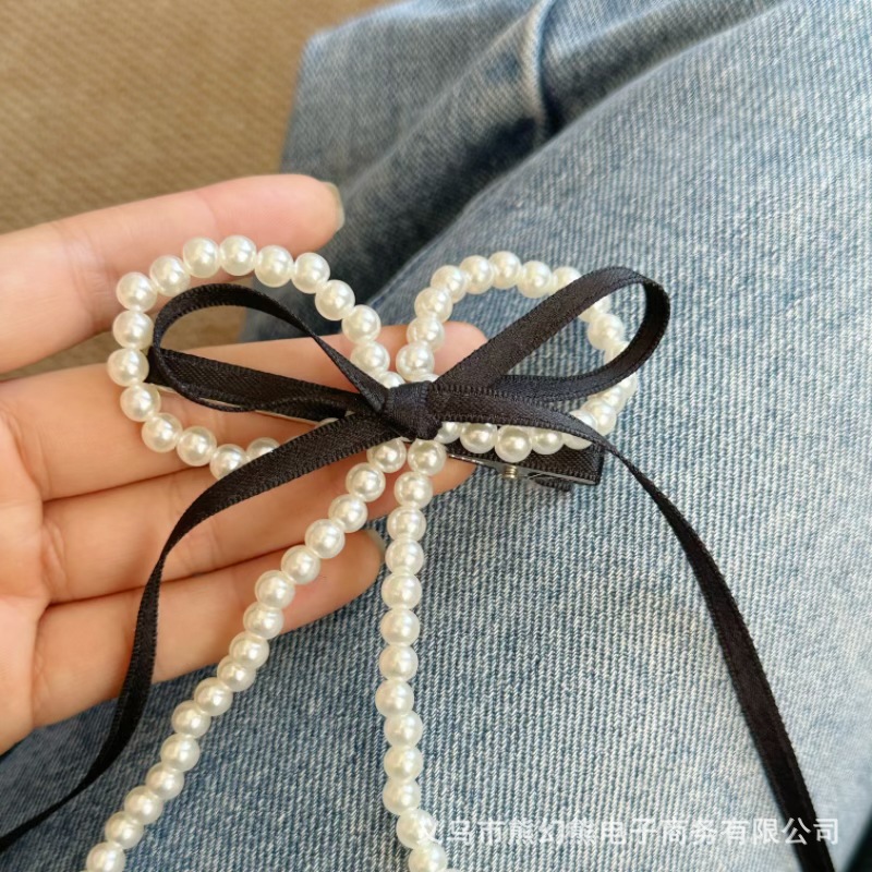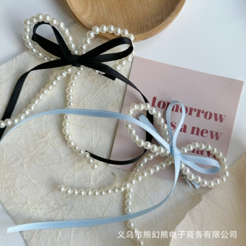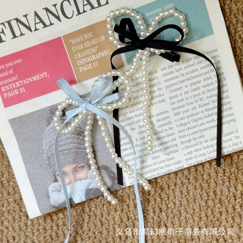 精致甜美丝带串珠彩色花朵发夹女蝴蝶结新款气质高级感刘海夹发饰
