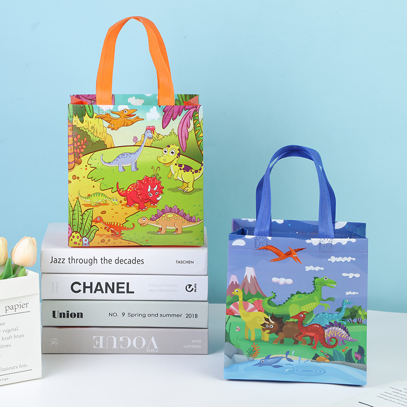 亚马逊新款恐龙霸王龙卡通可爱无纺布礼品袋儿童礼物包装手提防水