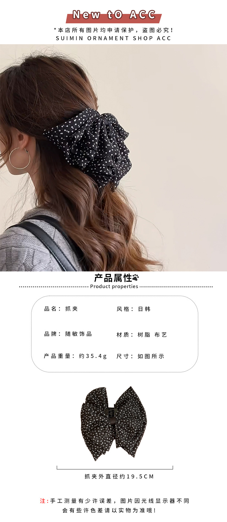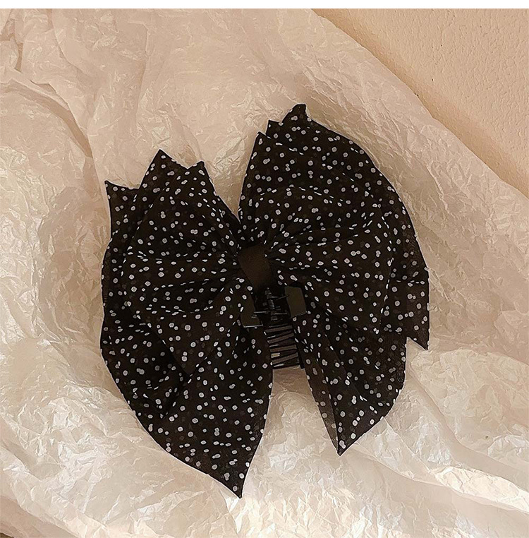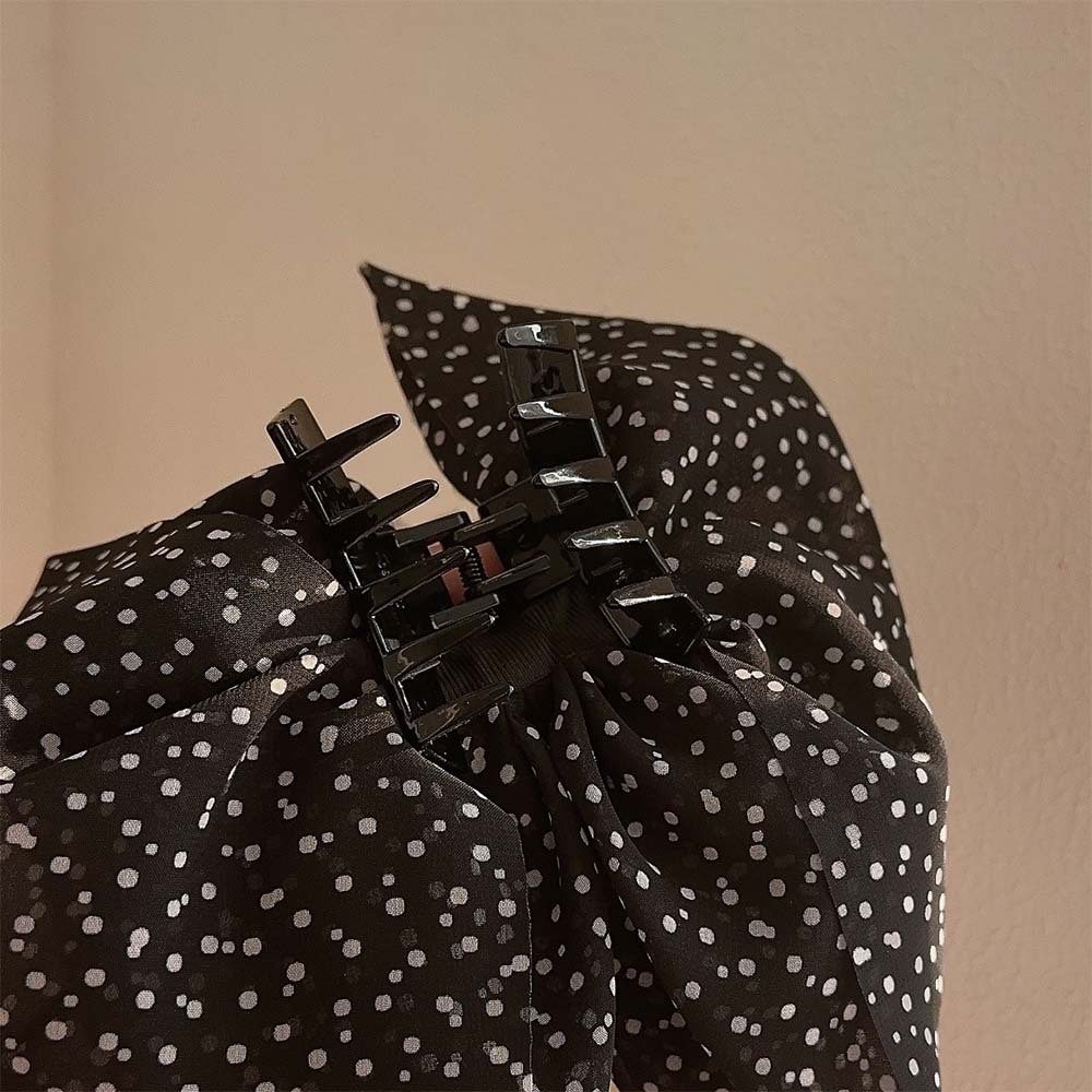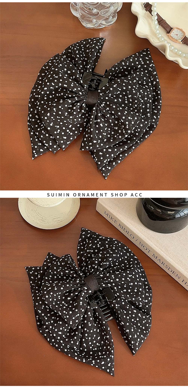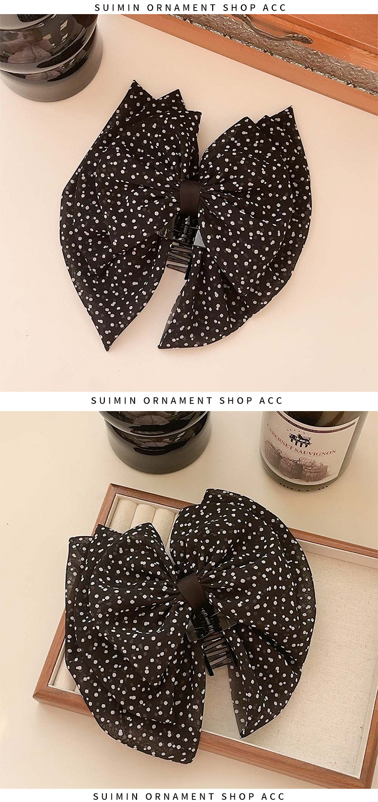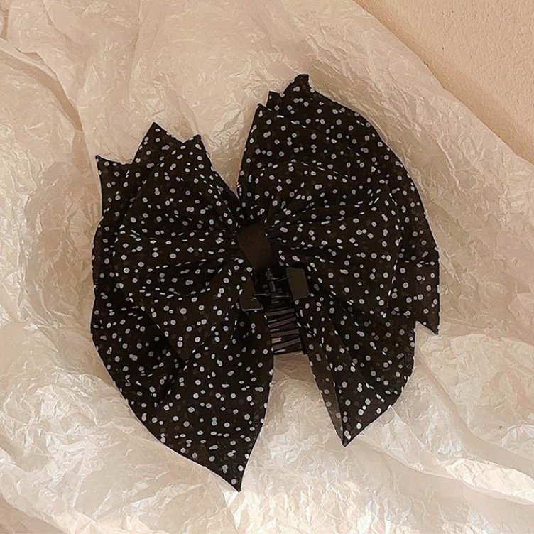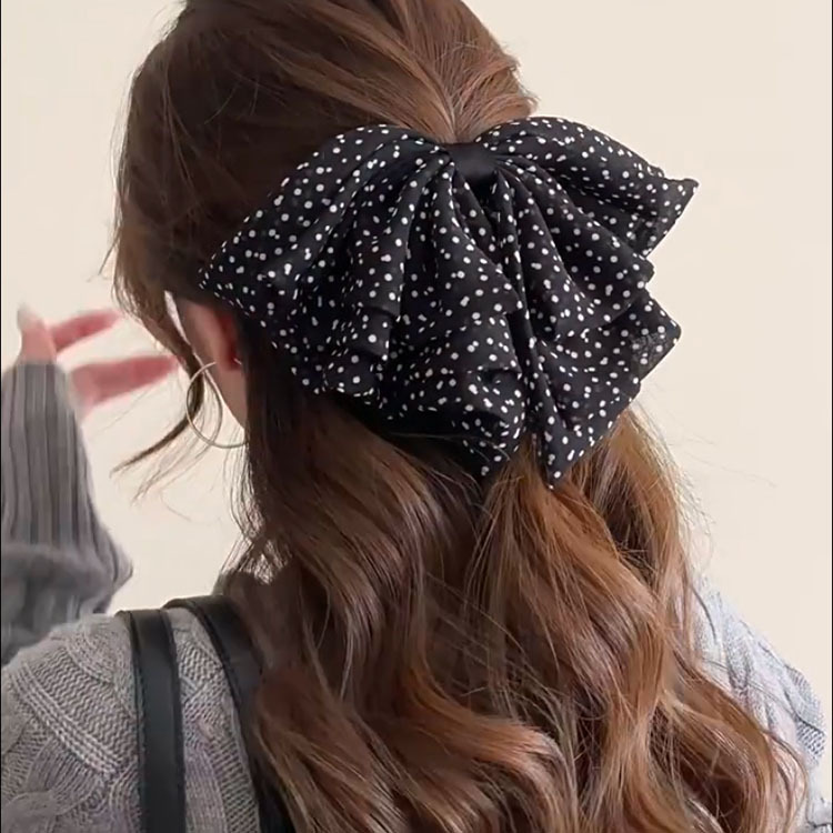 法式三层波点大蝴蝶结抓夹气质高级感发夹马尾鲨鱼夹后脑勺发抓夹
