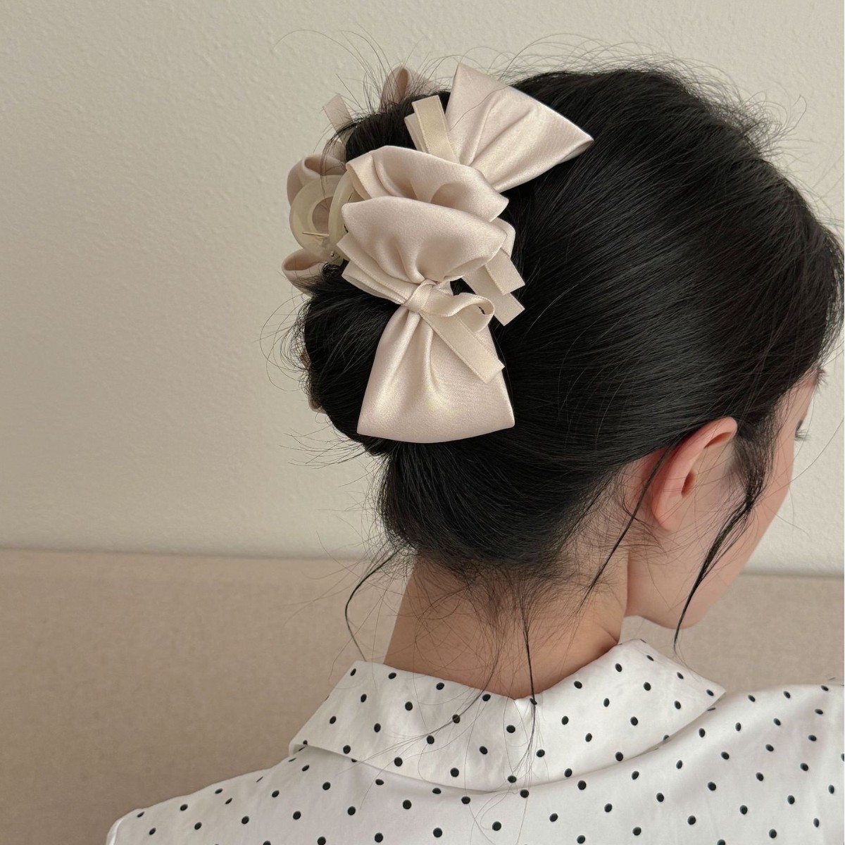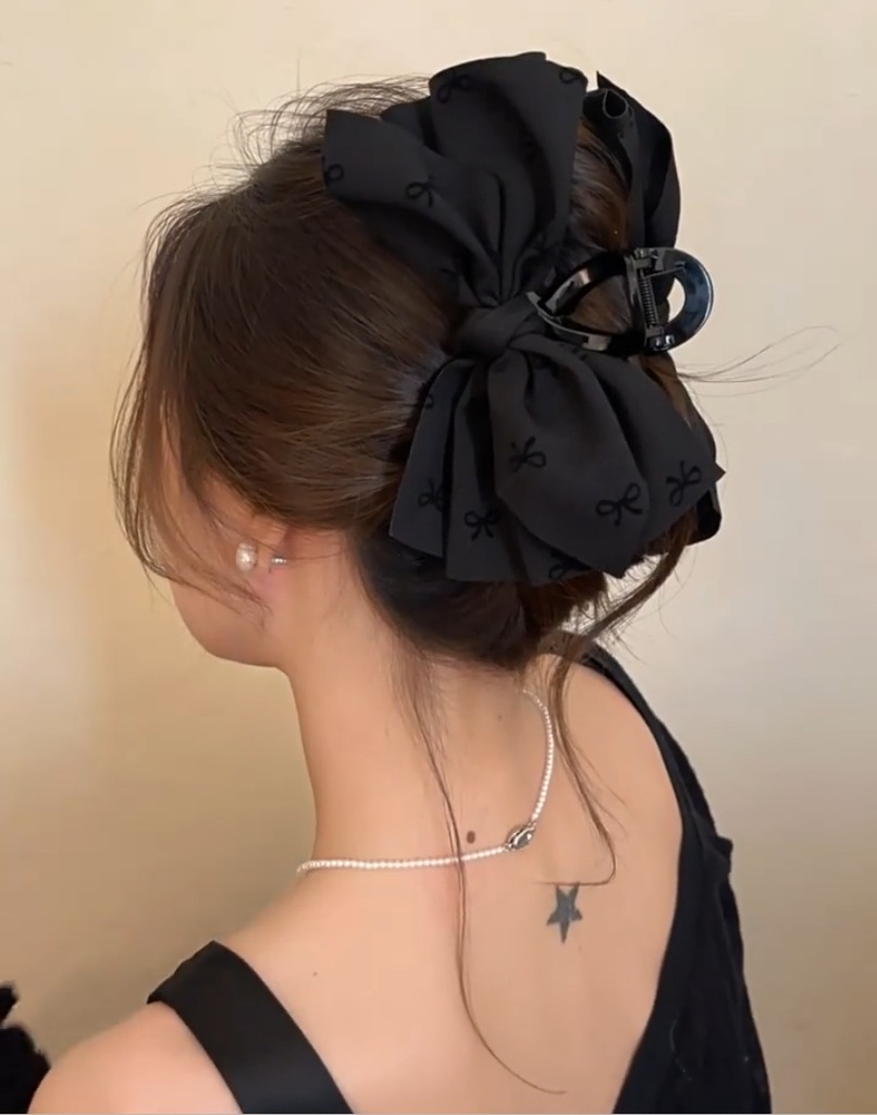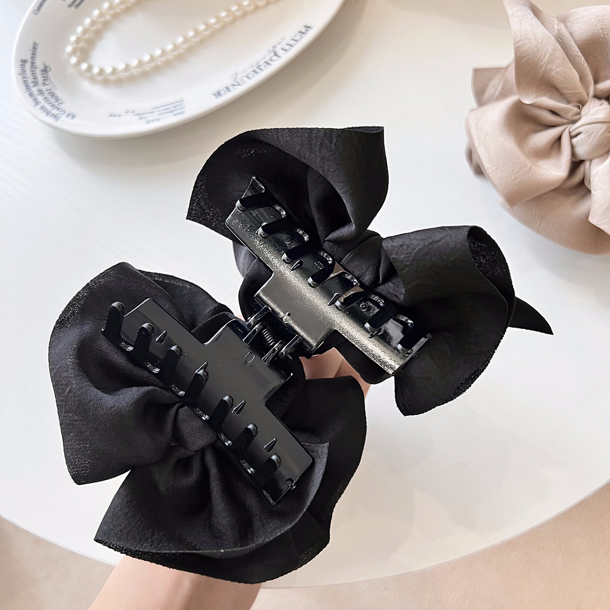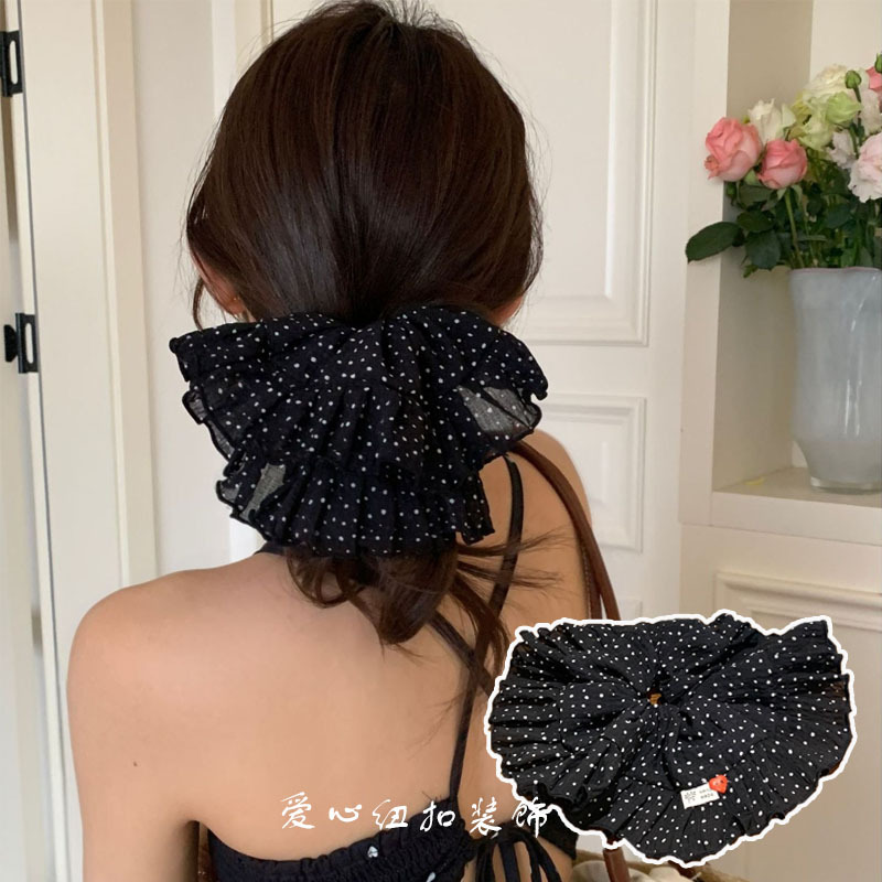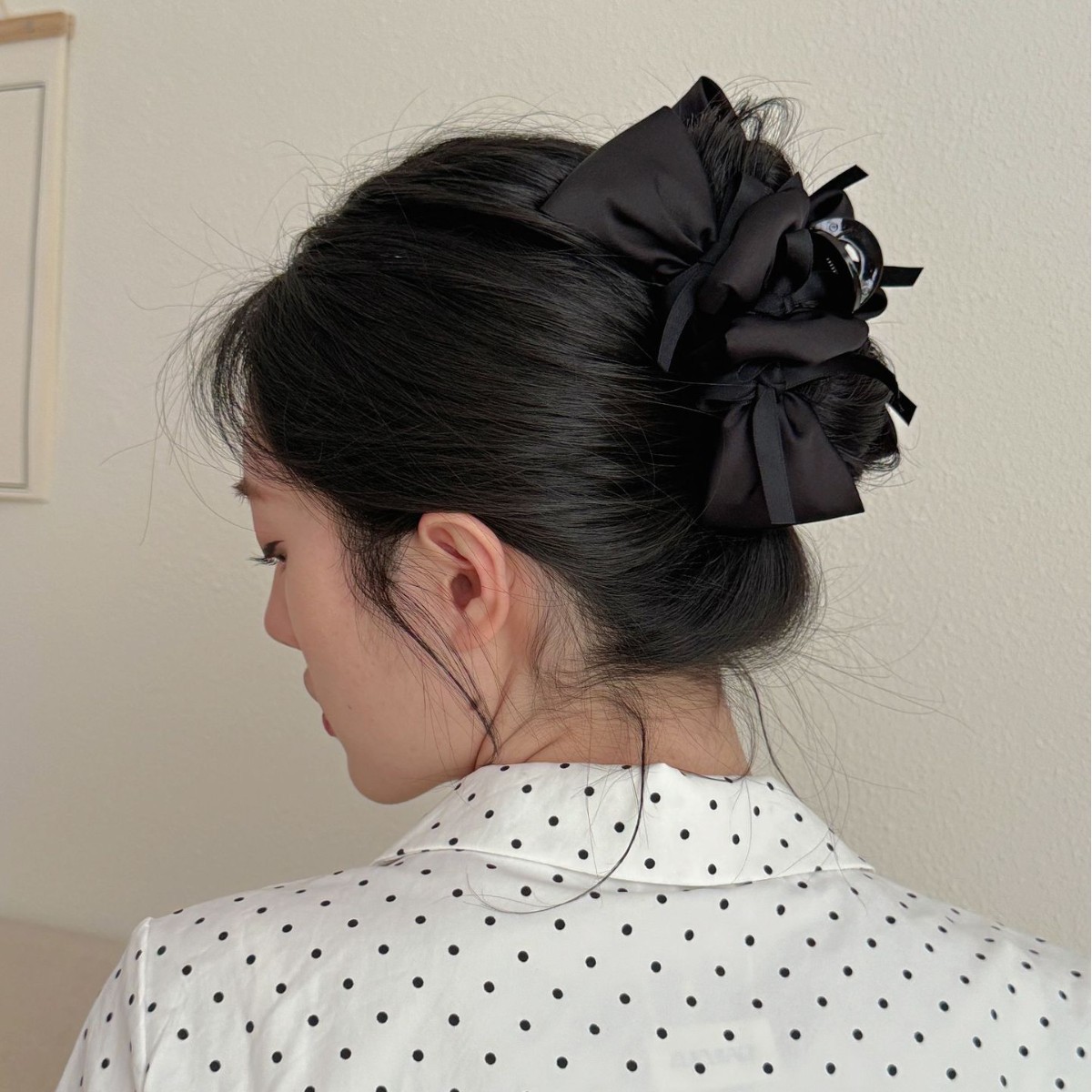 法式三层波点大蝴蝶结抓夹气质高级感发夹马尾鲨鱼夹后脑勺发抓夹