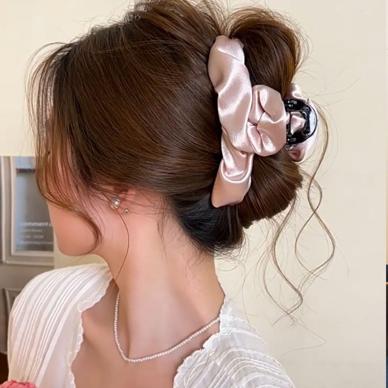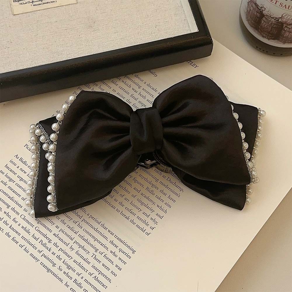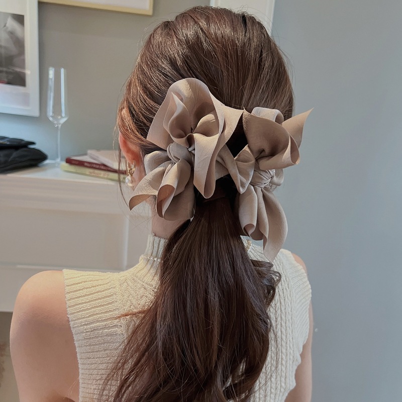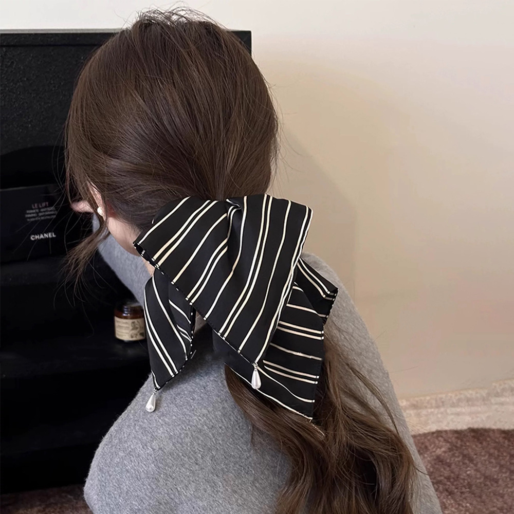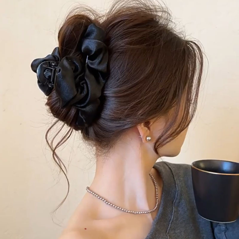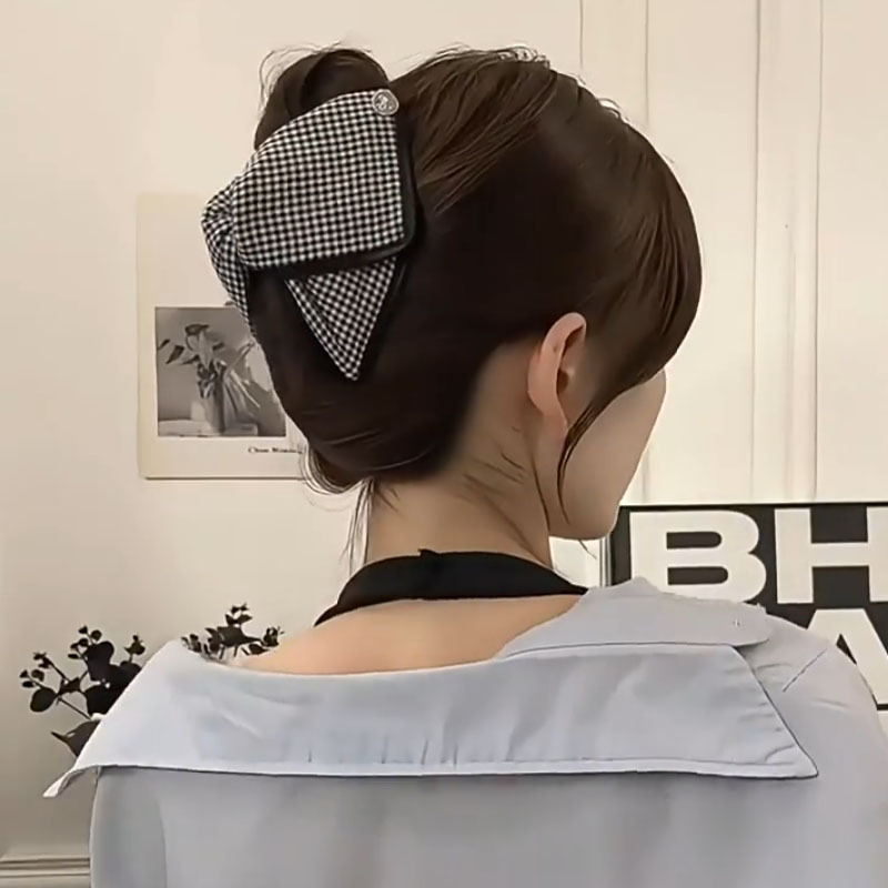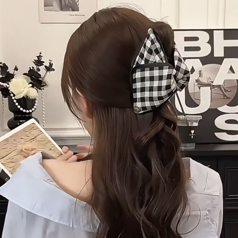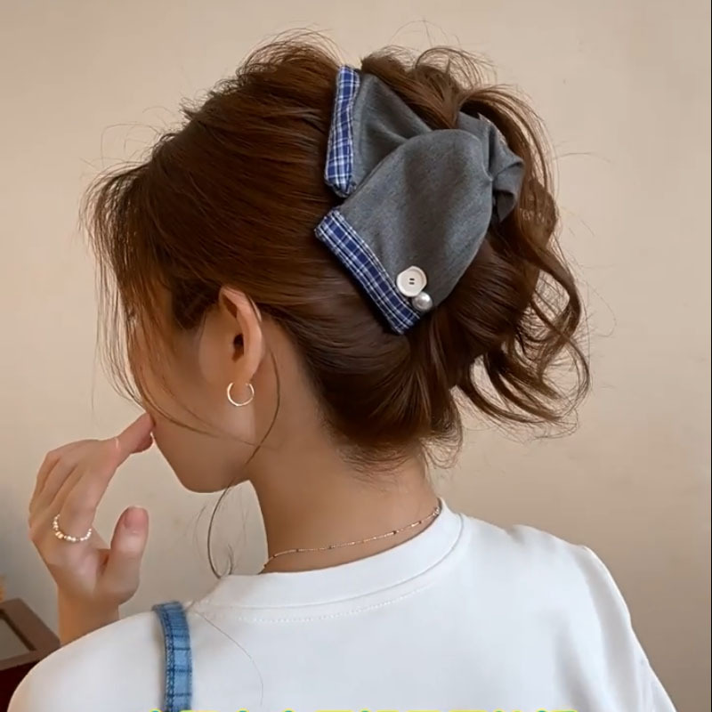 法式三层波点大蝴蝶结抓夹气质高级感发夹马尾鲨鱼夹后脑勺发抓夹