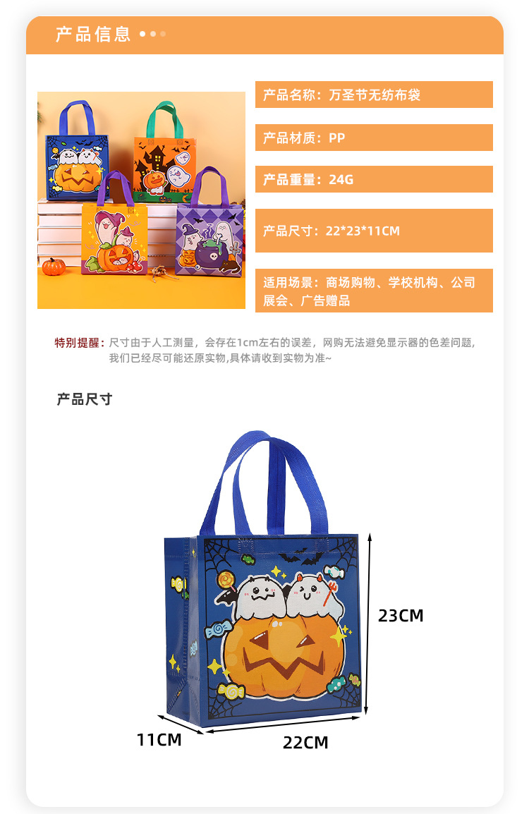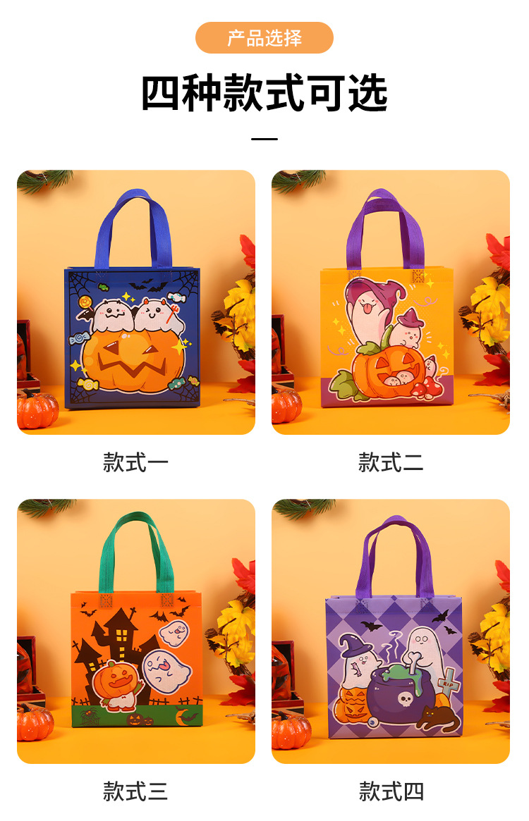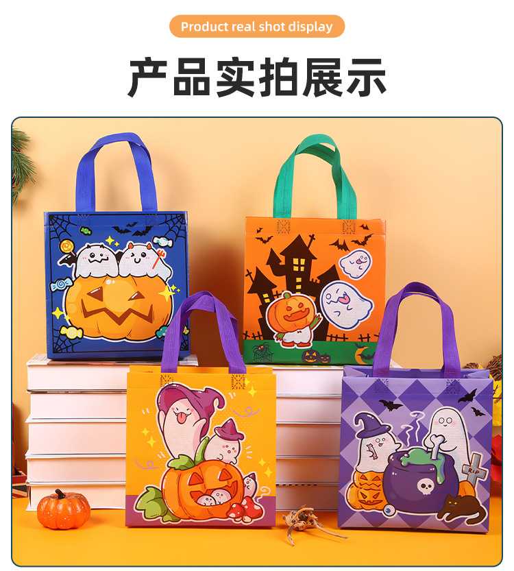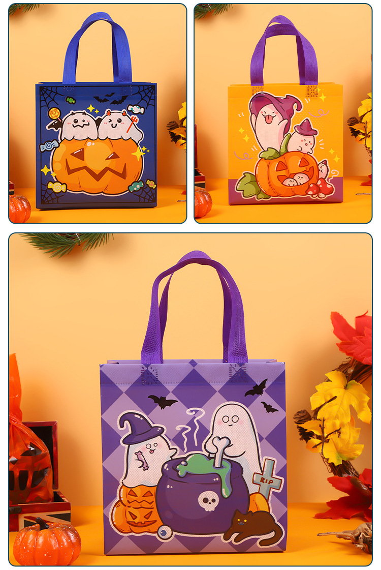 跨境新品万圣节南瓜蝙蝠幽灵鬼节无纺可爱糖果包装手提防水礼品袋