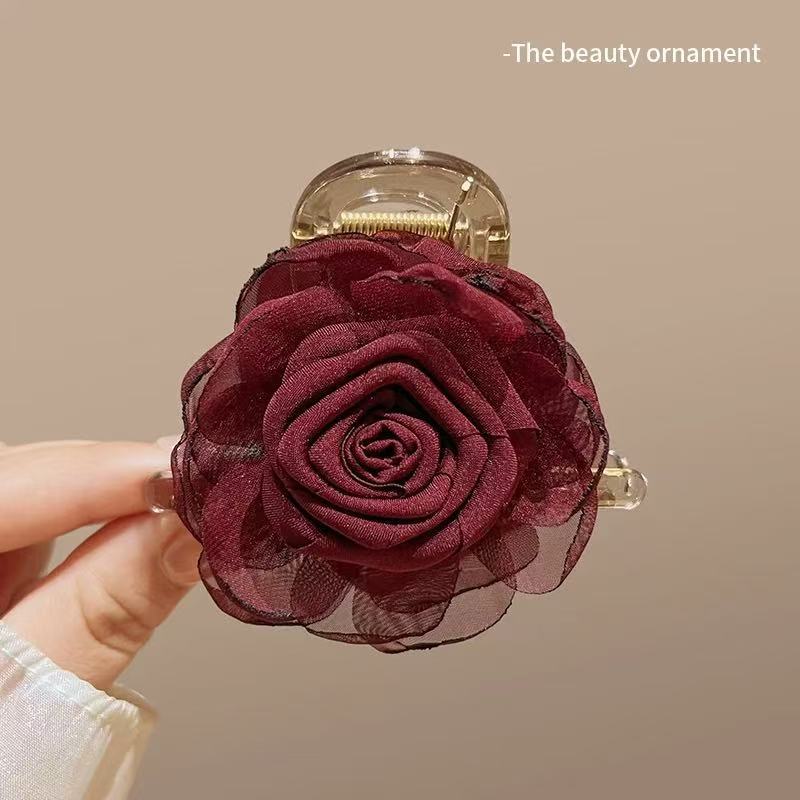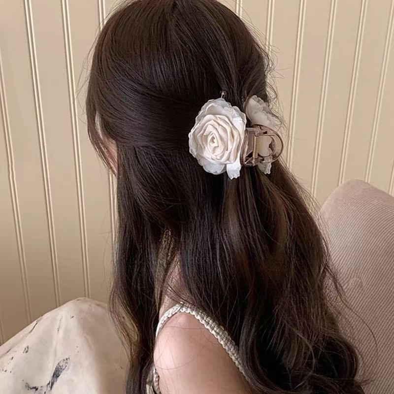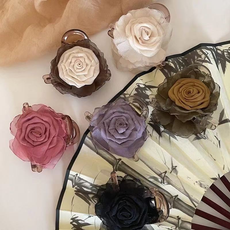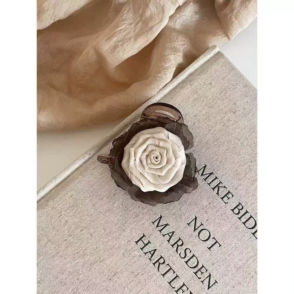 干枯玫瑰花朵抓夹女2025新款高级感发夹后脑勺半扎发发抓小众气质