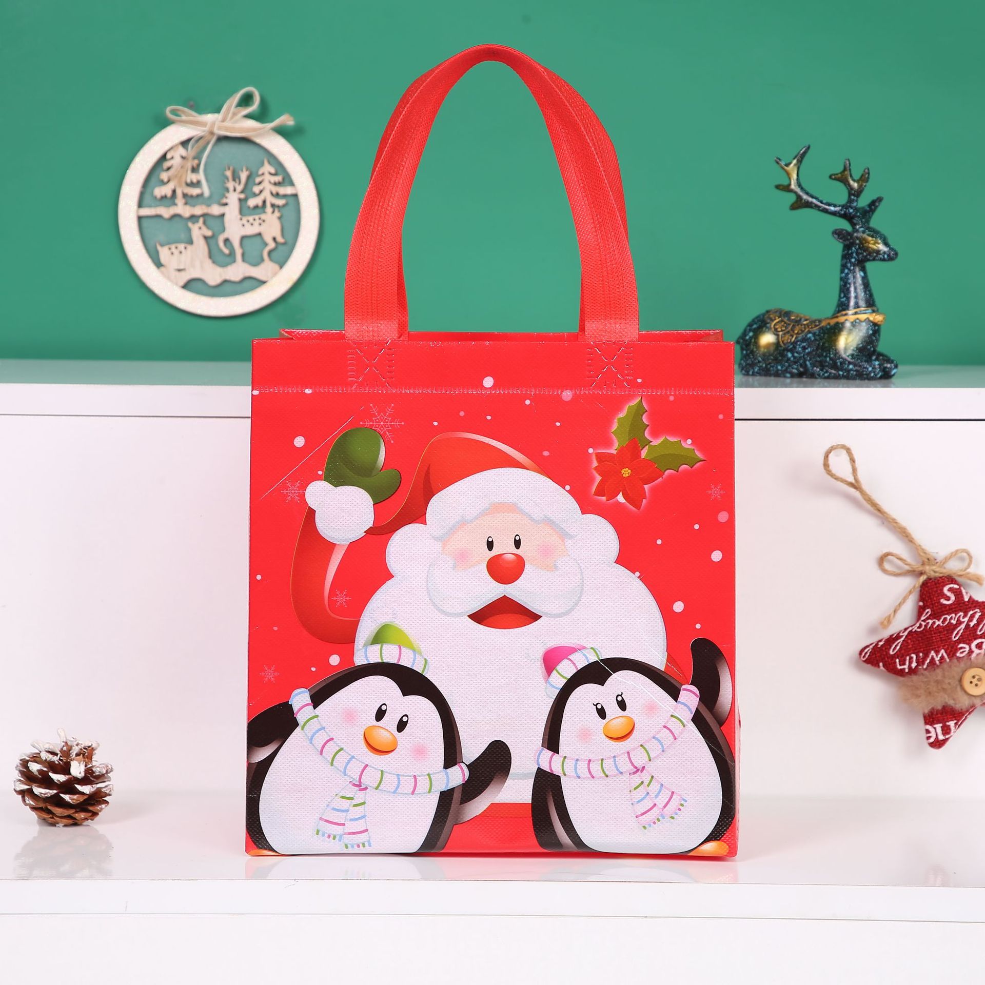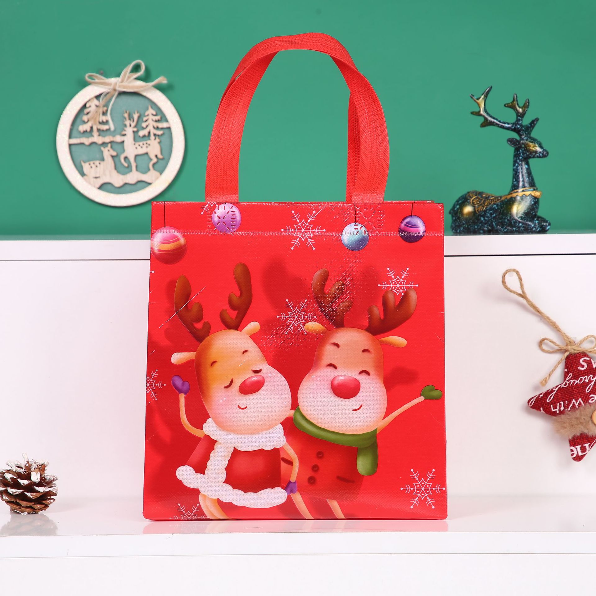 跨境外贸批发圣诞图案无纺布袋覆膜彩色手提礼品袋卡通折叠购物袋