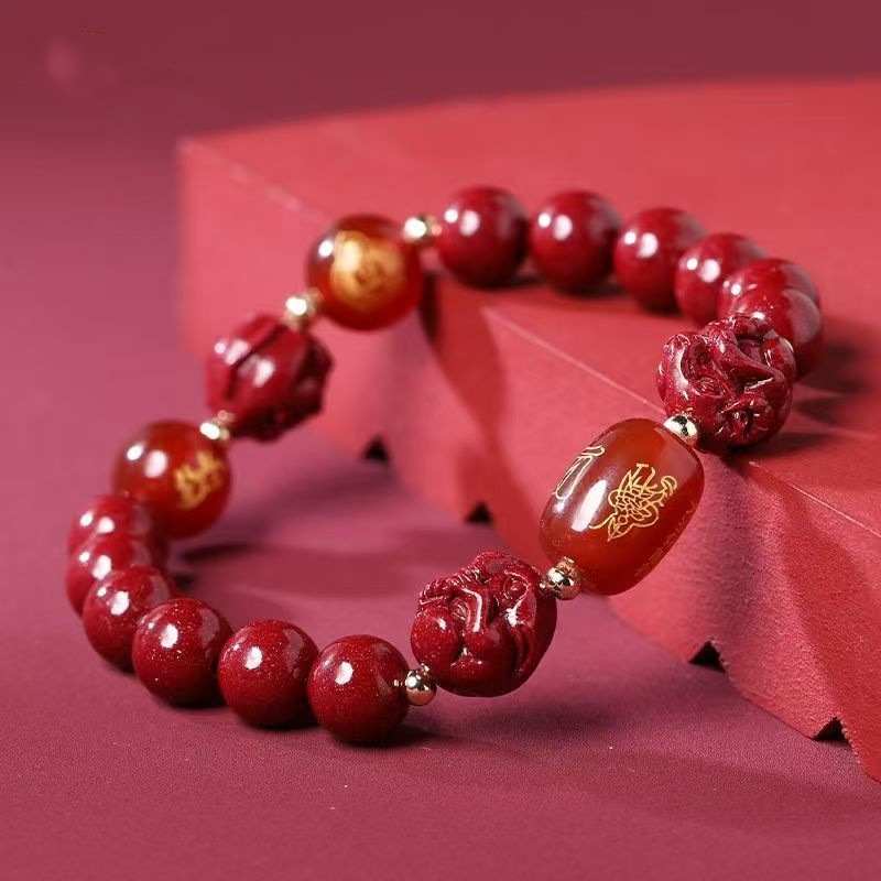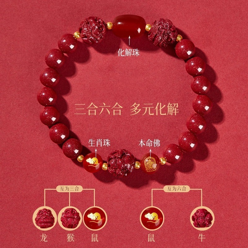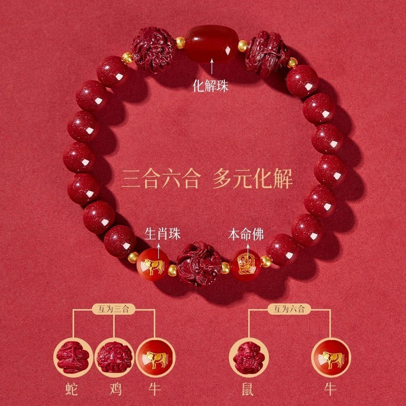 高含量2025属蛇年本命年三合六合十二生肖紫金砂朱砂手串工厂直销