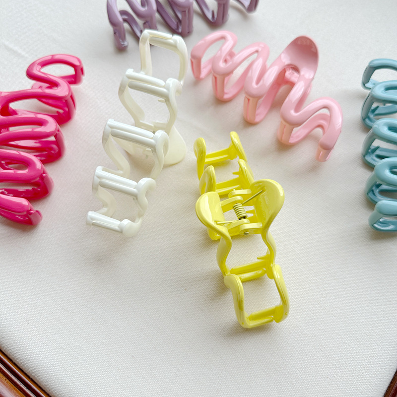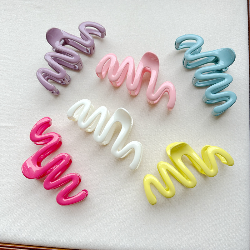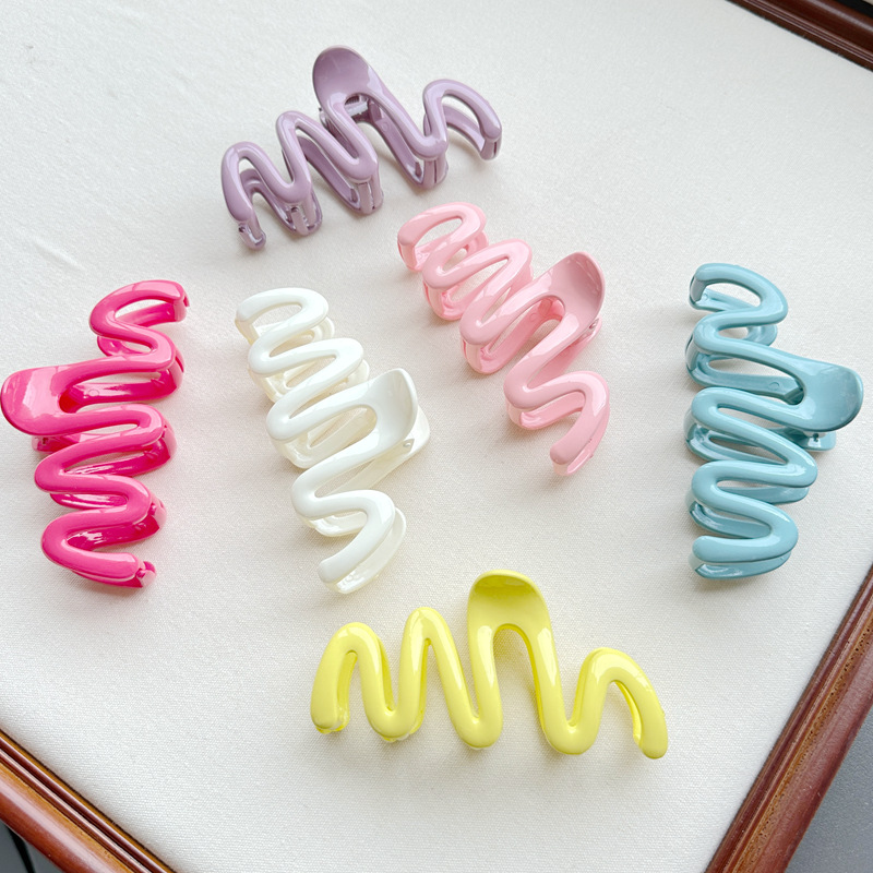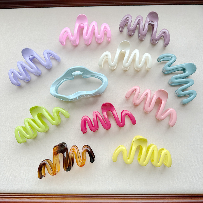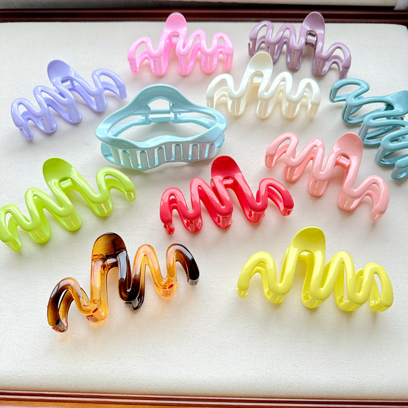 新款彩色波浪抓夹奶油色系高级感发抓后脑勺盘发女鲨鱼夹发夹