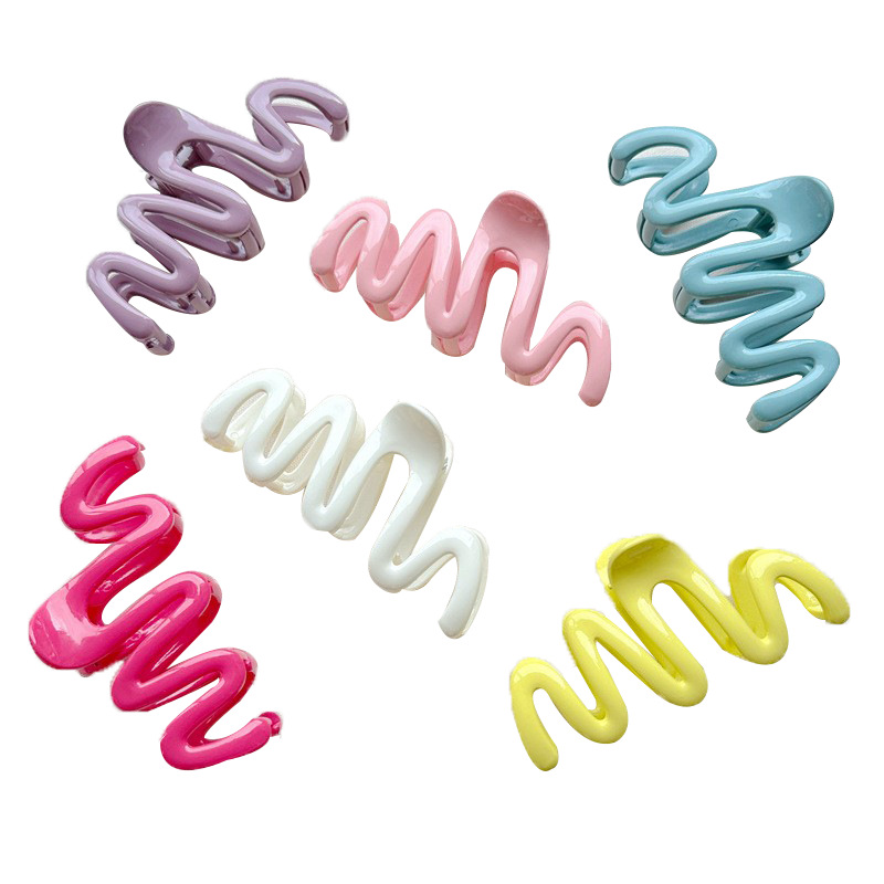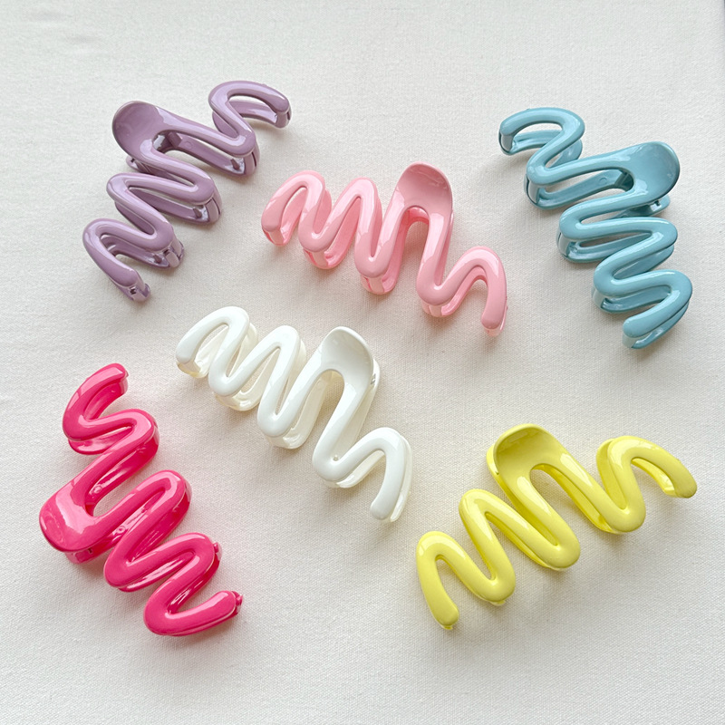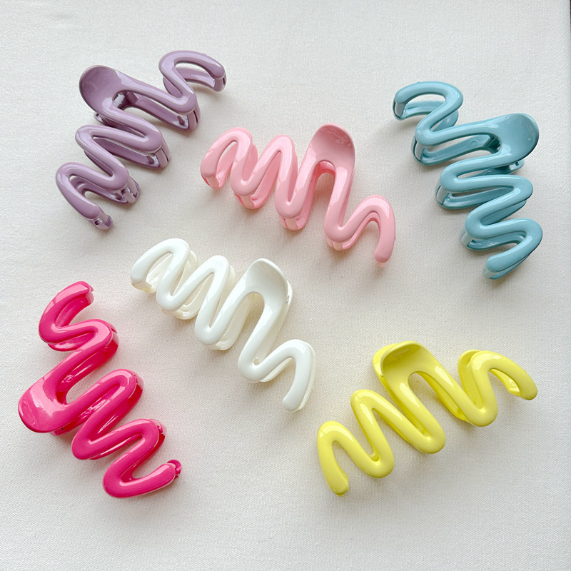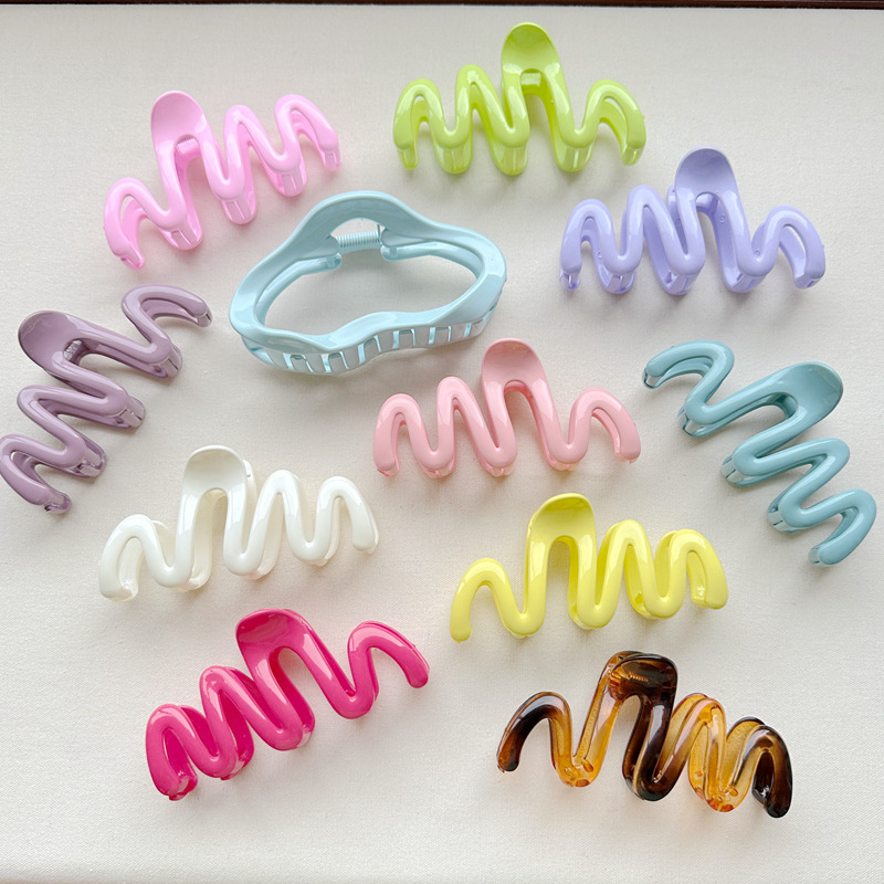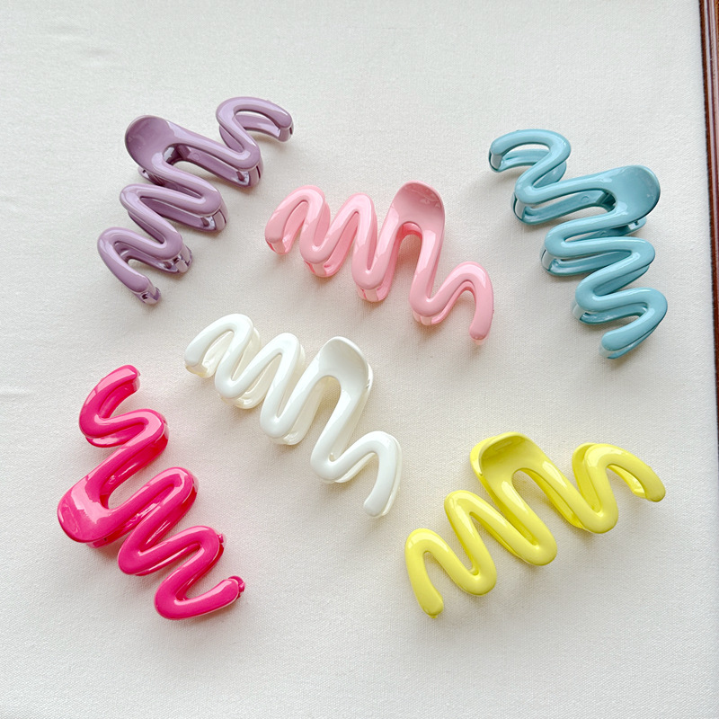 新款彩色波浪抓夹奶油色系高级感发抓后脑勺盘发女鲨鱼夹发夹