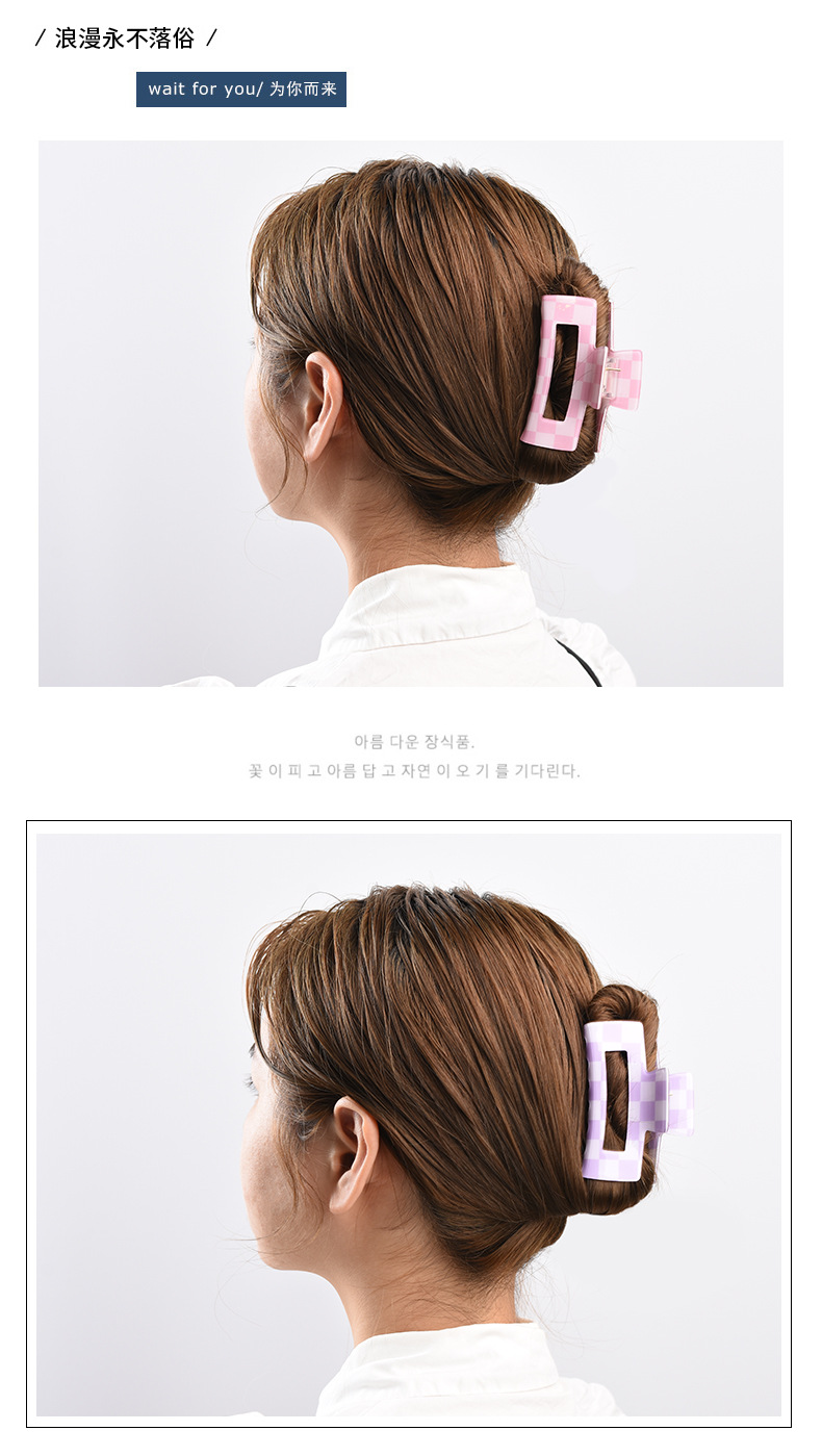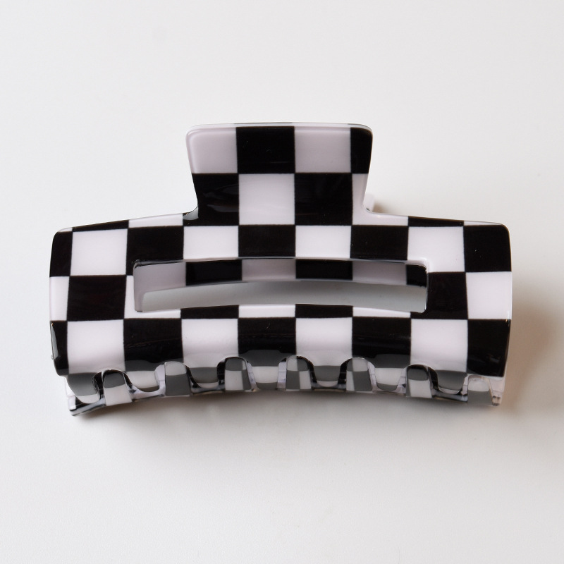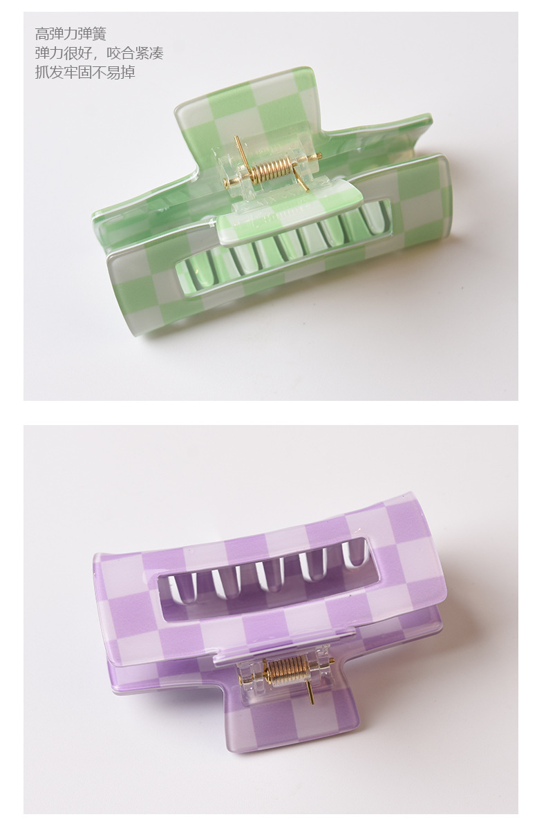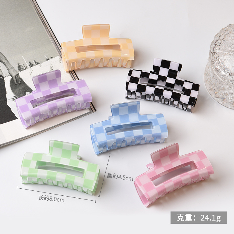 网红发饰发夹女士抓发夹彩色棋盘格亚克力抓夹中号高级感显发量
