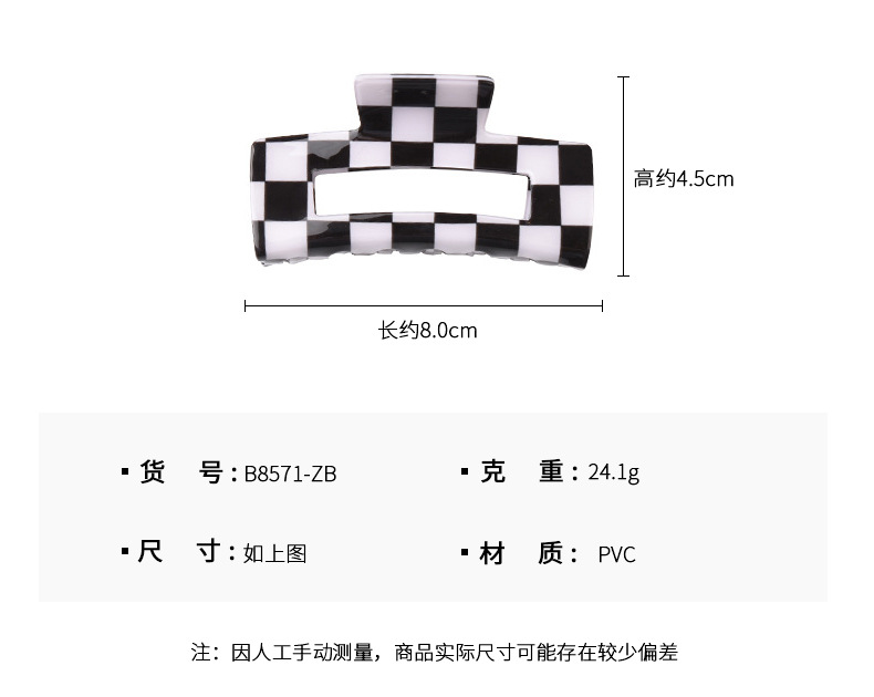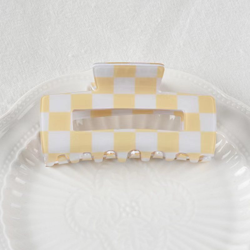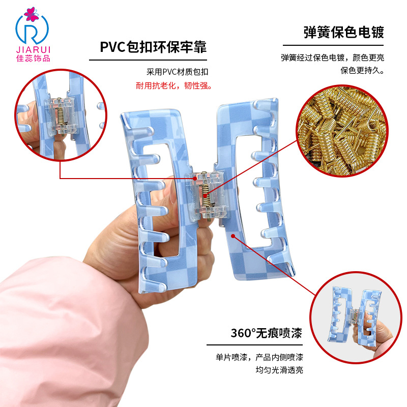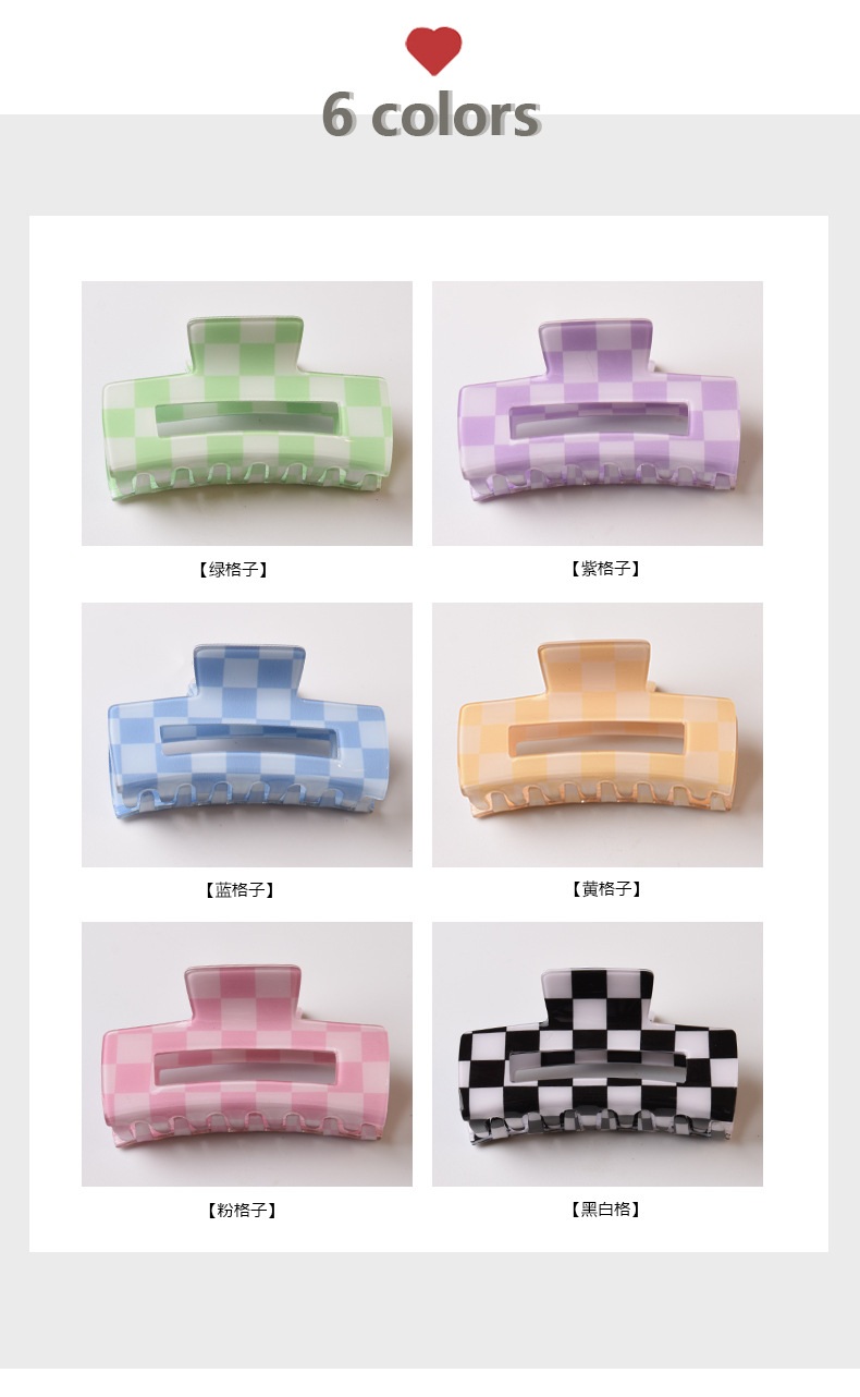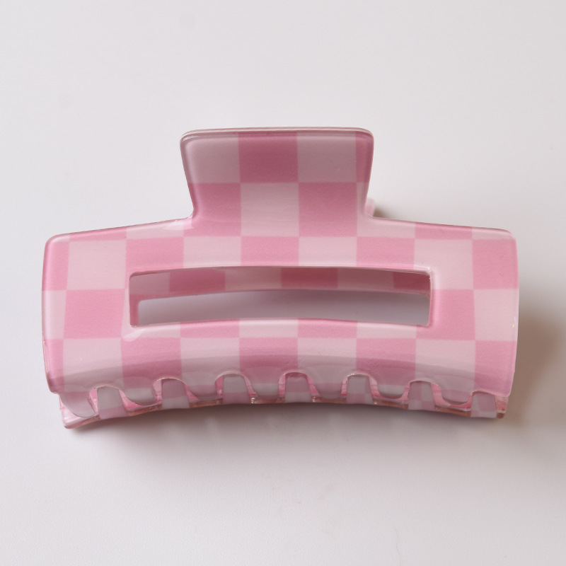网红发饰发夹女士抓发夹彩色棋盘格亚克力抓夹中号高级感显发量