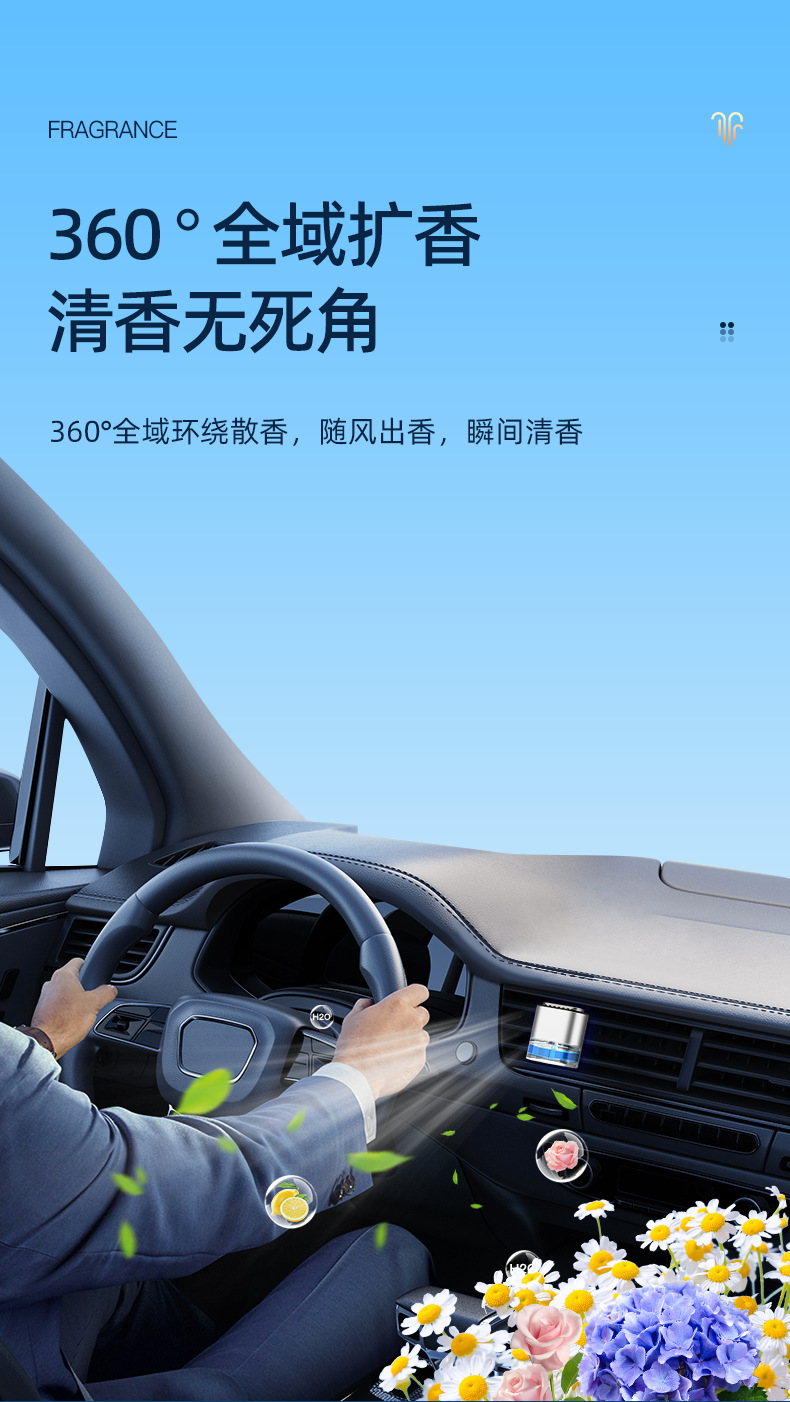 工厂现货汽车出风口香薰铝合金车用香水批发古龙花香液体车载香薰