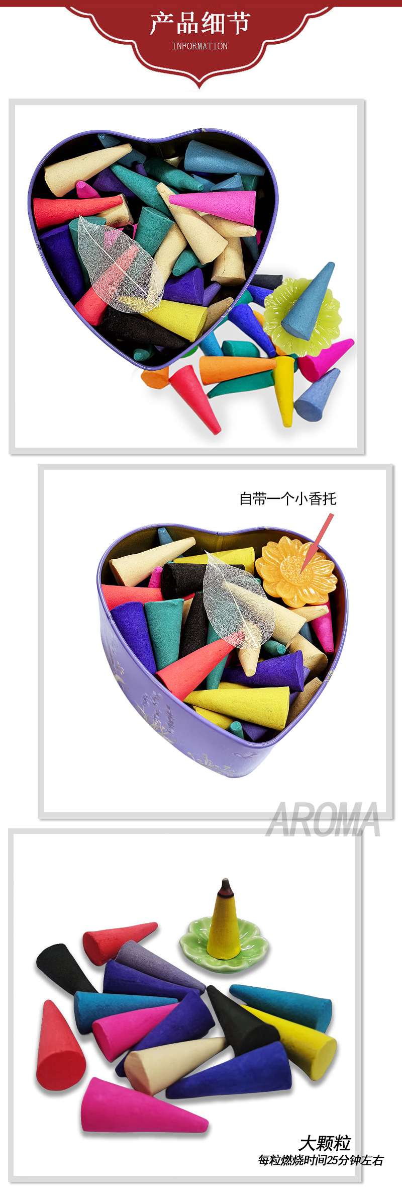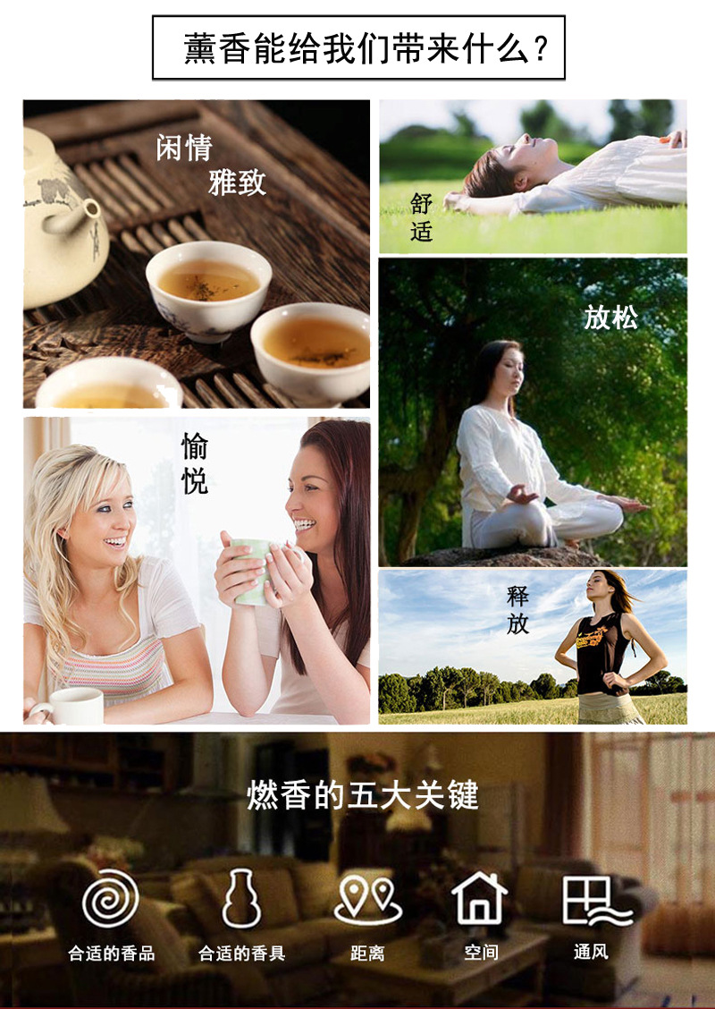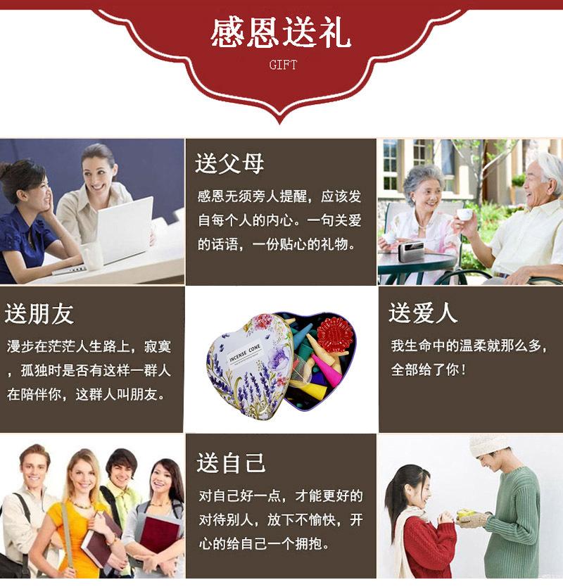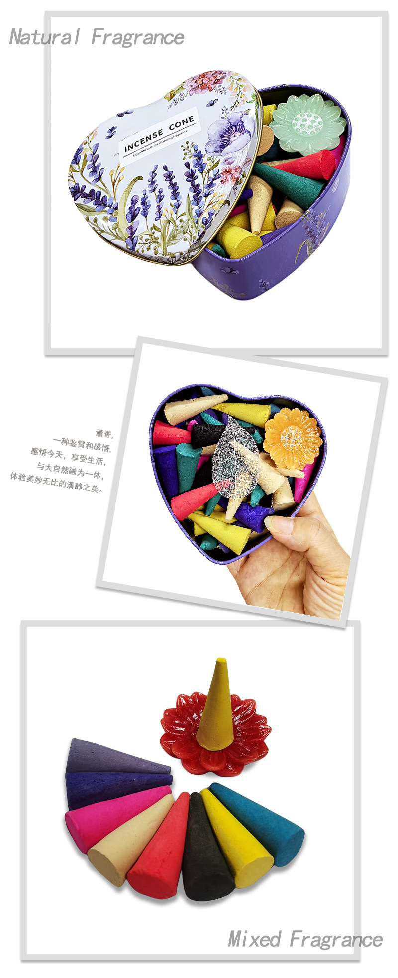 批发芳香塔香礼盒熏香套装大颗粒混合冥想去味愉悦心情全英文