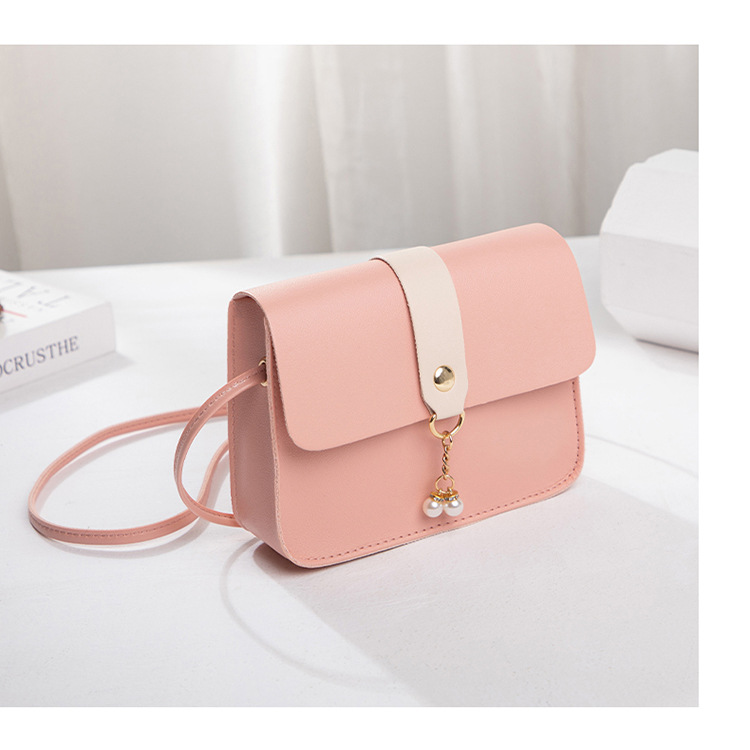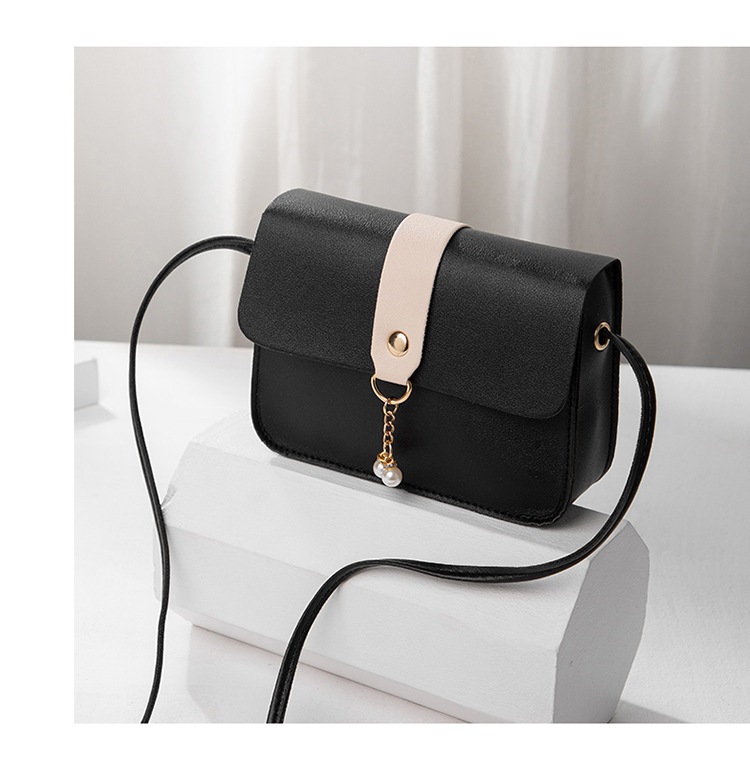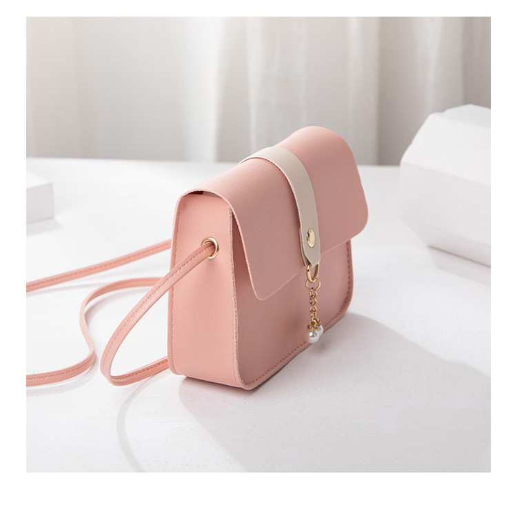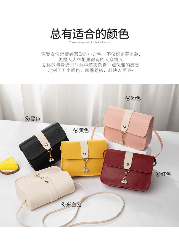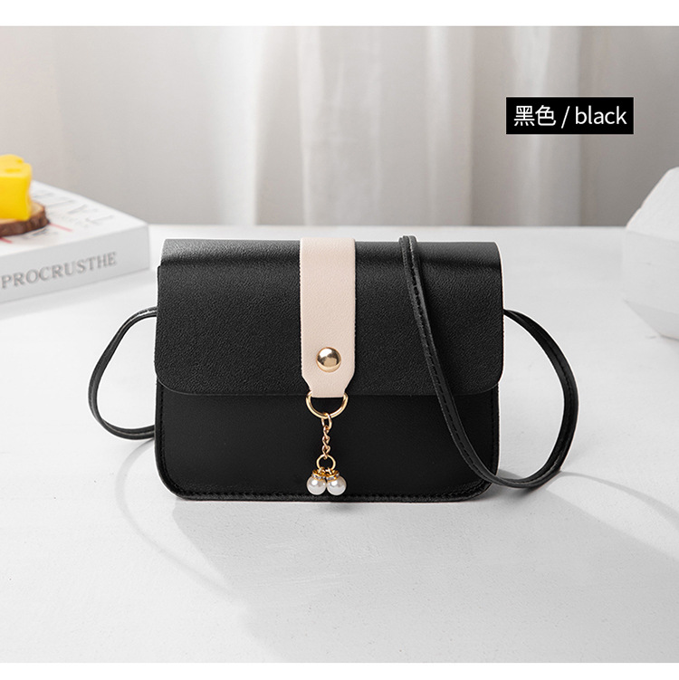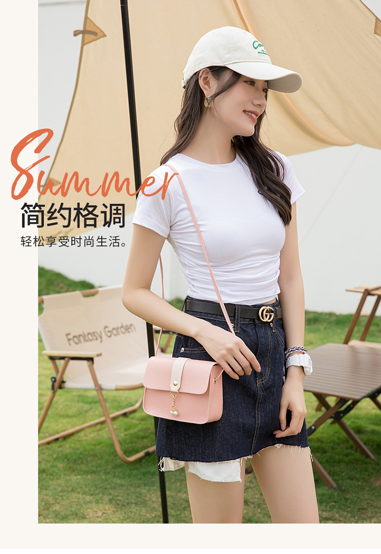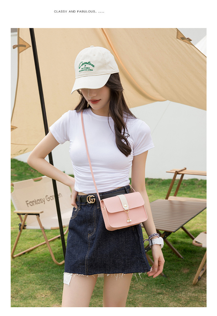 2024女士小包日常百搭春夏女包撞色小方包珍珠吊饰包手机包斜挎包