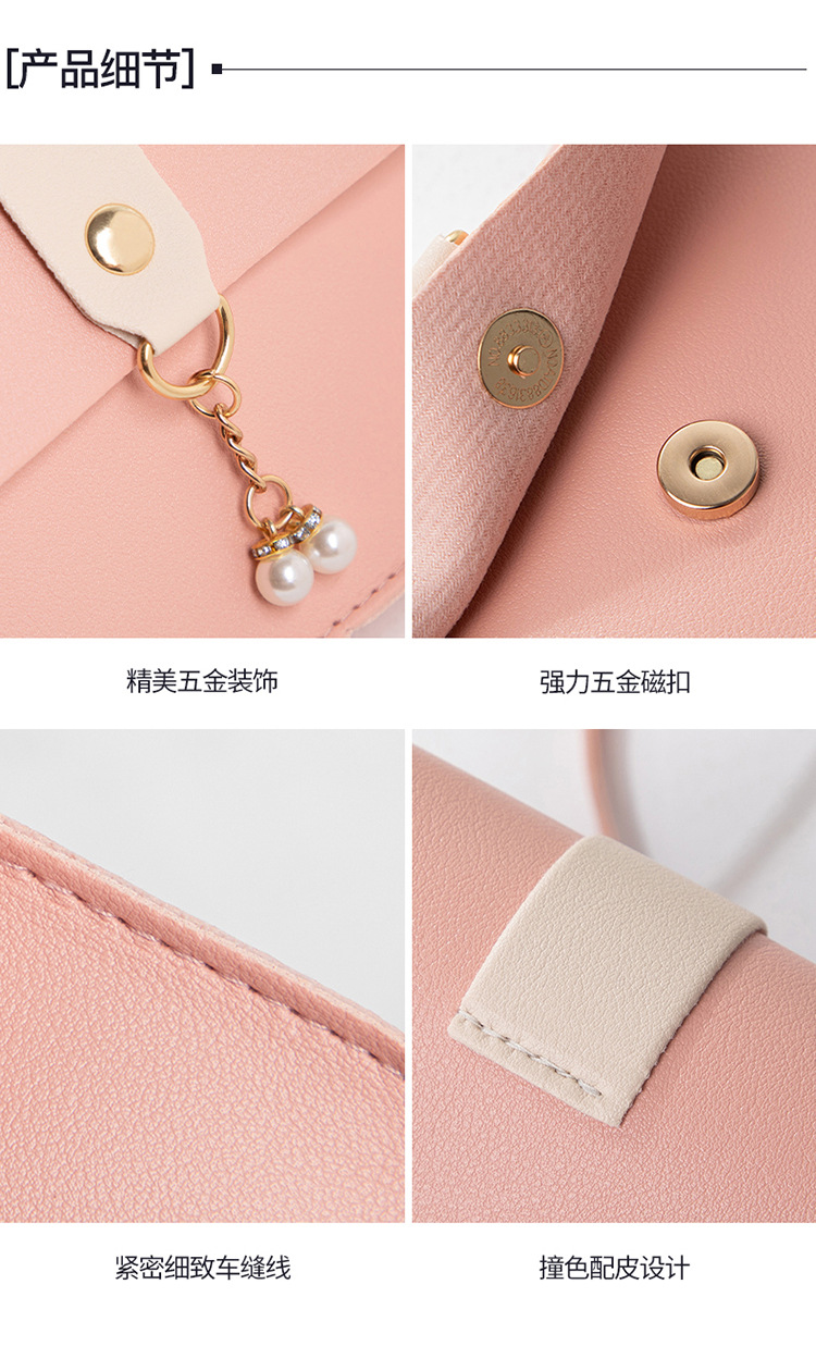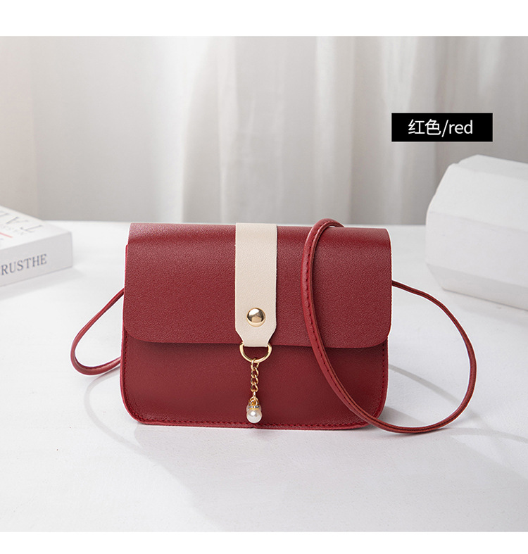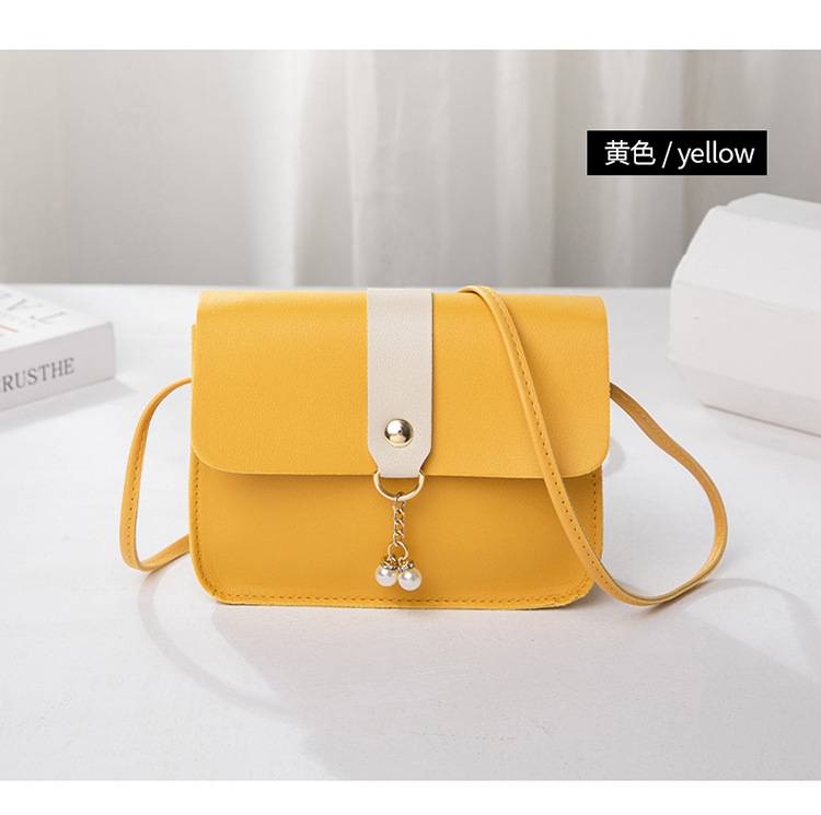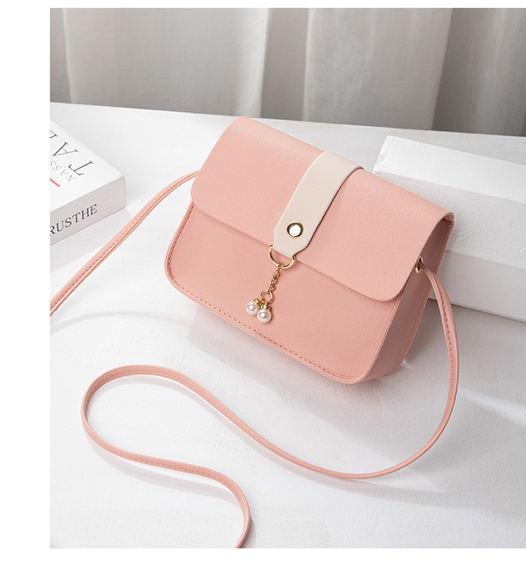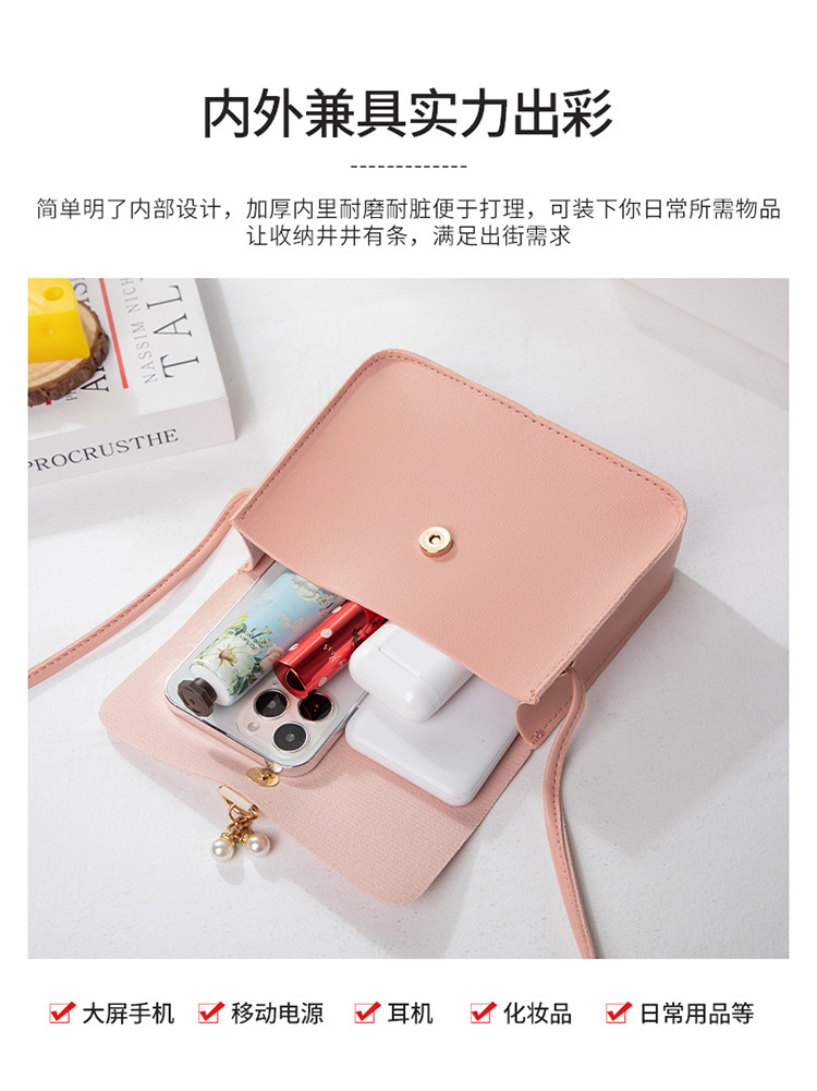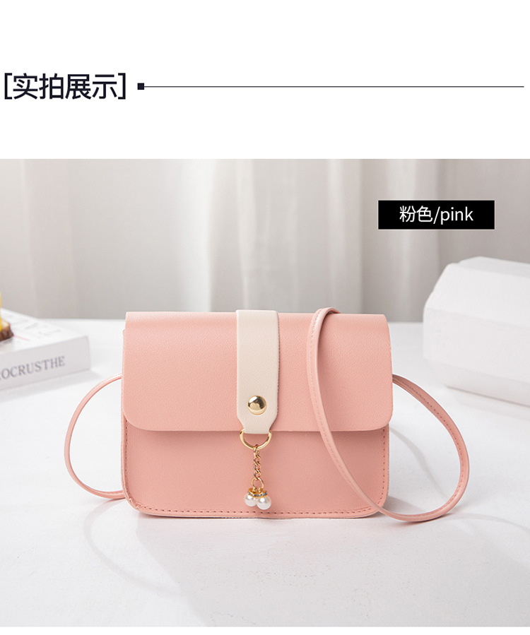 2024女士小包日常百搭春夏女包撞色小方包珍珠吊饰包手机包斜挎包