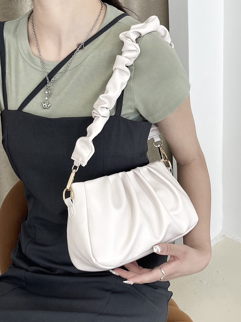 包包女夏季2025新款白色褶皱云朵腋下包质感小众百搭单肩斜挎包