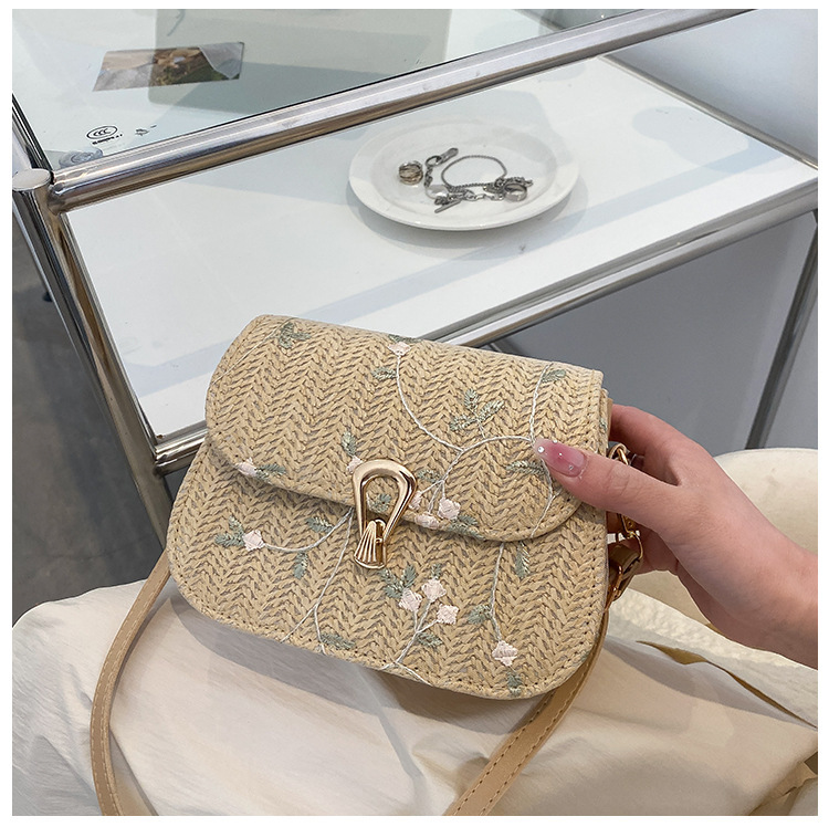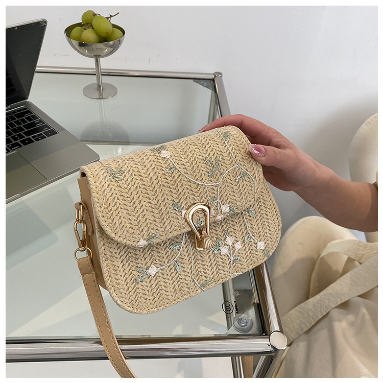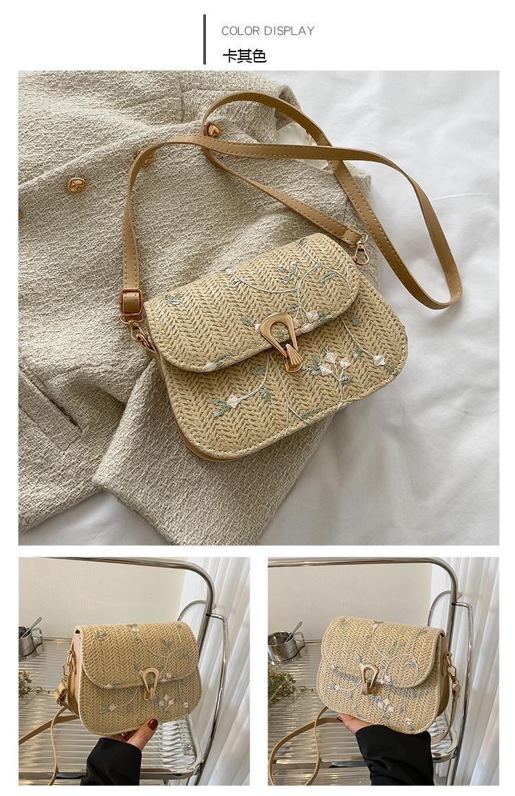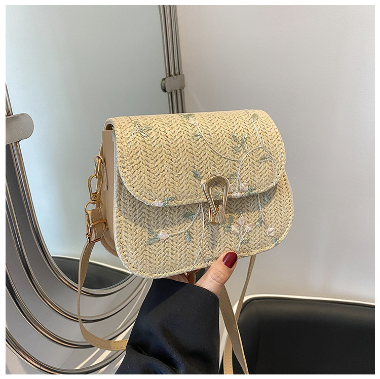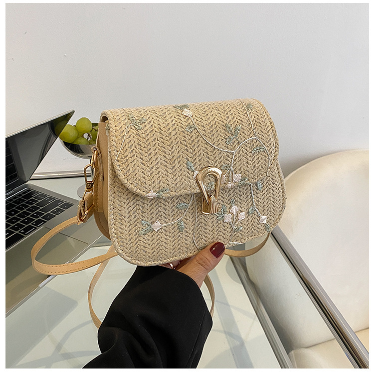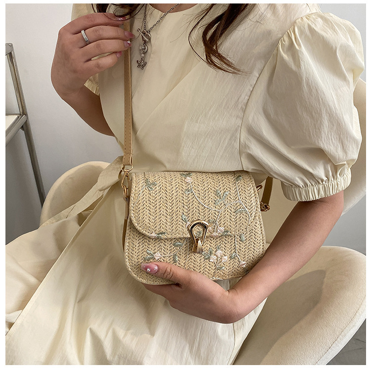 草编包包女2023夏天新款小清新蕾丝花朵编织马鞍包百搭单肩斜挎包