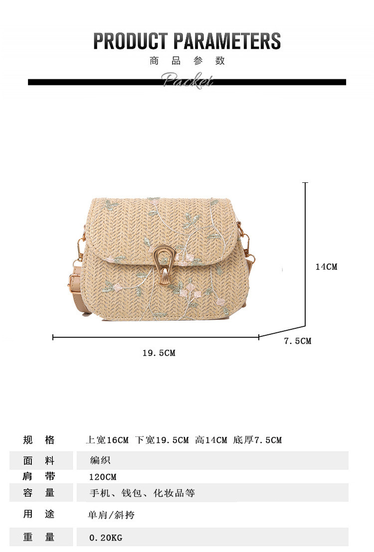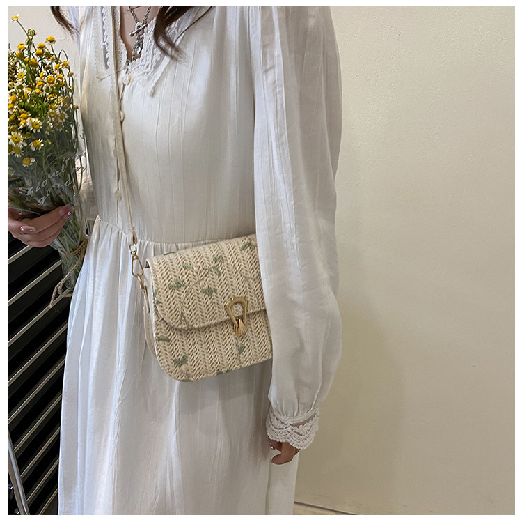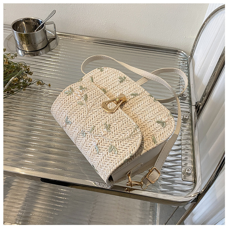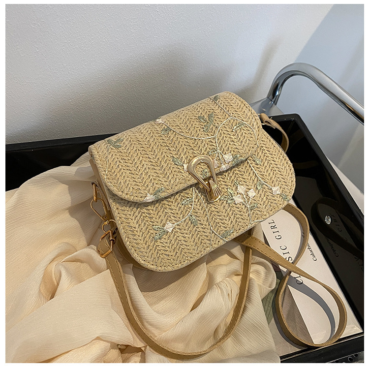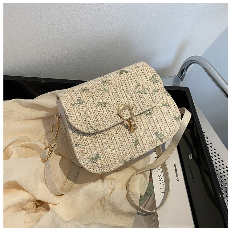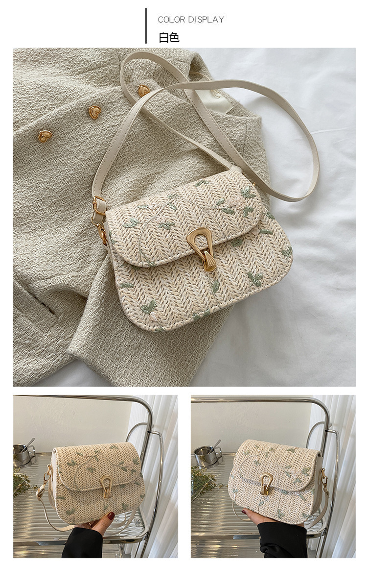 草编包包女2023夏天新款小清新蕾丝花朵编织马鞍包百搭单肩斜挎包