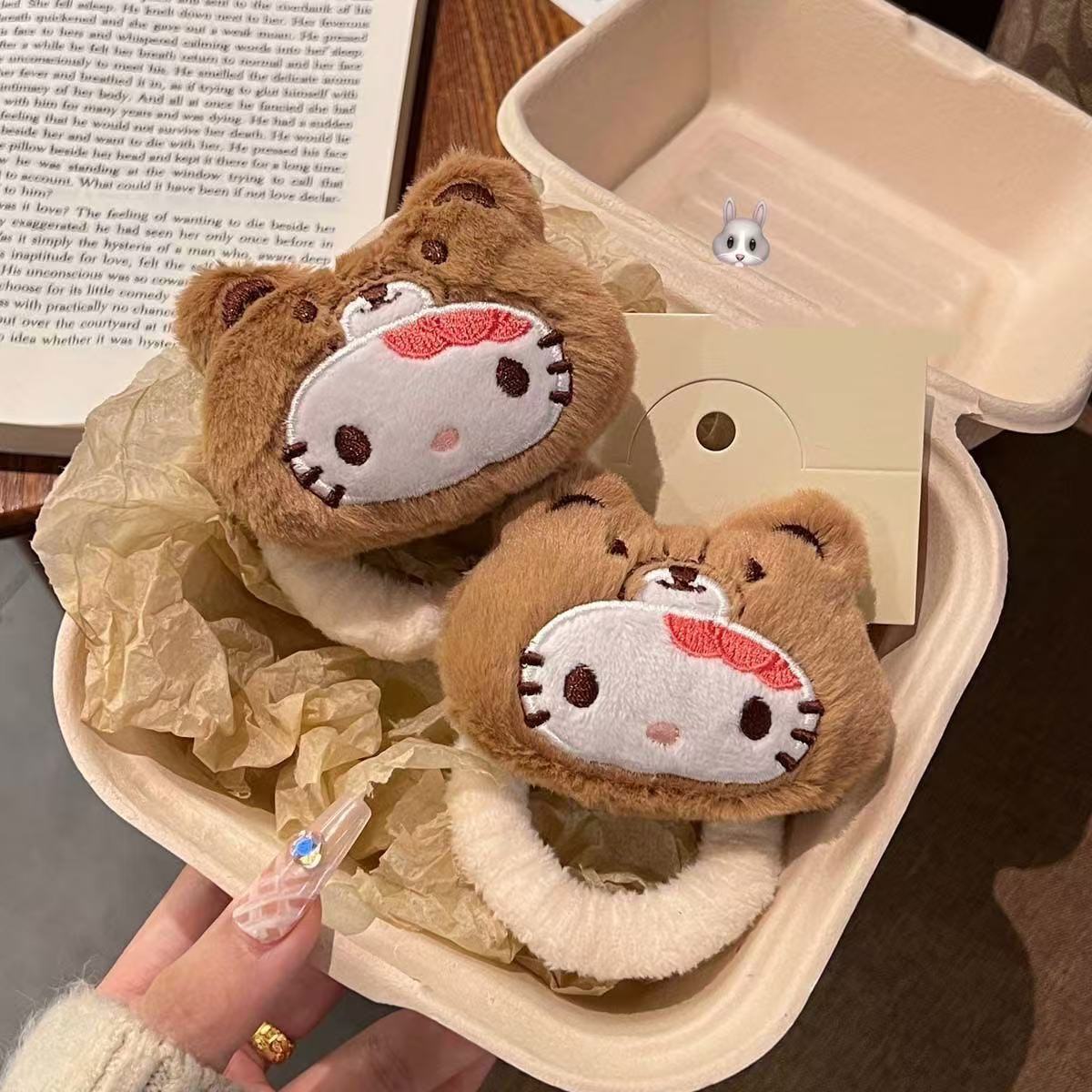 日系可爱猫咪发圈发绳毛绒公仔小熊秋冬头绳发夹马尾发饰头饰新款