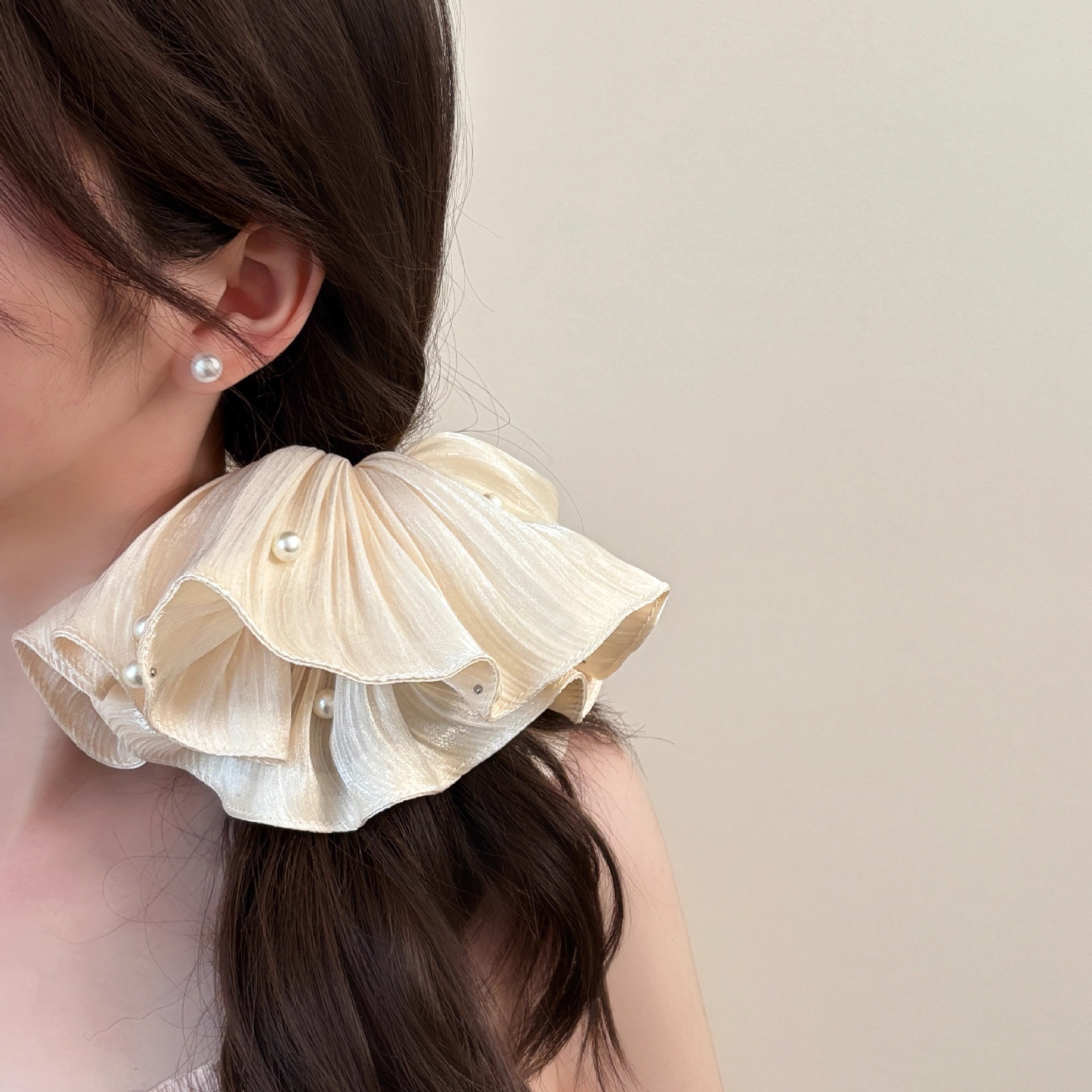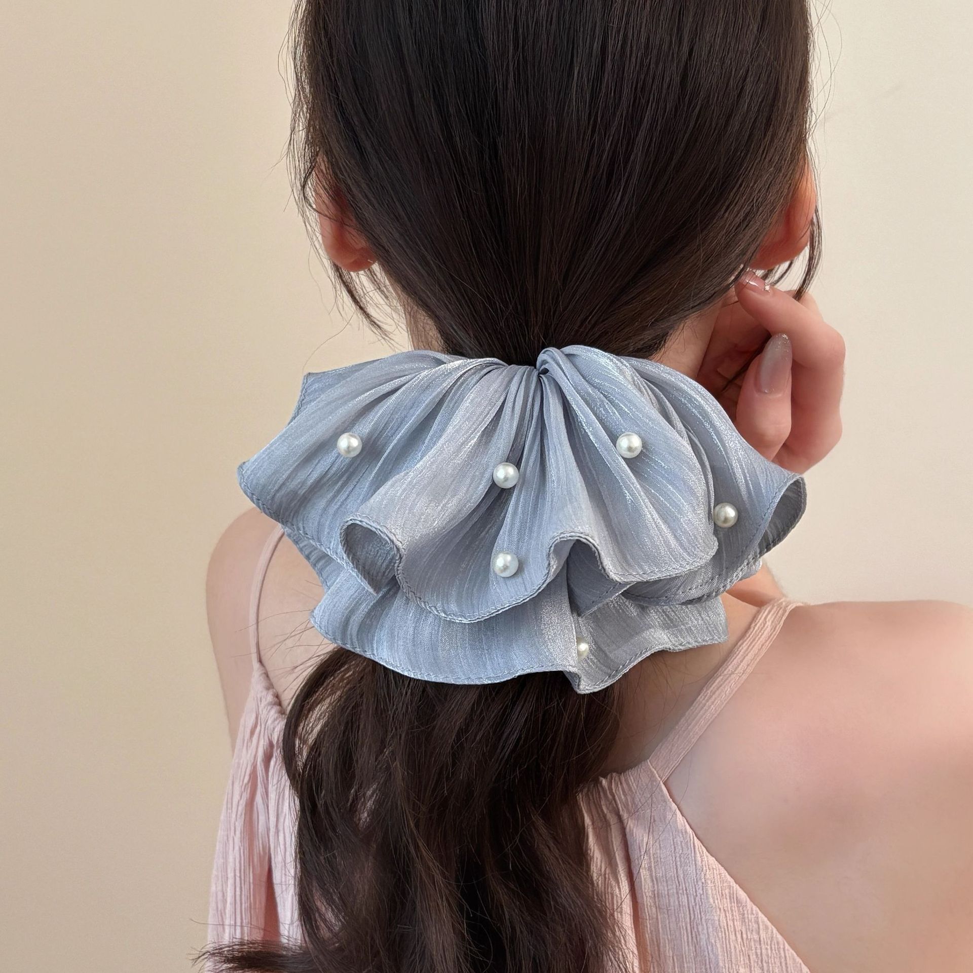 2025春季新款高级感流光丝滑锻面褶皱珍珠大肠发圈高端大号发饰女