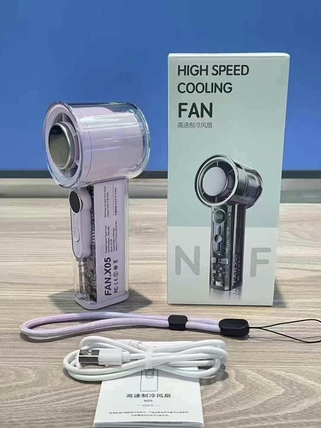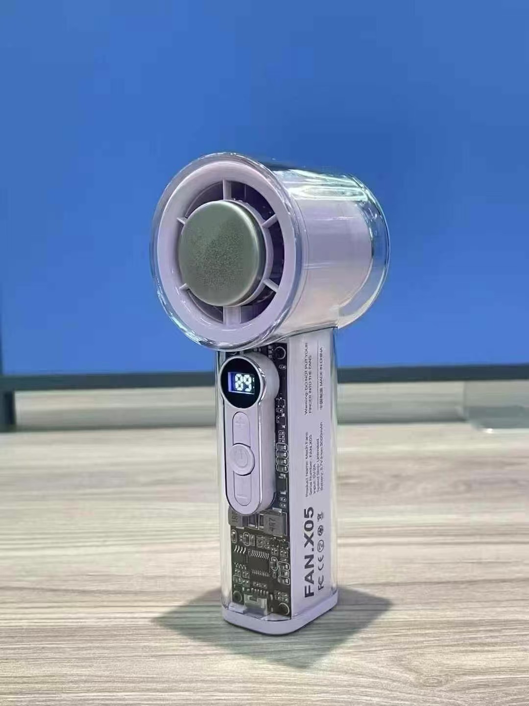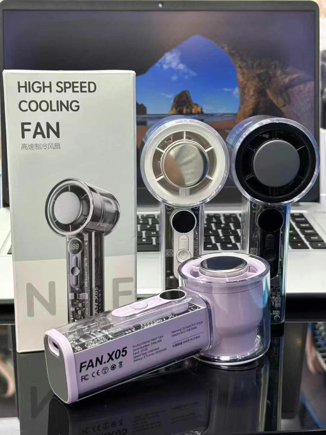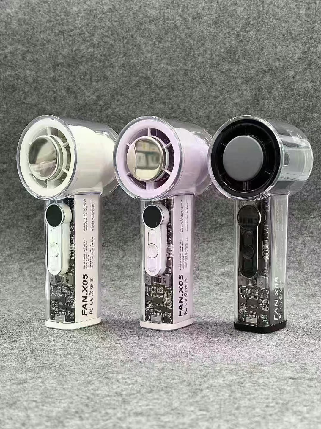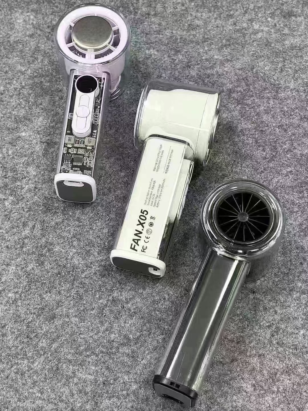 新款X05透明机甲高速风扇USB暴力涡轮风扇手持半导体制冷冰敷风扇