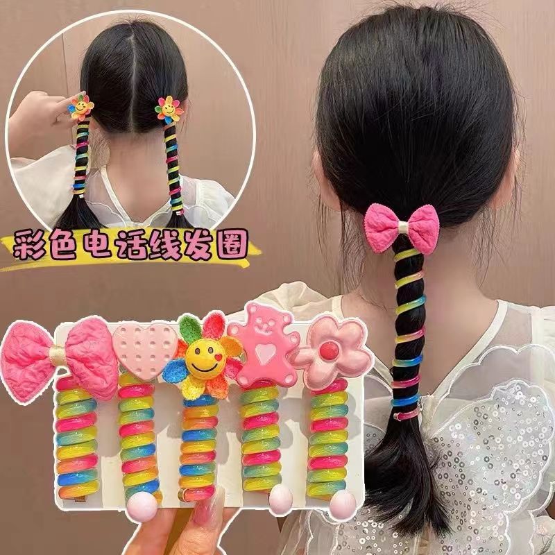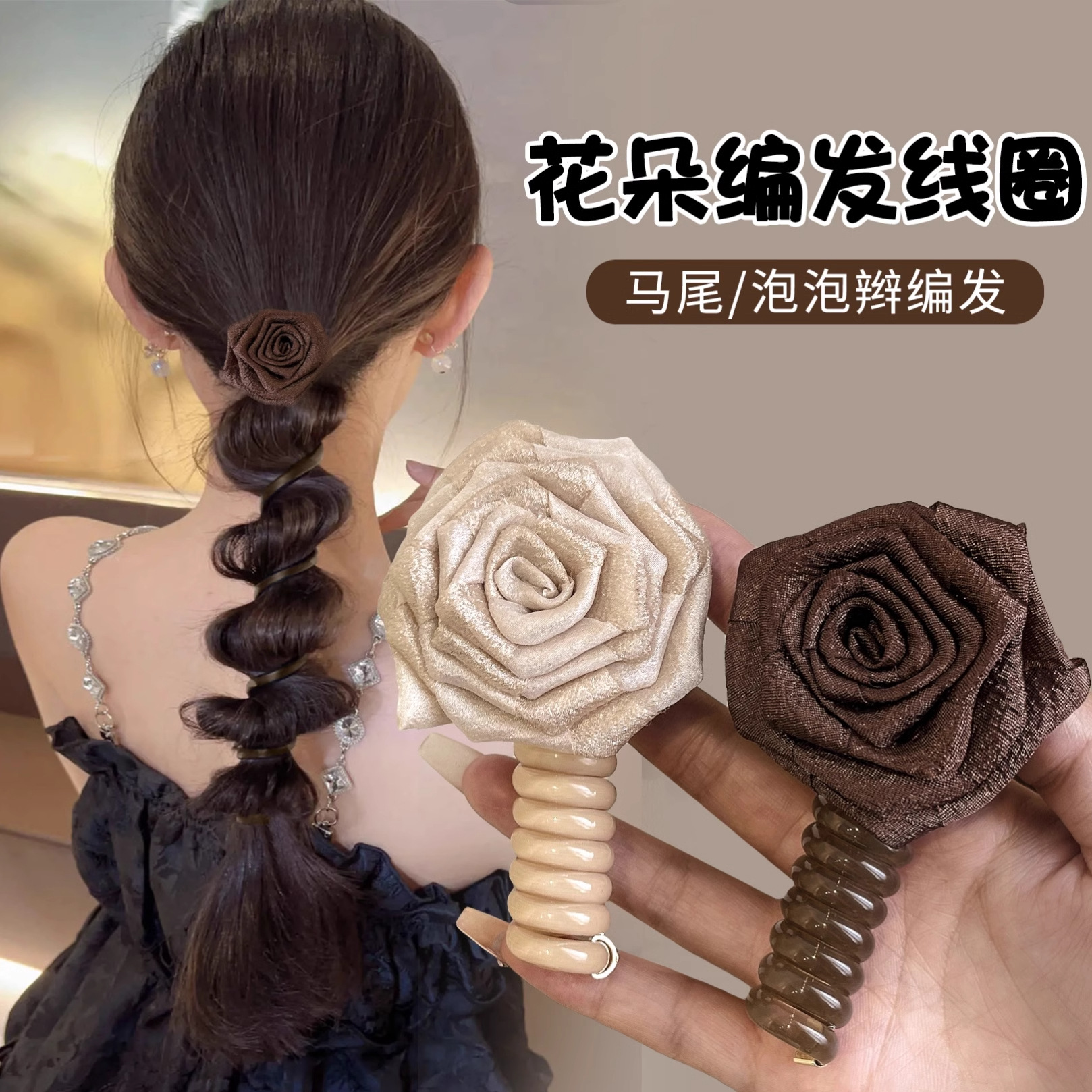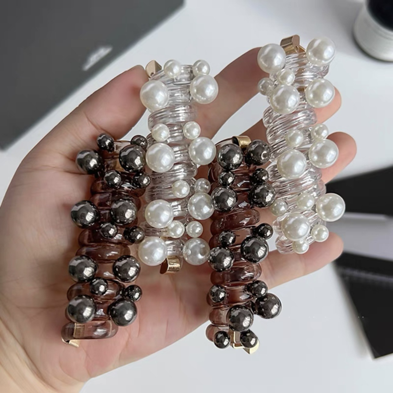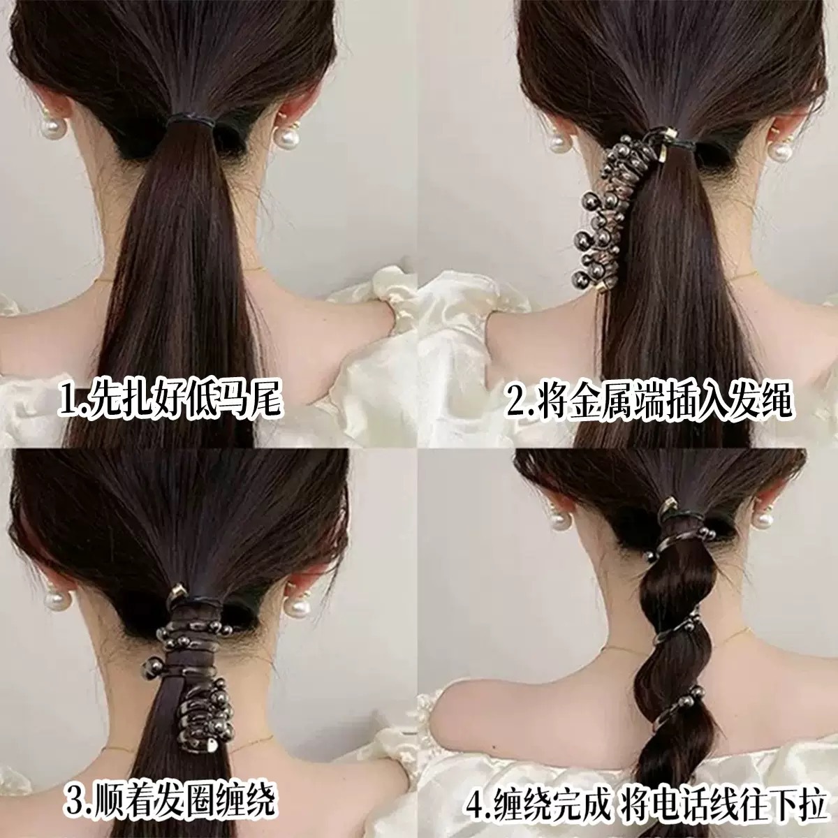 跨境编发电话线发圈珍珠直条编发神器女高马尾泡泡辫发绳头发饰品