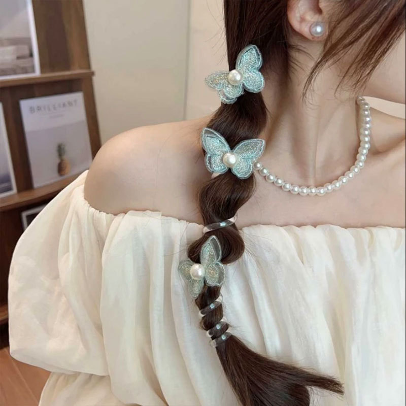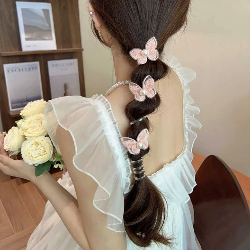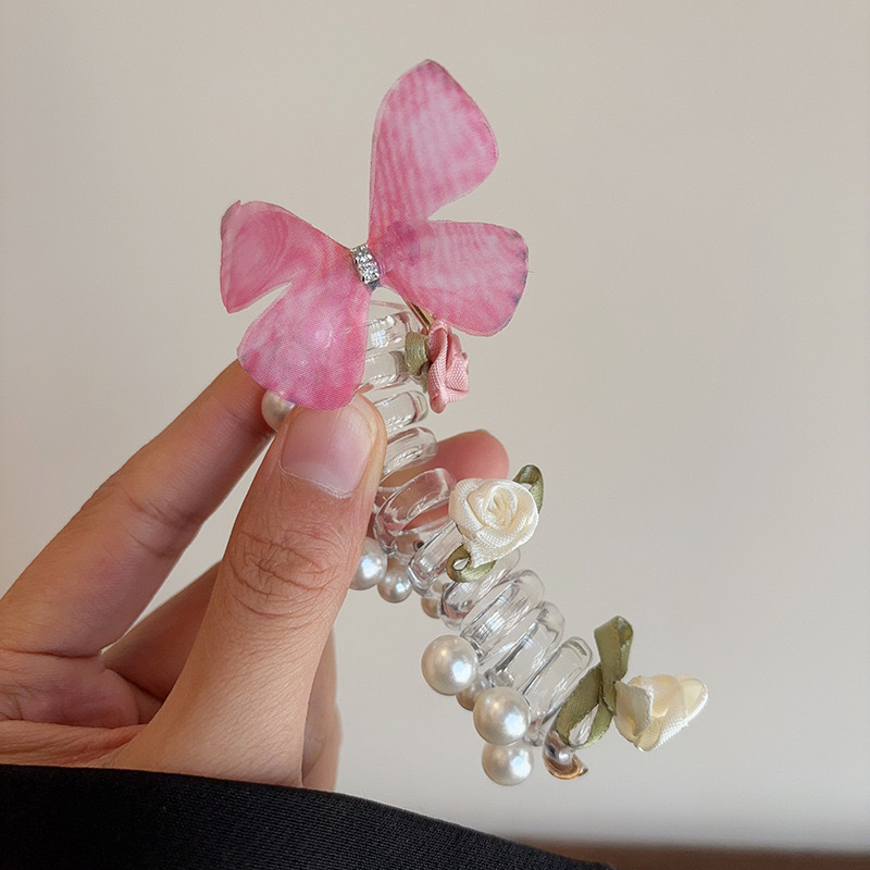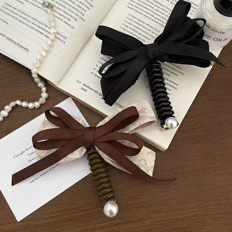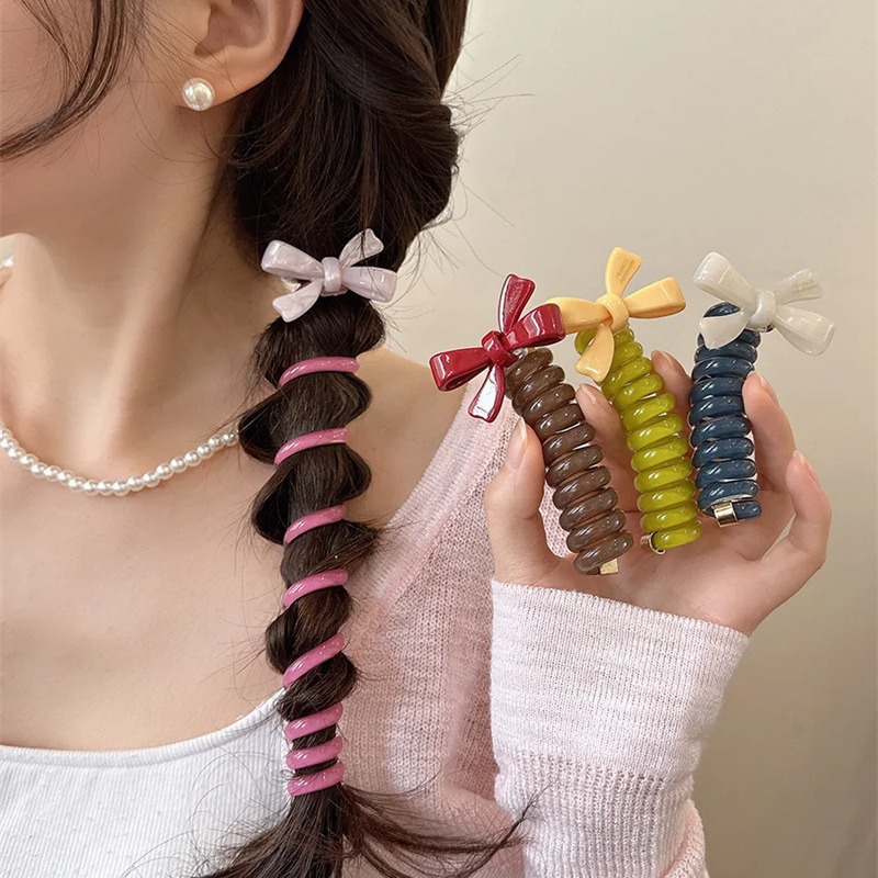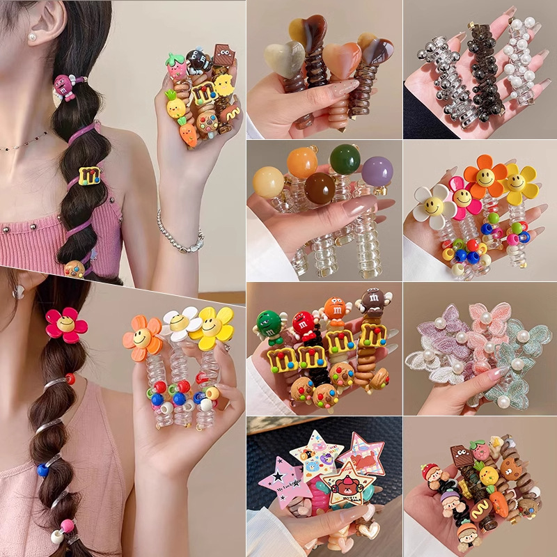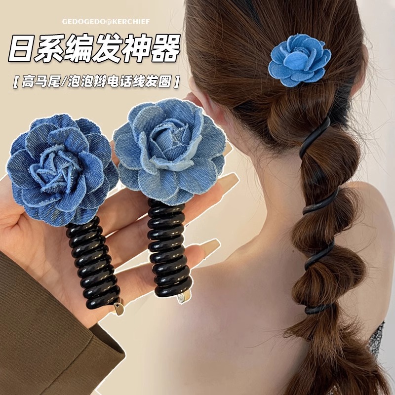 跨境编发电话线发圈珍珠直条编发神器女高马尾泡泡辫发绳头发饰品