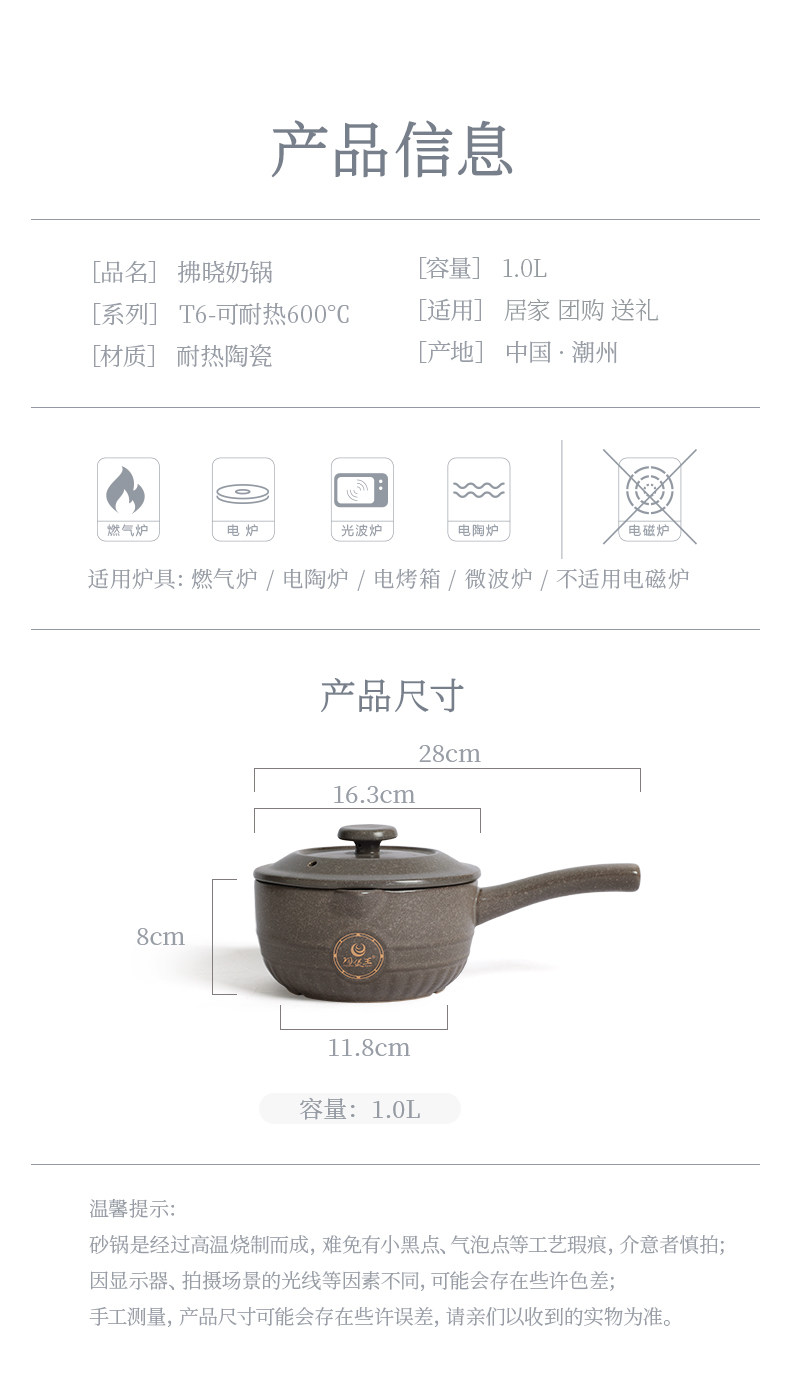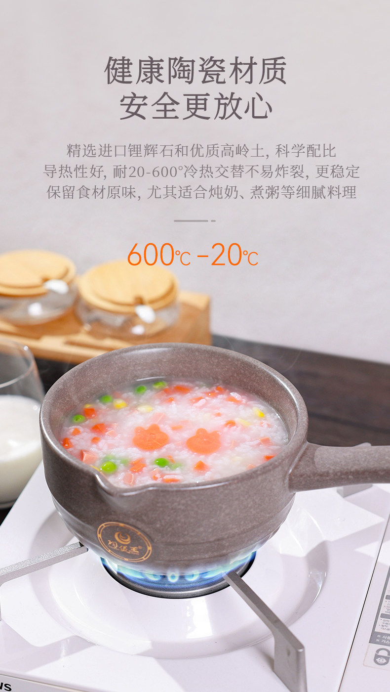 陶煲王陶瓷奶锅家用宝宝婴儿辅食锅耐高温煮汤泡面砂锅小号一人食