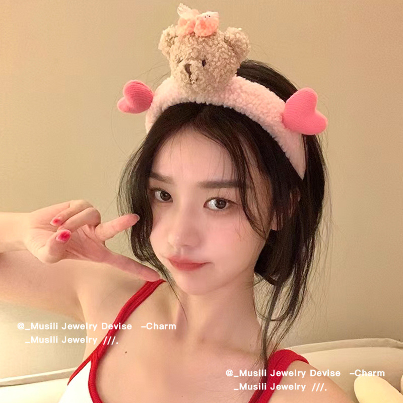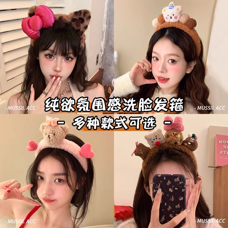 洗脸专用发箍女2024新款秋冬可爱小熊头箍束发带发卡发饰毛绒头饰