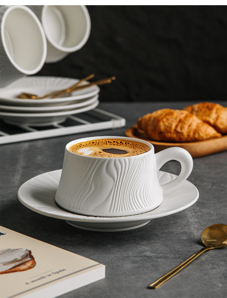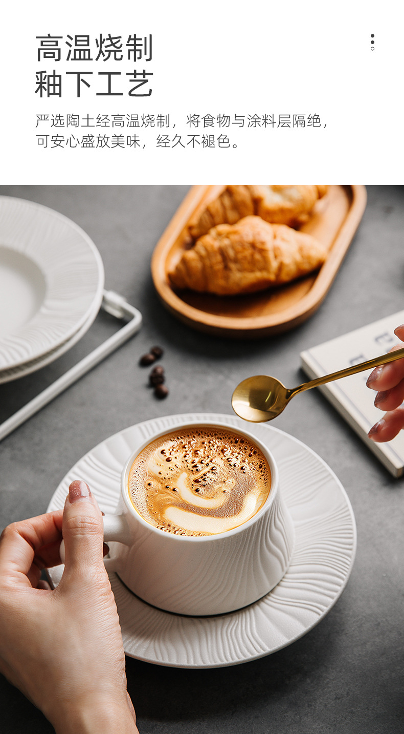 2025年爆款陶瓷家用轻奢咖啡杯碟套装办公室早餐咖啡杯三件套