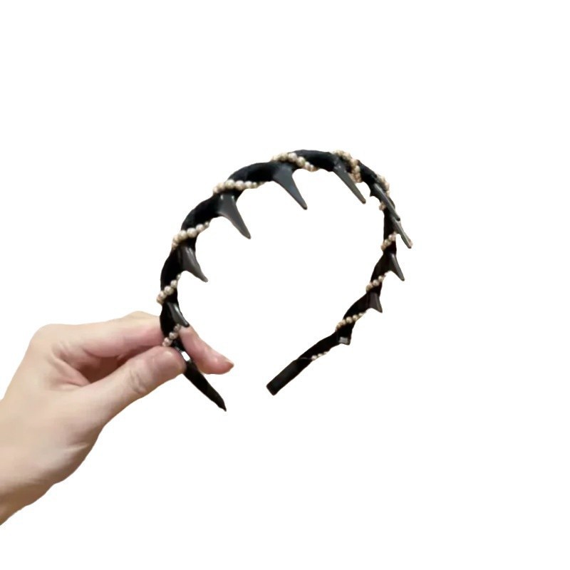 带齿防滑丝绒珠珠波浪发箍女2024新款秋冬发卡复古小香风洗脸头箍